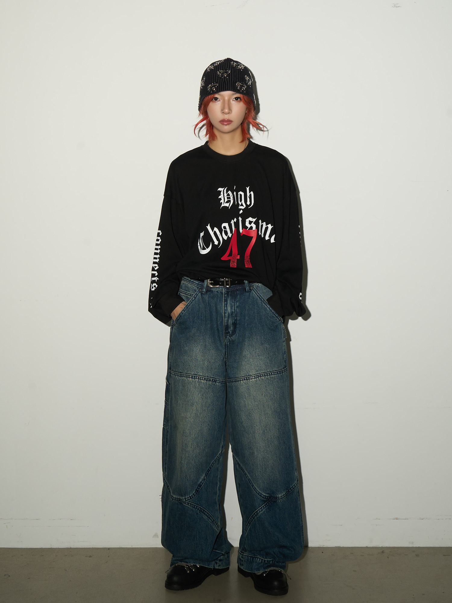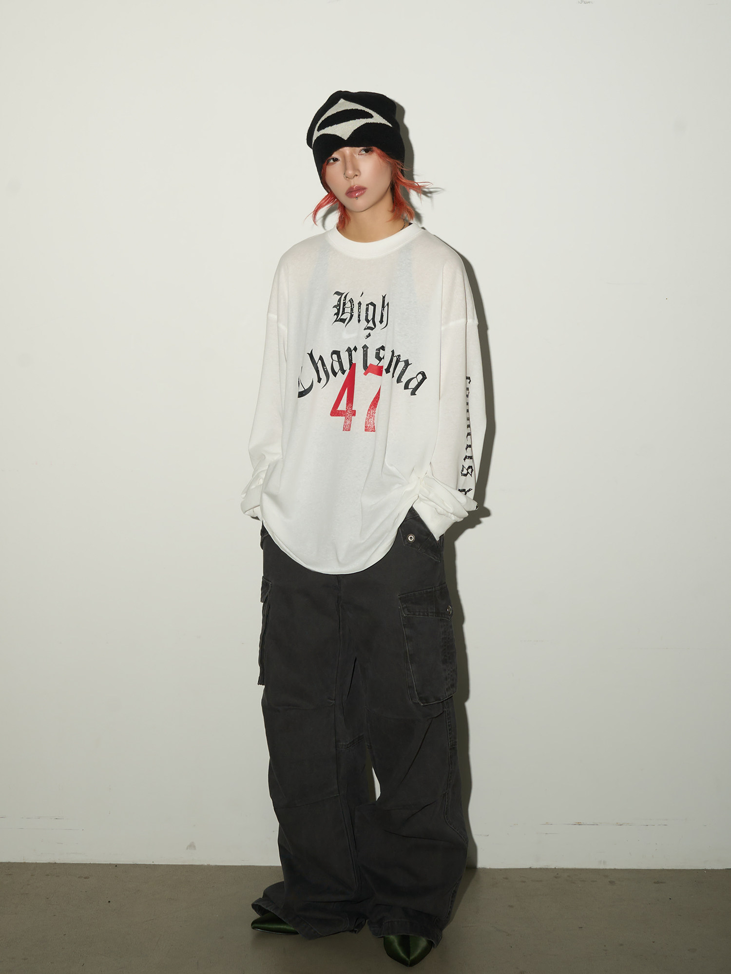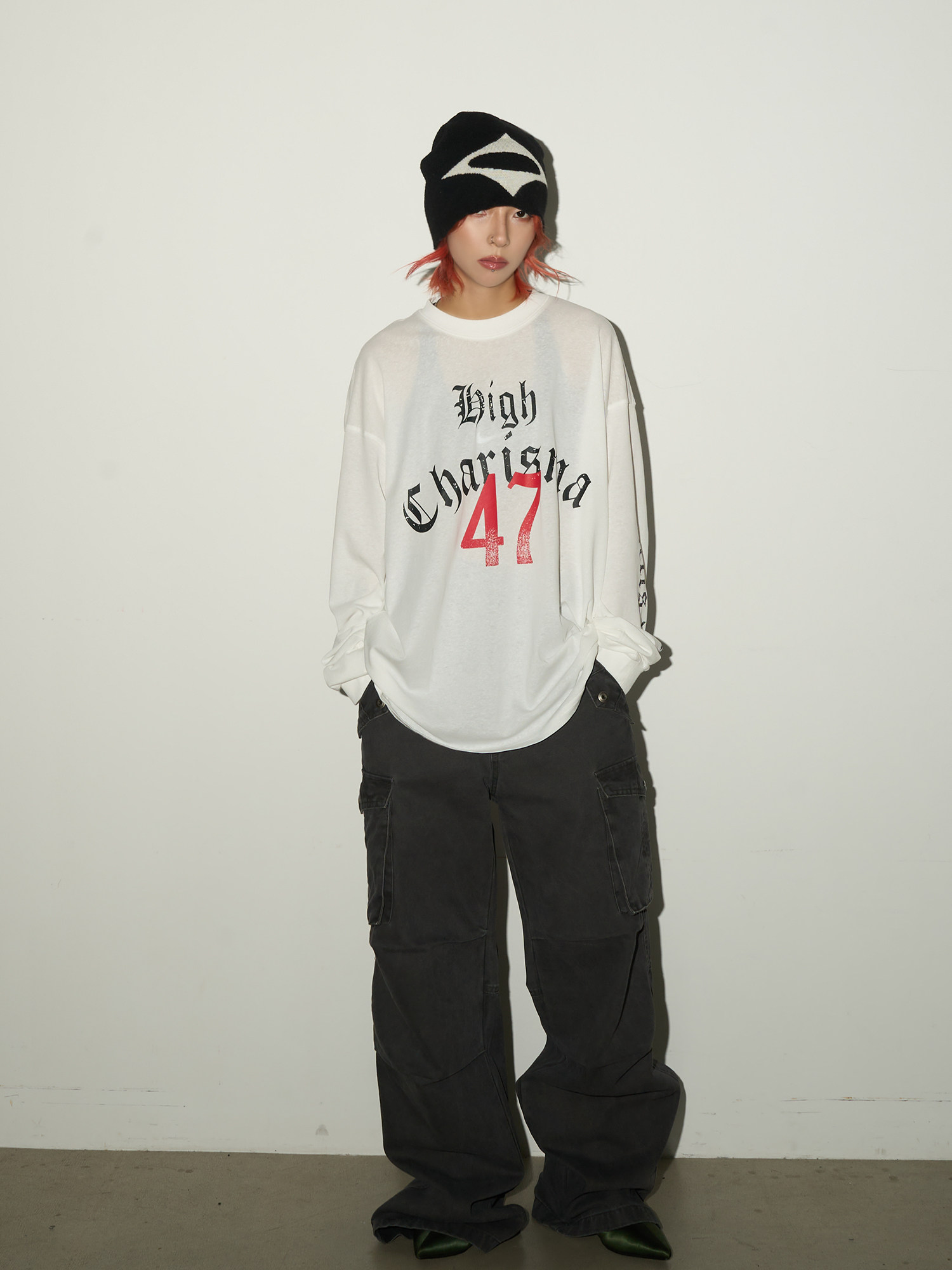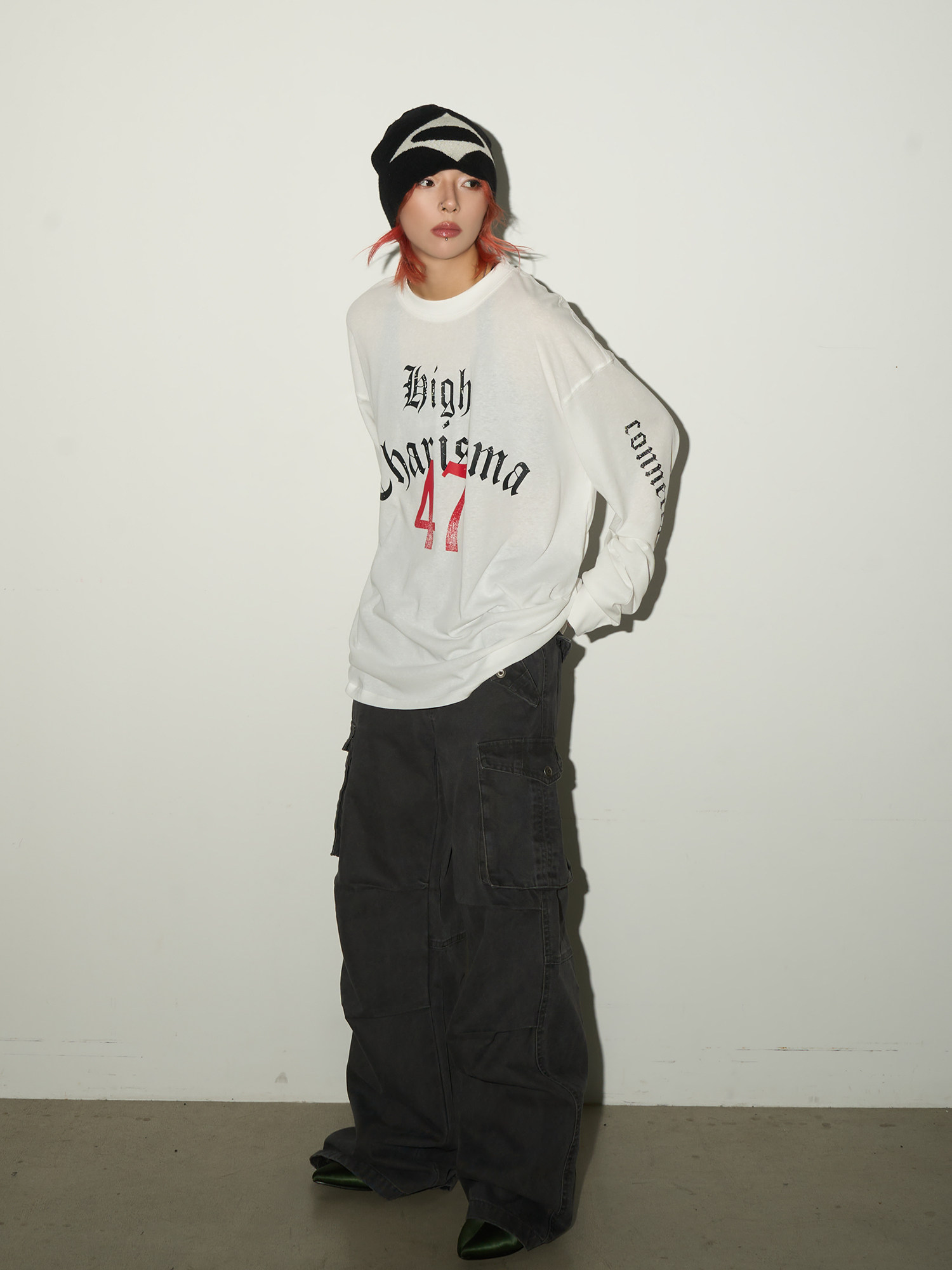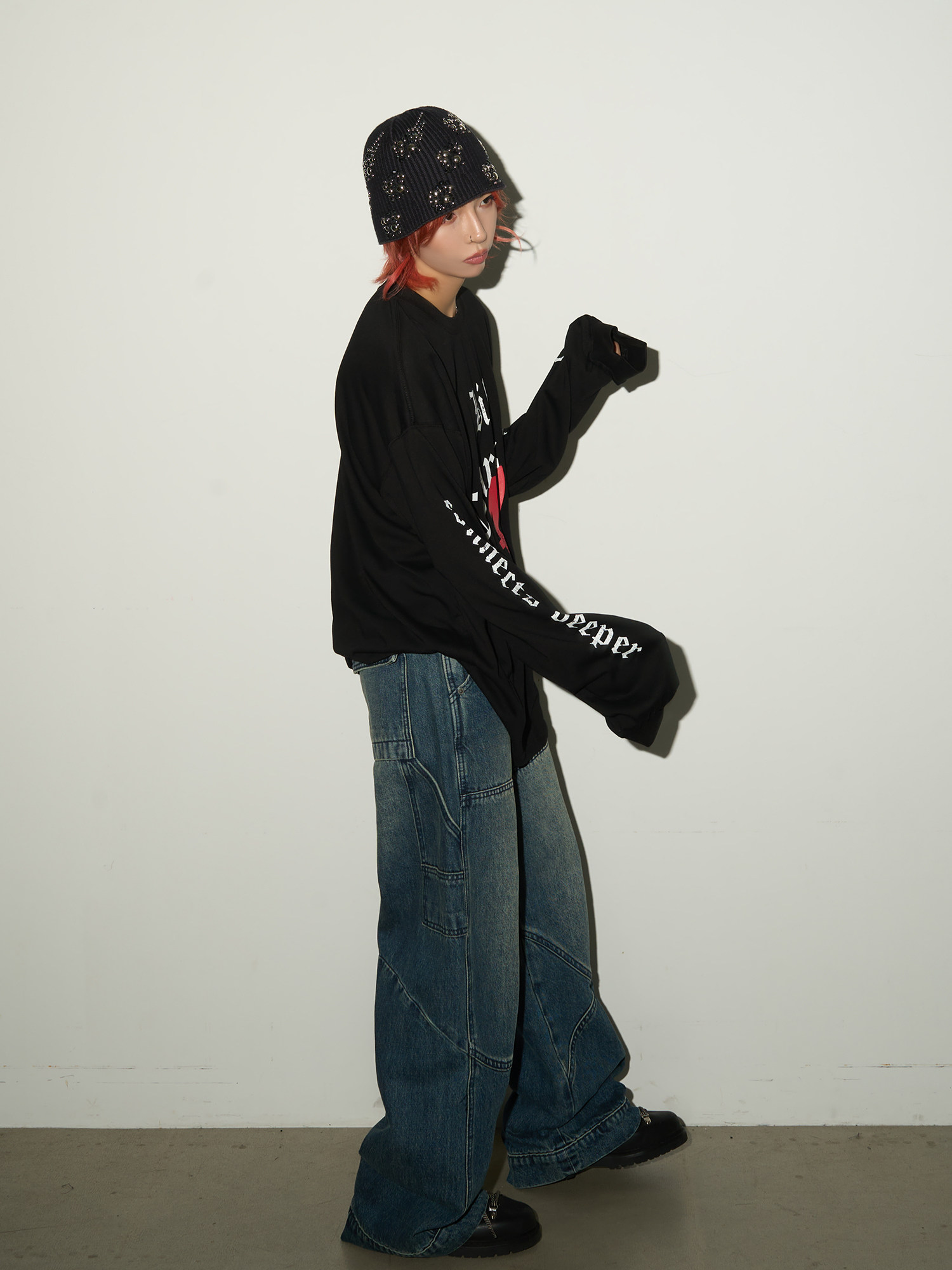 Gothic Print Damage Long Sleeve T-Shirt NA9141