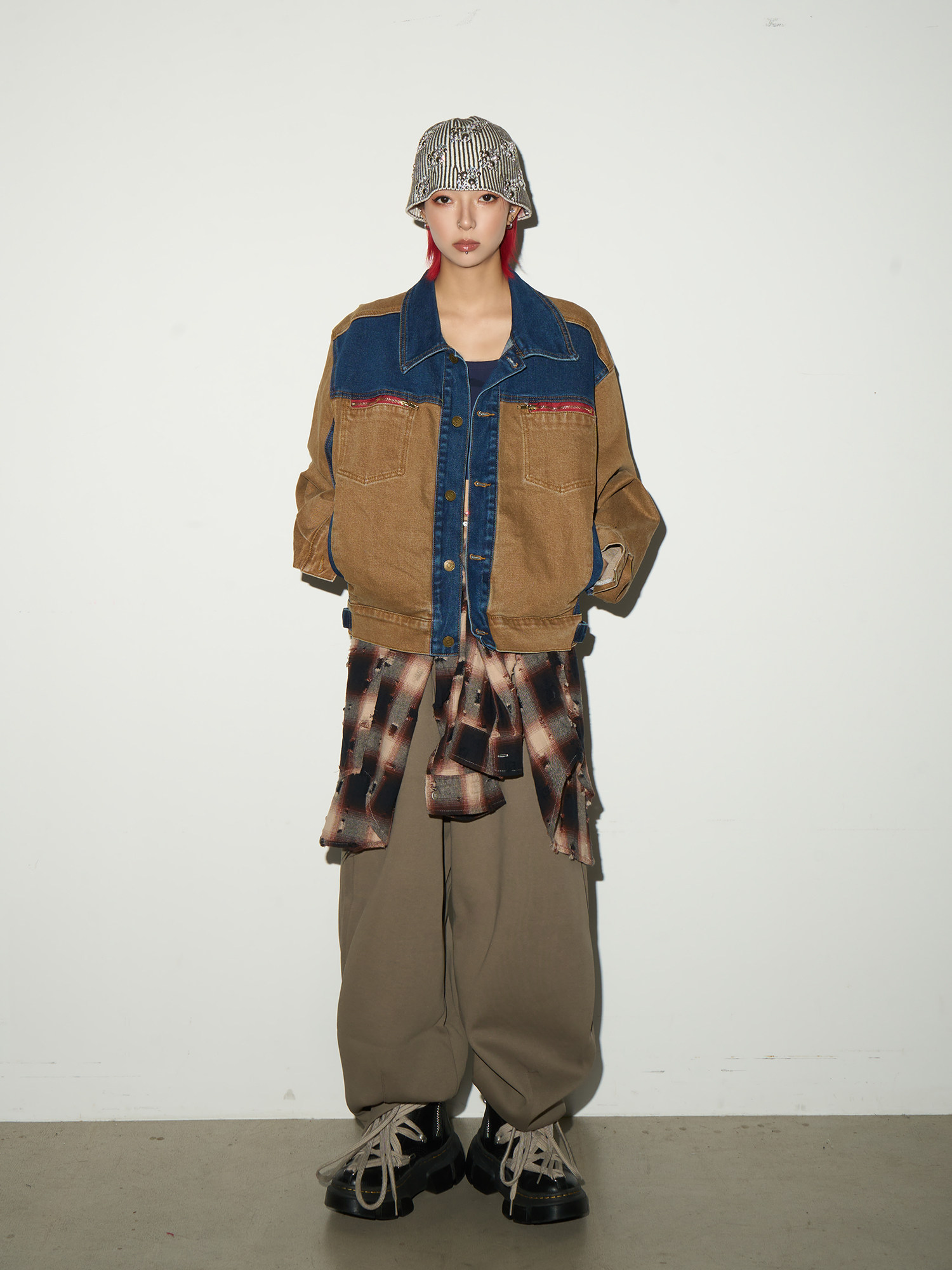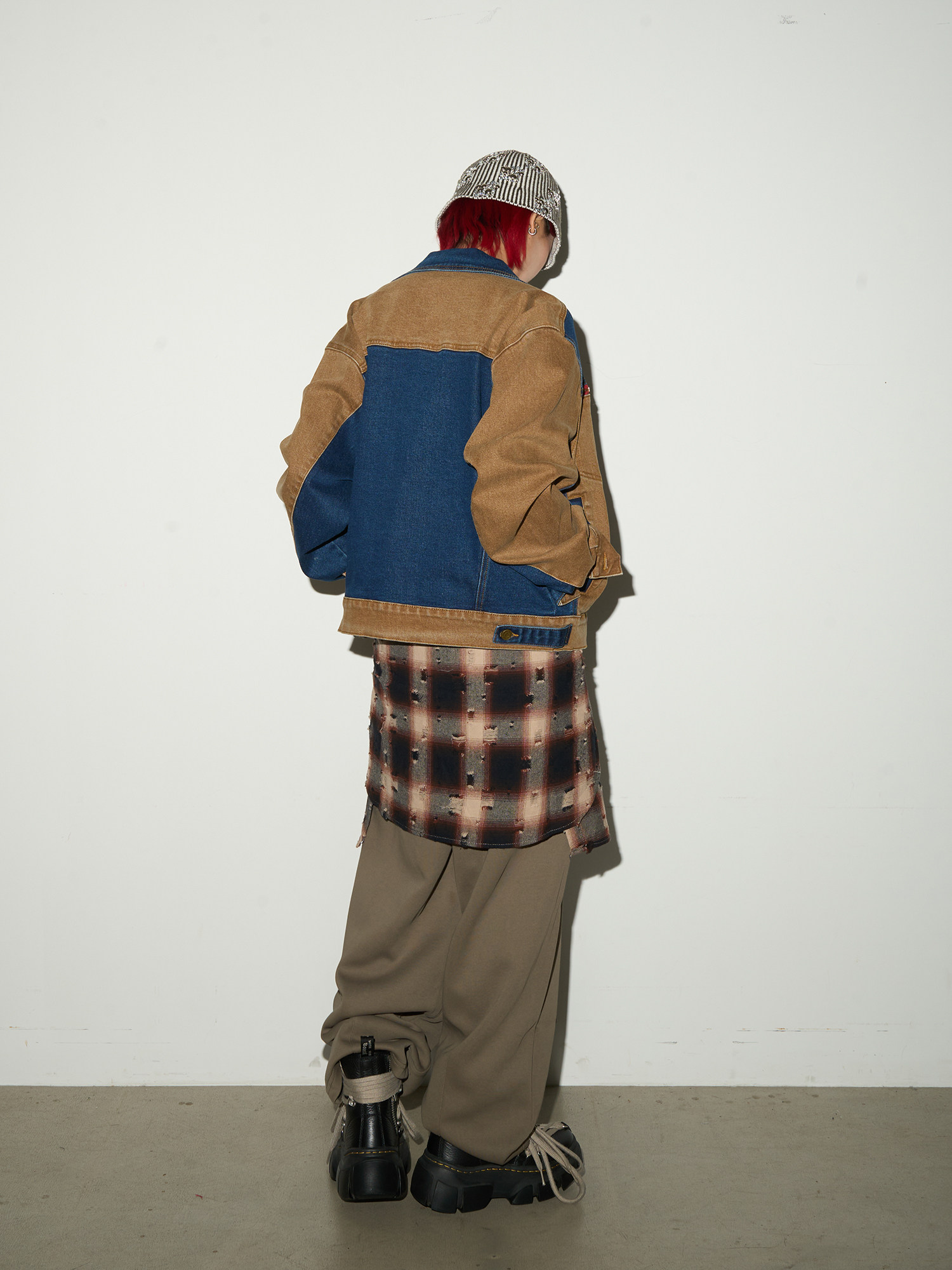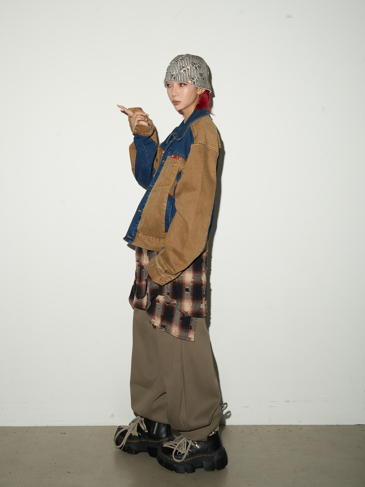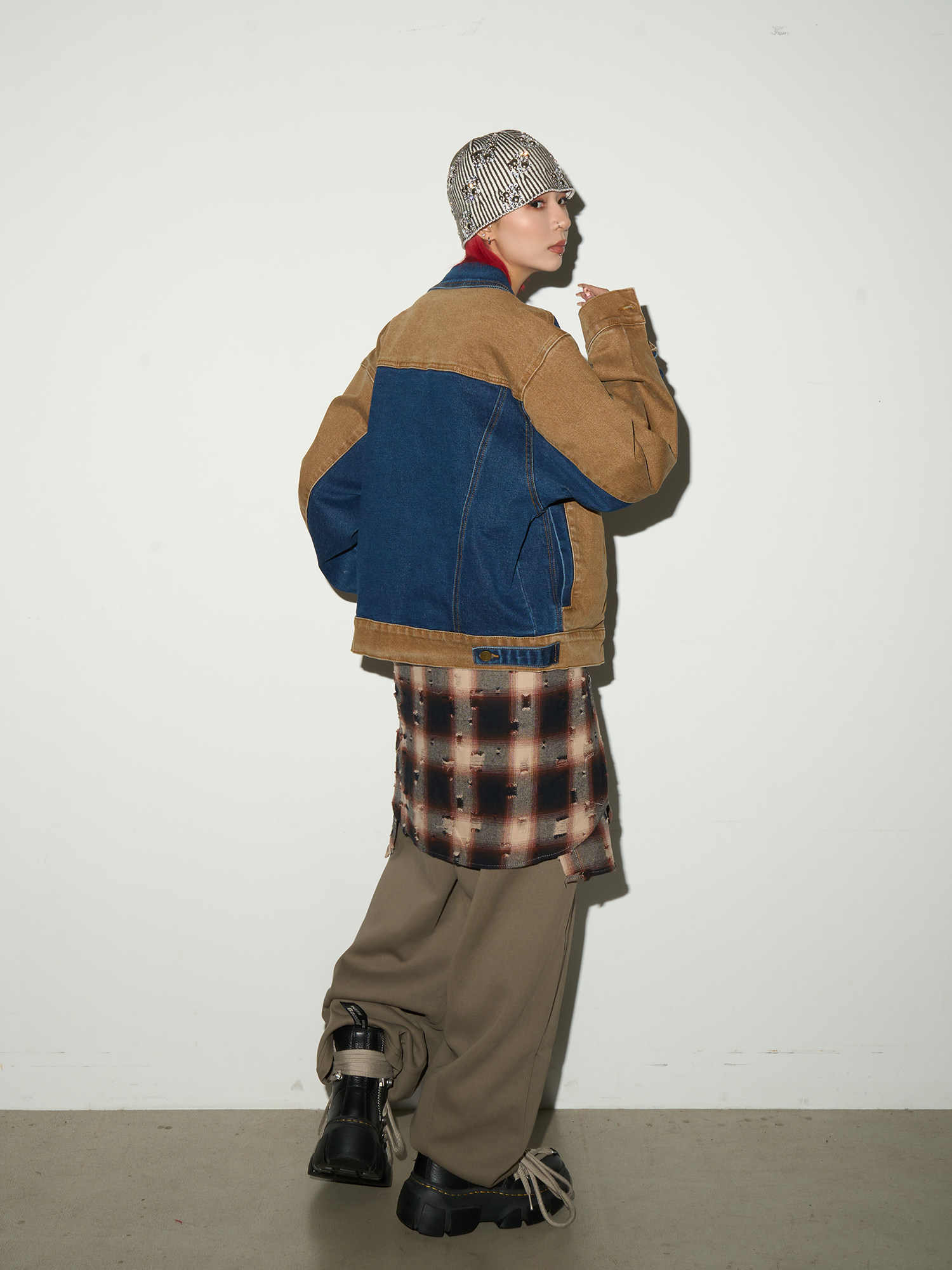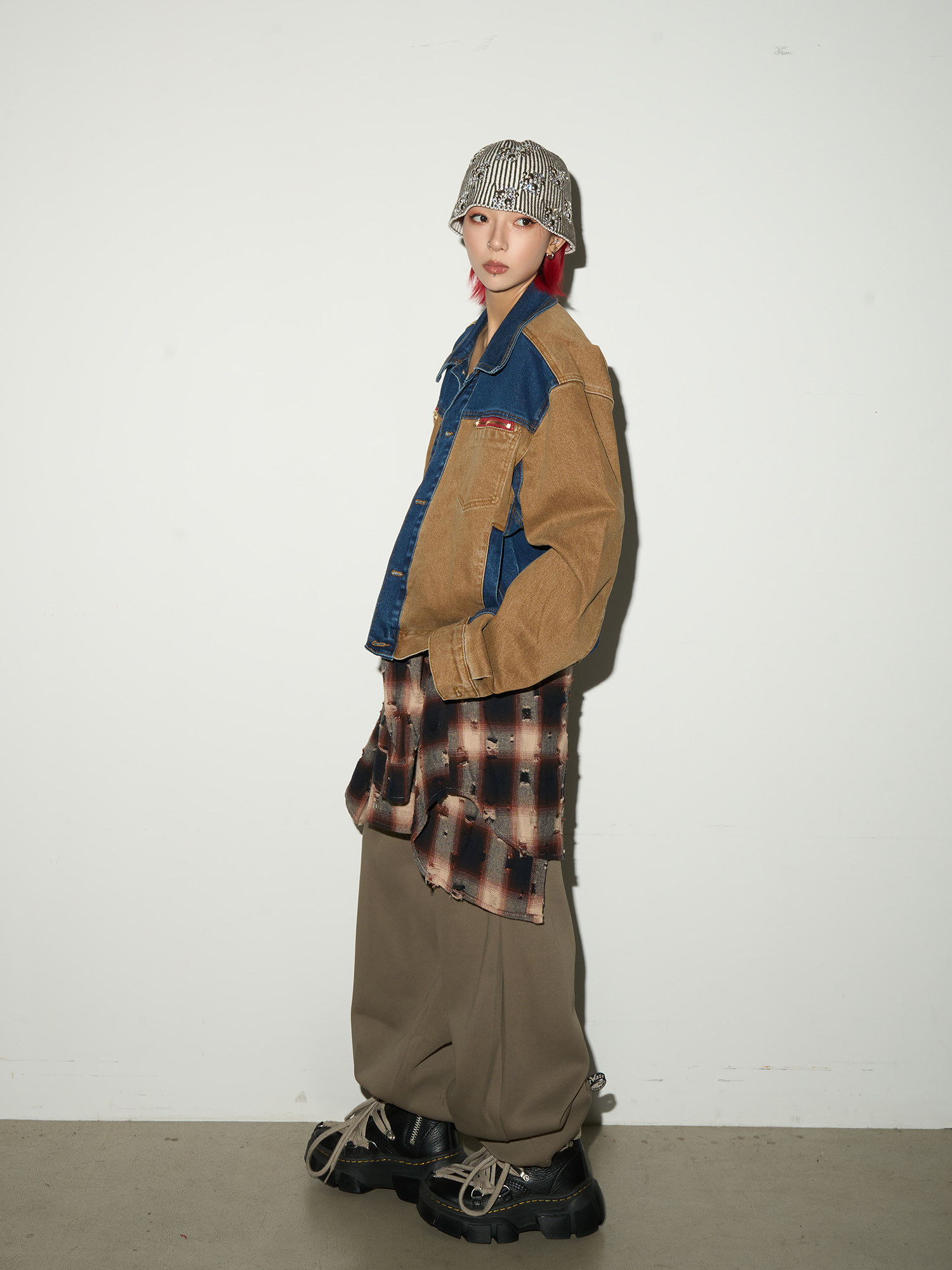 Ripped Plaid Oversize Long Sleeve Shirt NA9149
