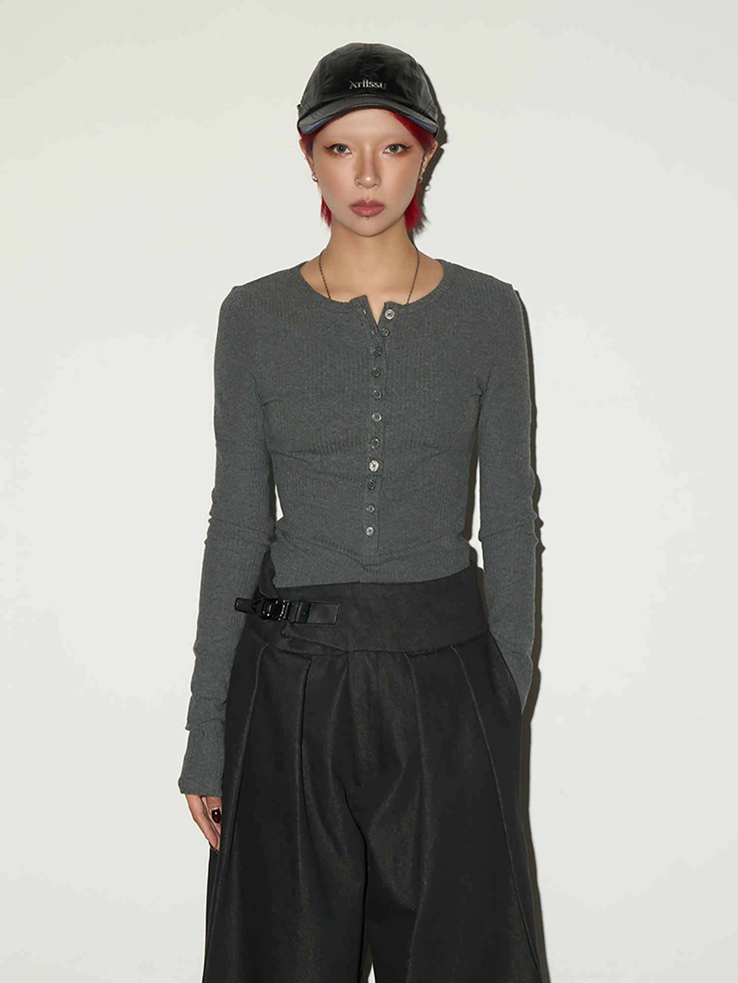 Fitted Knit Long Sleeve T-Shirt NA9173