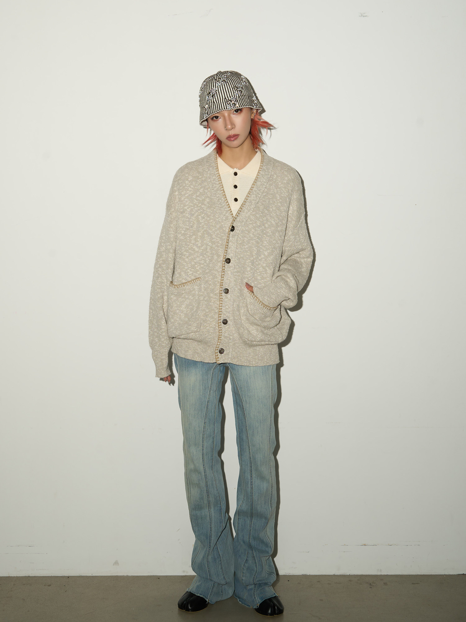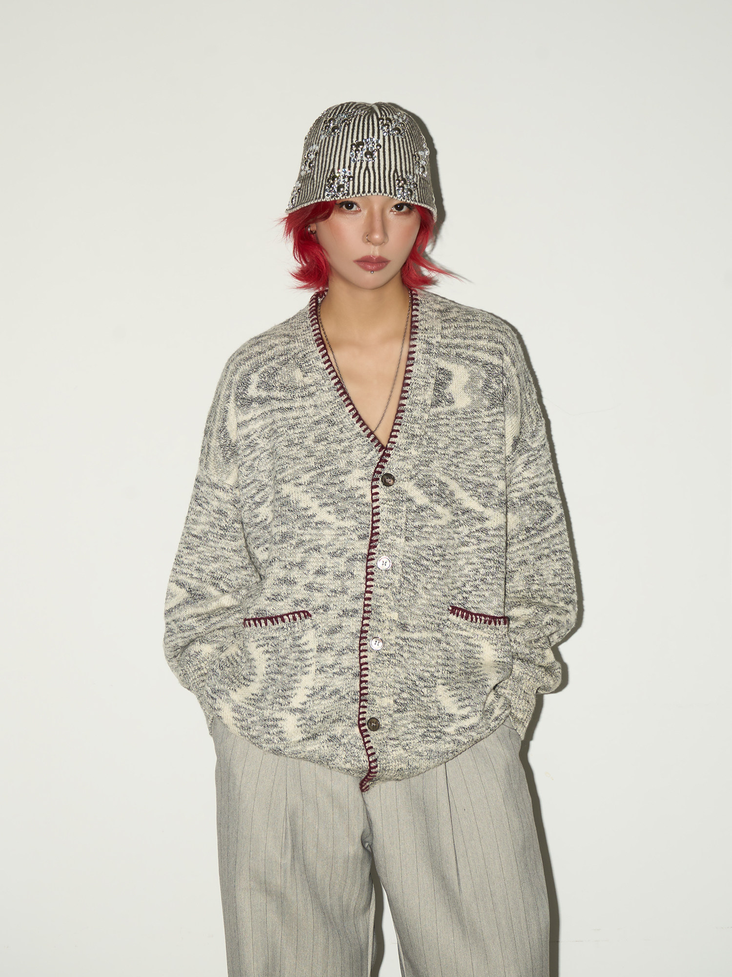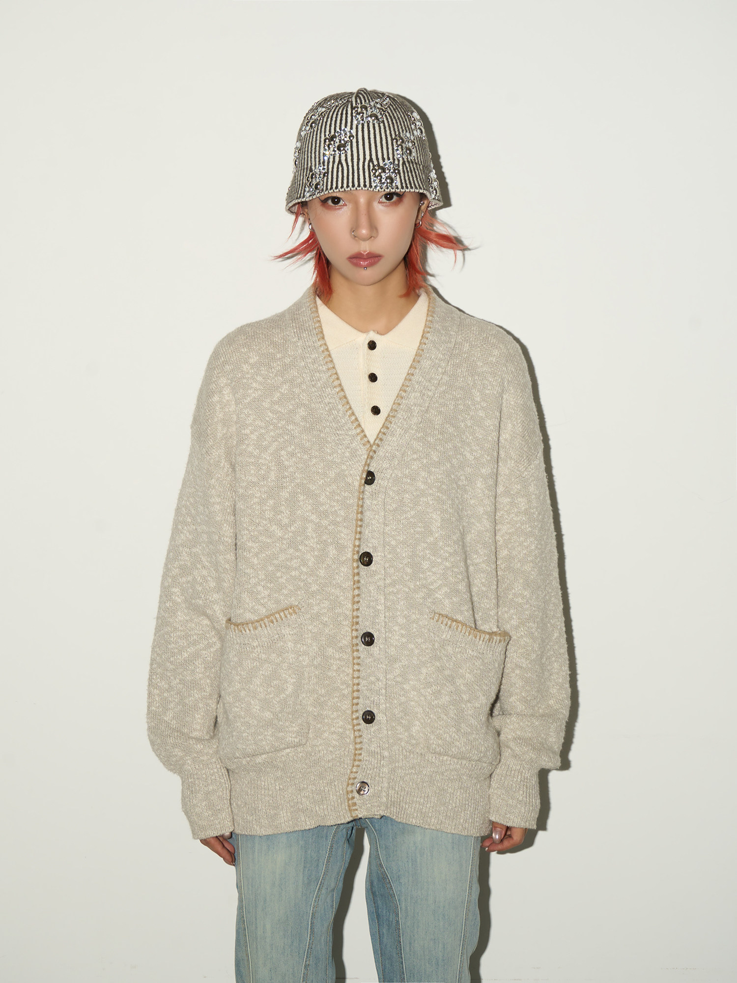 Melange Knit Pocket Button Cardigan NA9190