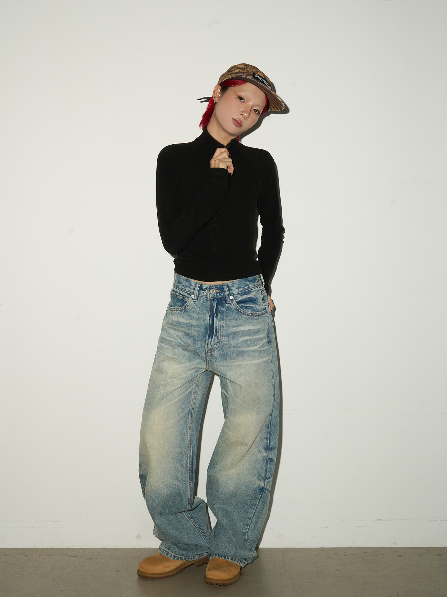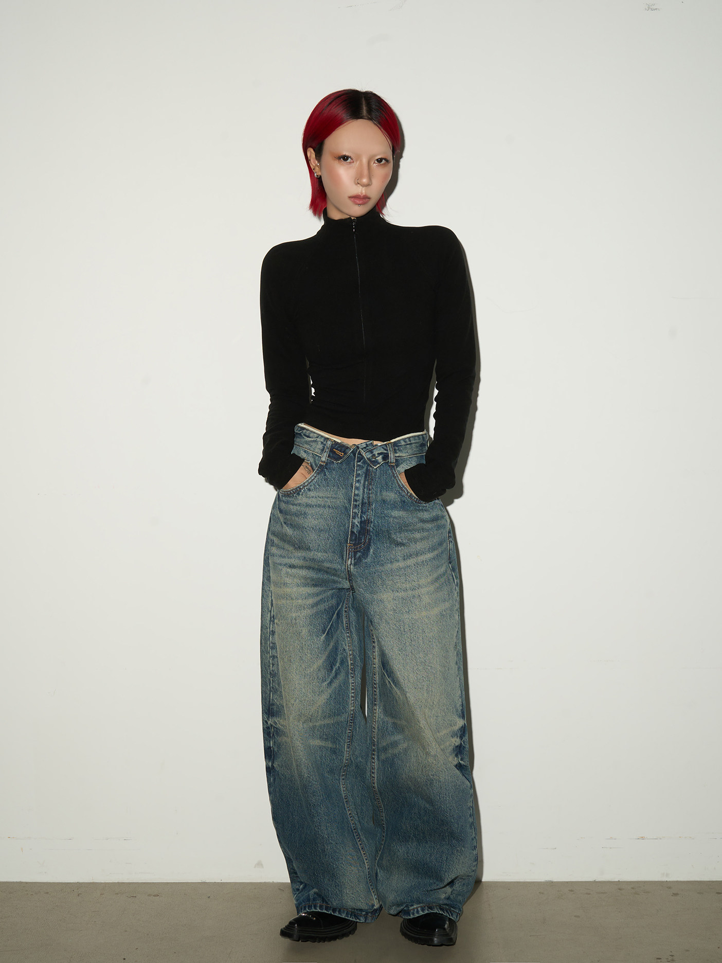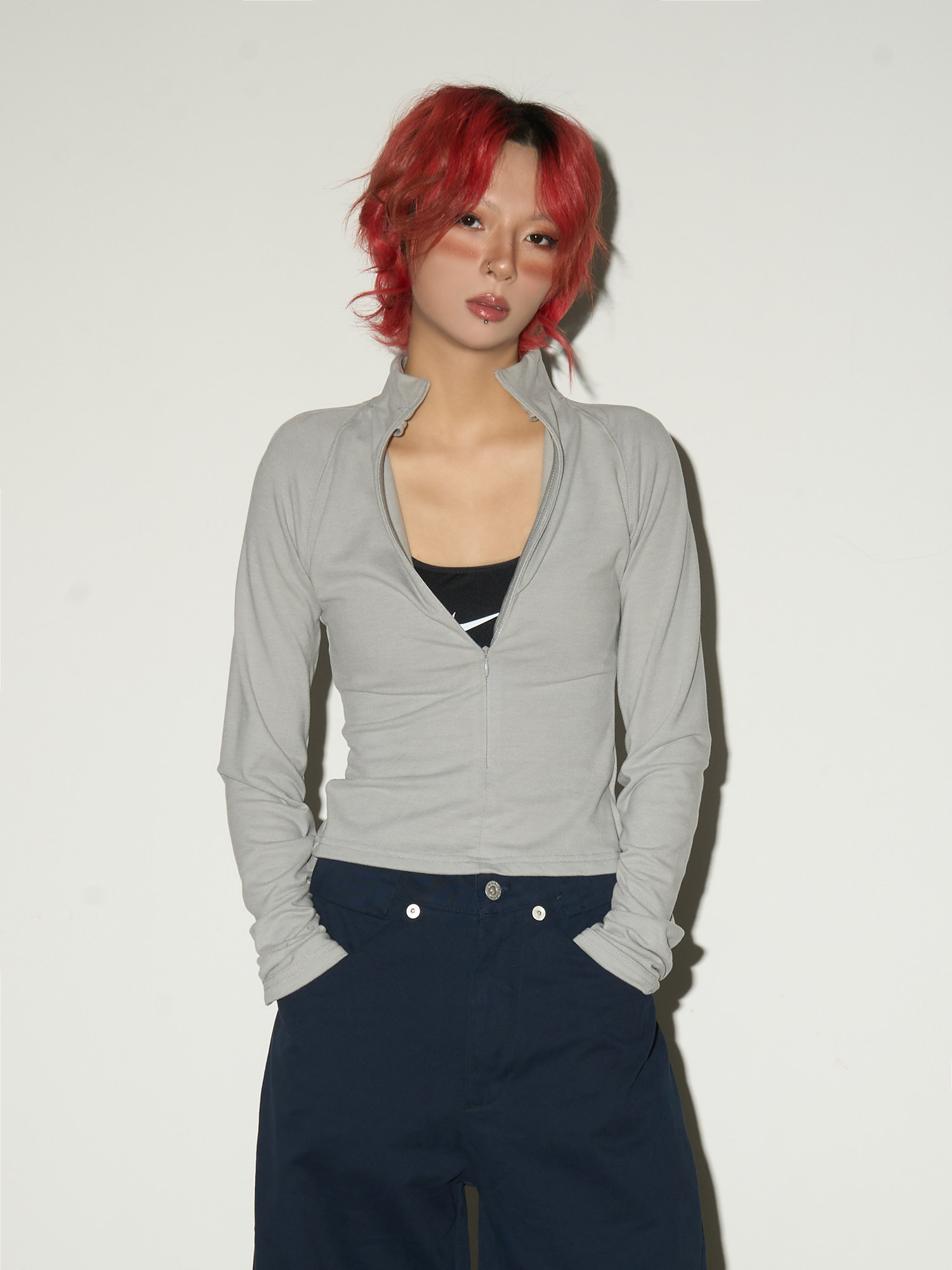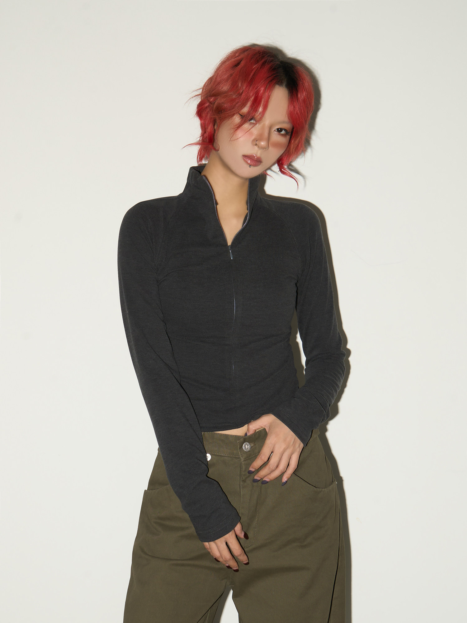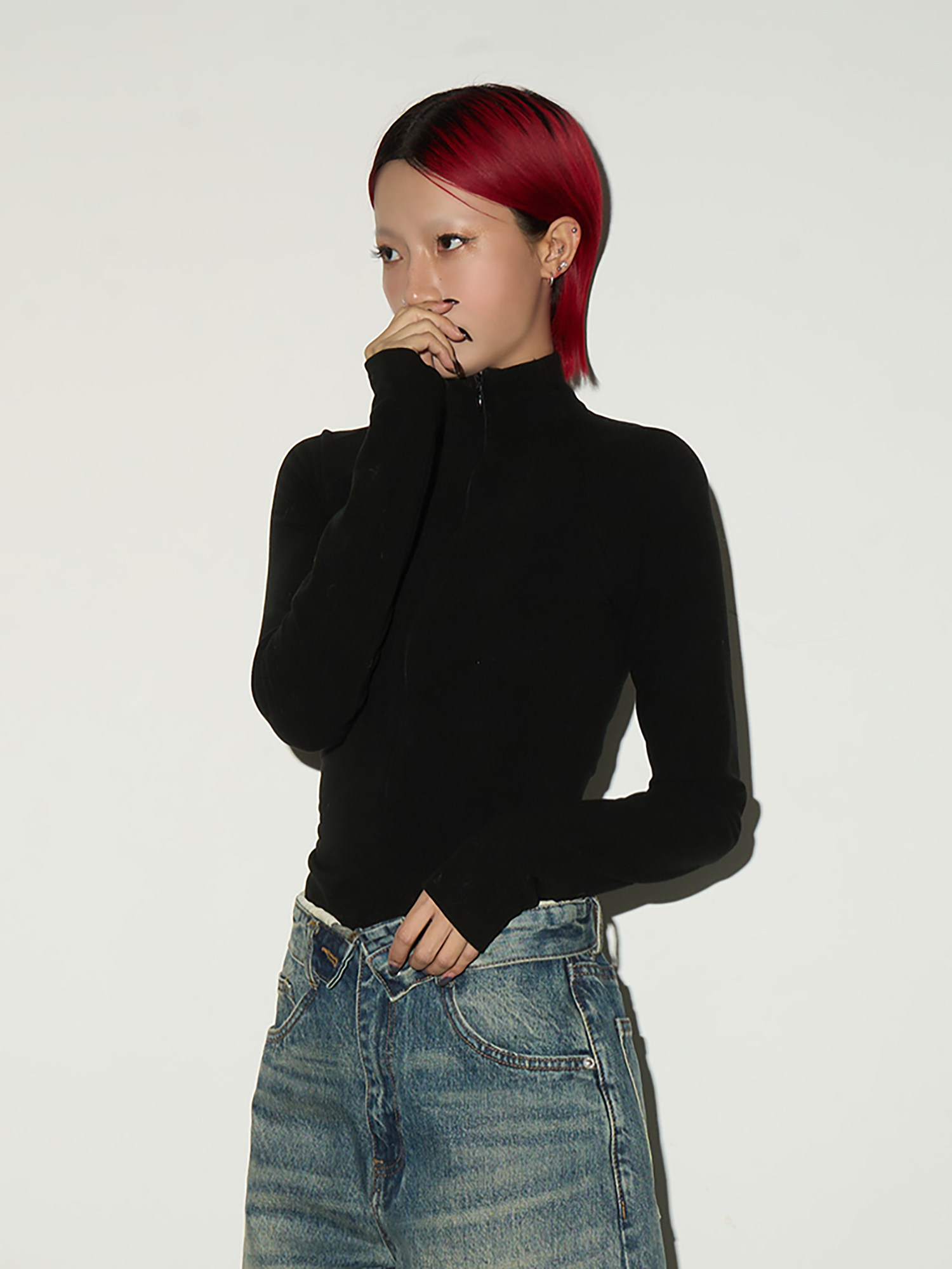 Half Zip Fitted Long Sleeve T-Shirt NA9197