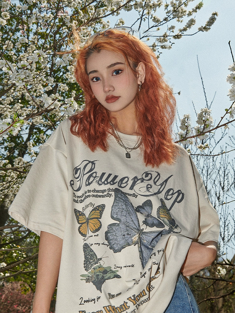 Butterfly Print Oversize Short Sleeve T-Shirt NA2652