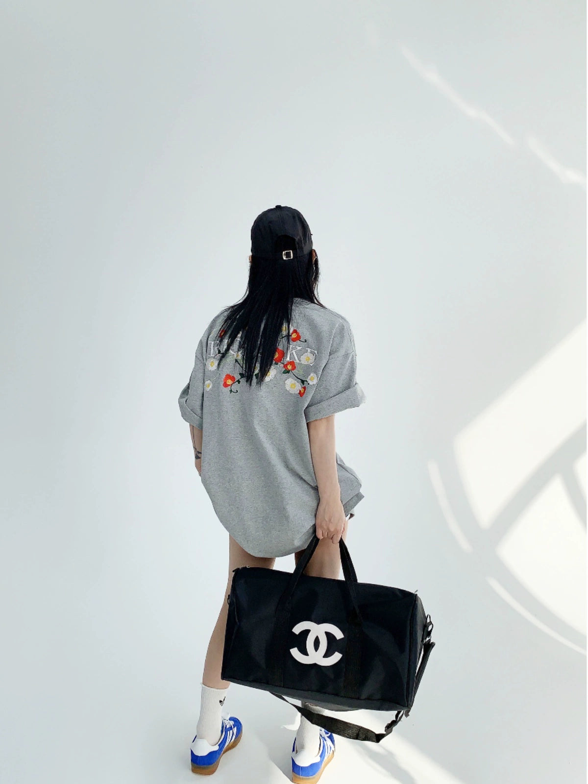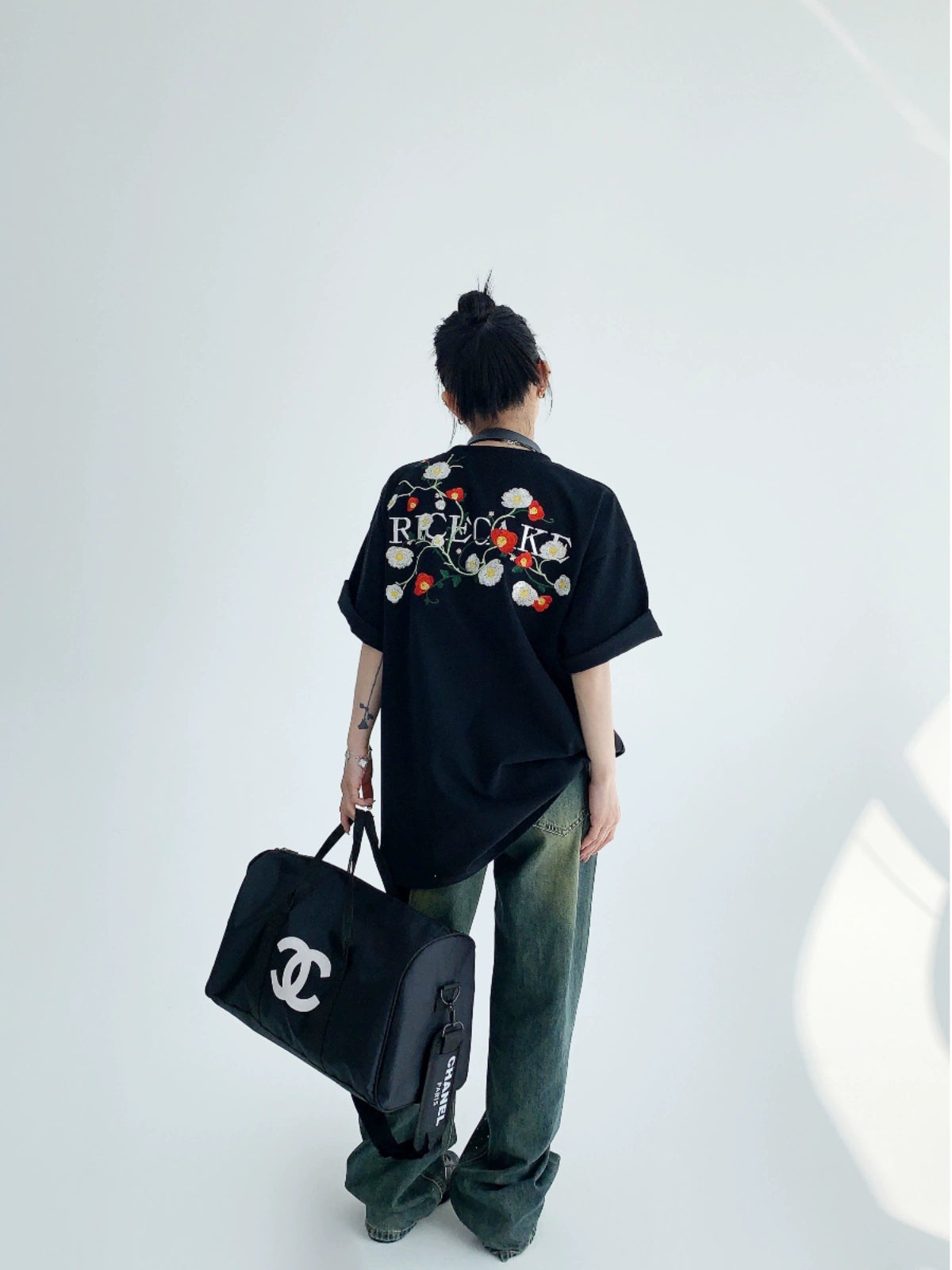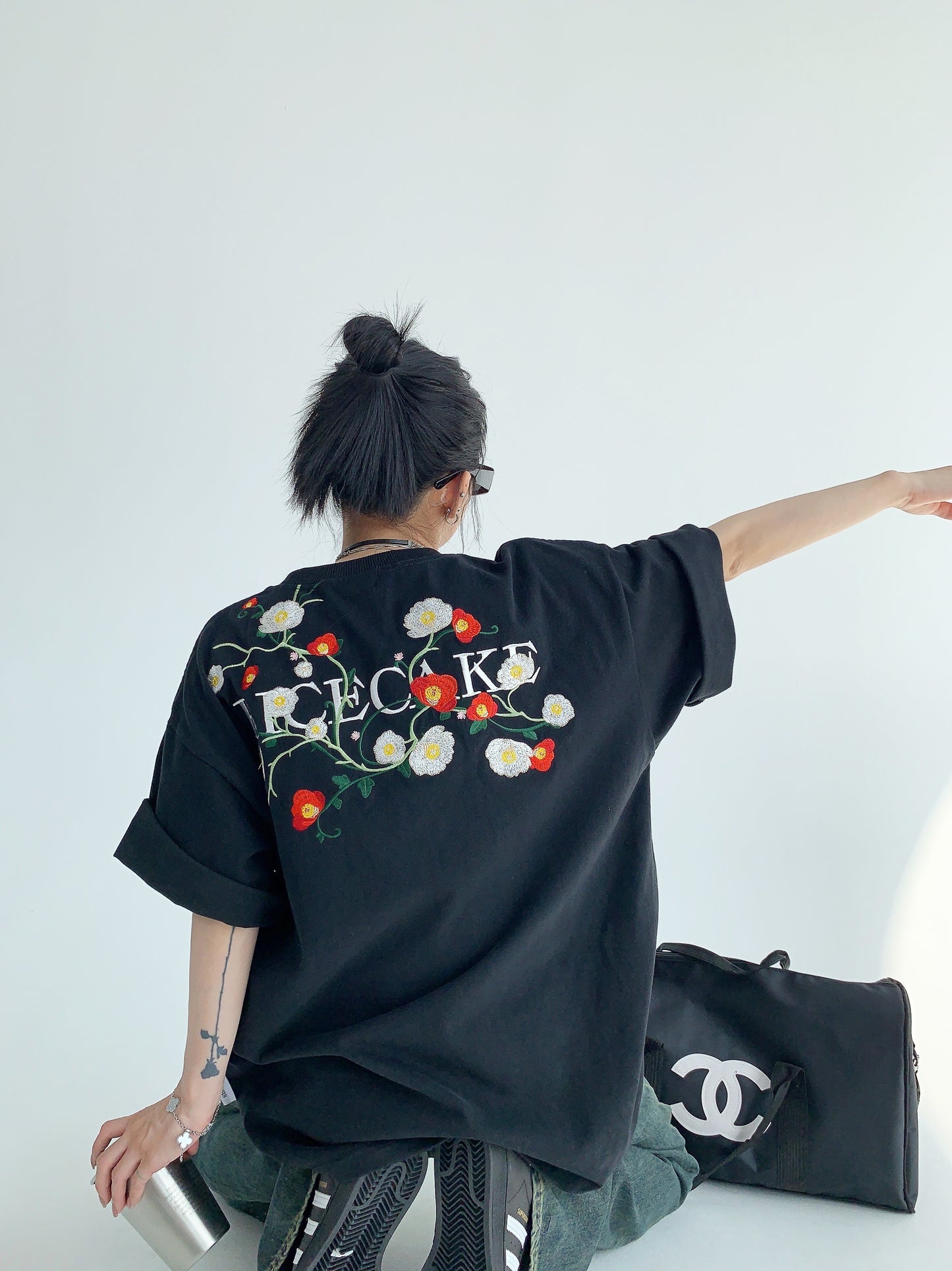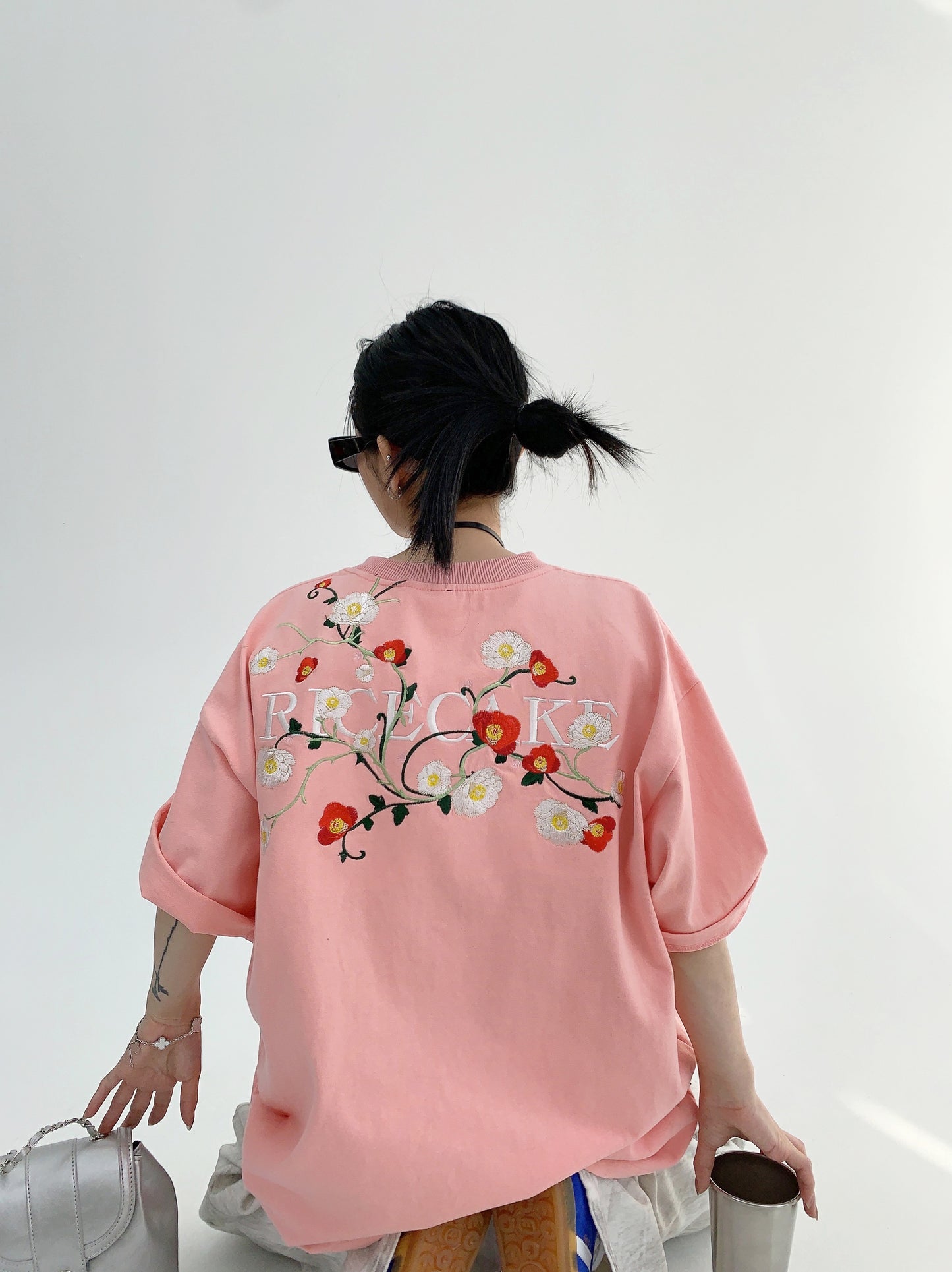 Oversize Flower Embroidery Short Sleeve T-Shirt NA2866