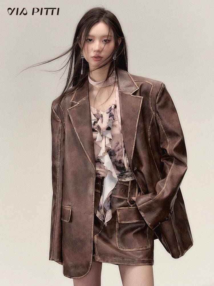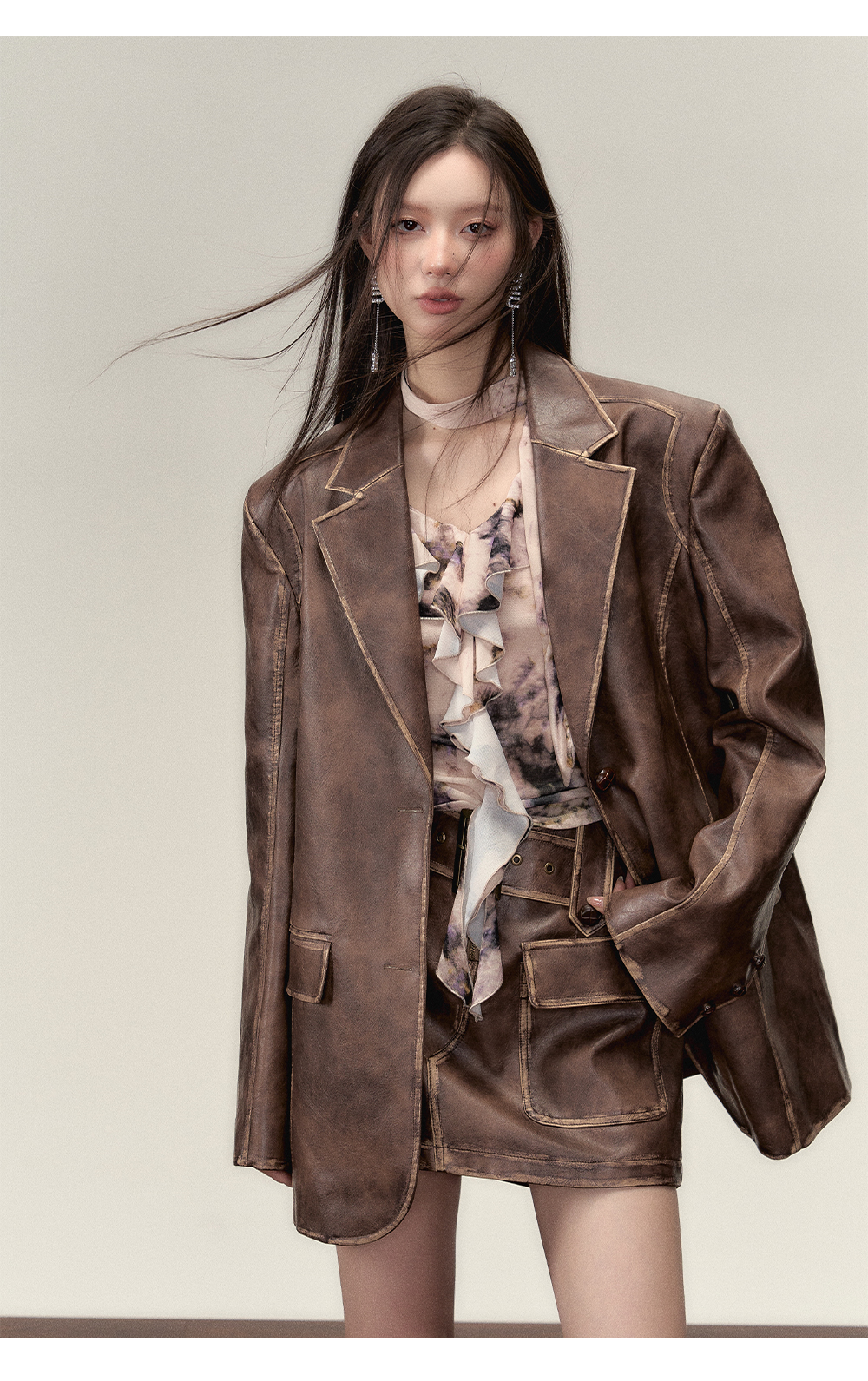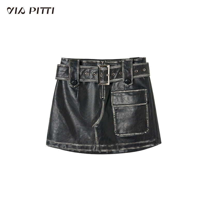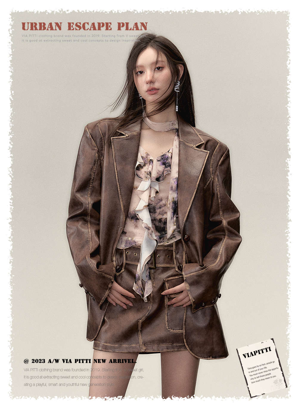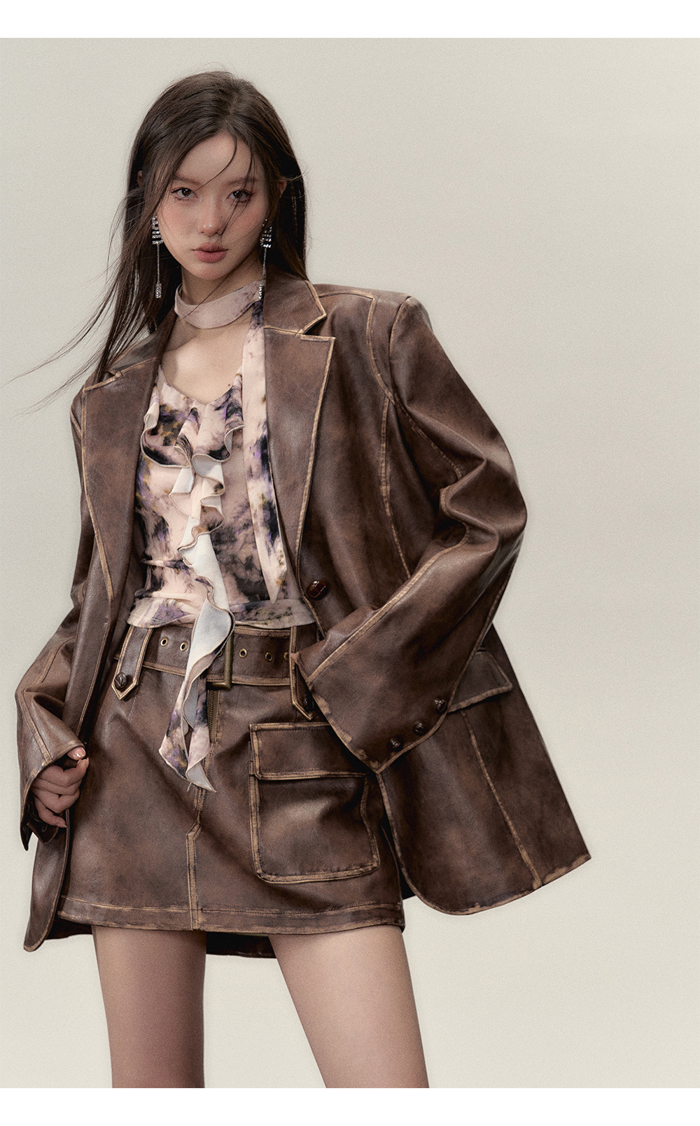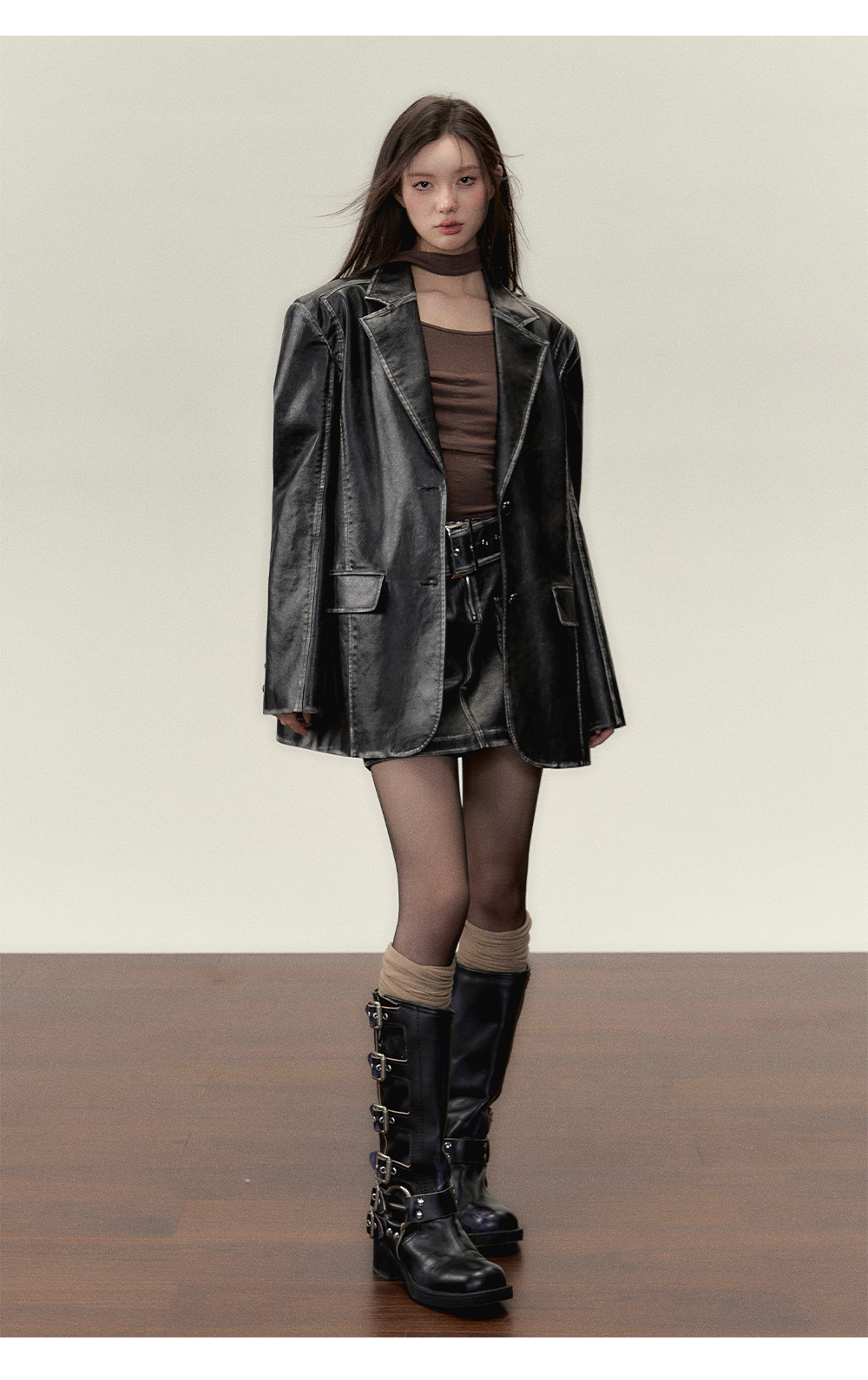 PU Leather Jacket & PU Leather Belted Skirt Setup NA4671