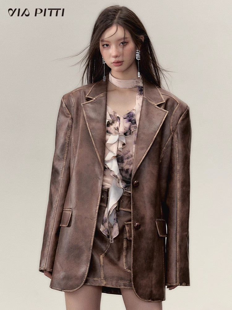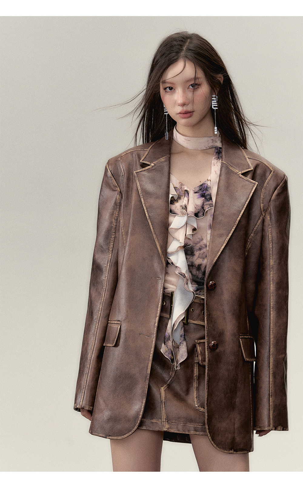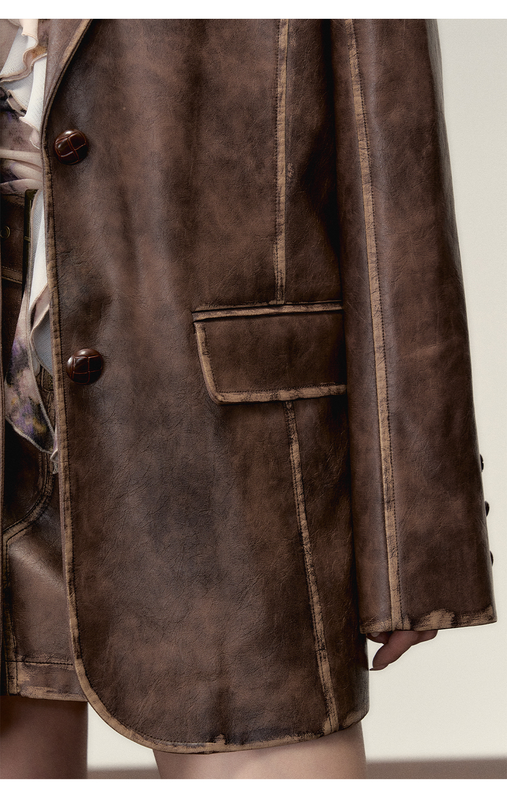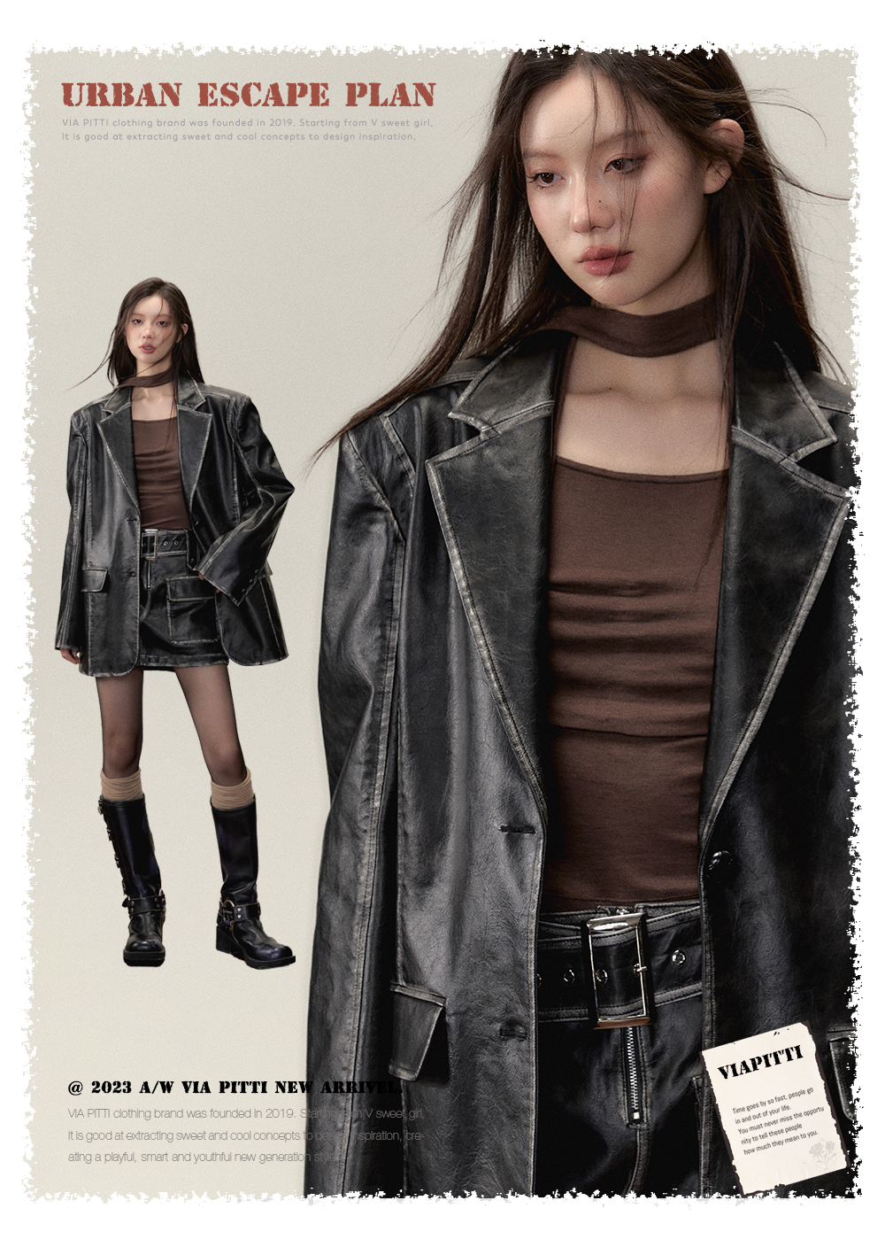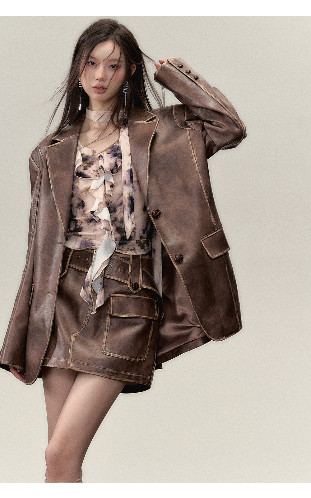 PU Leather Jacket & PU Leather Belted Skirt Setup NA4671