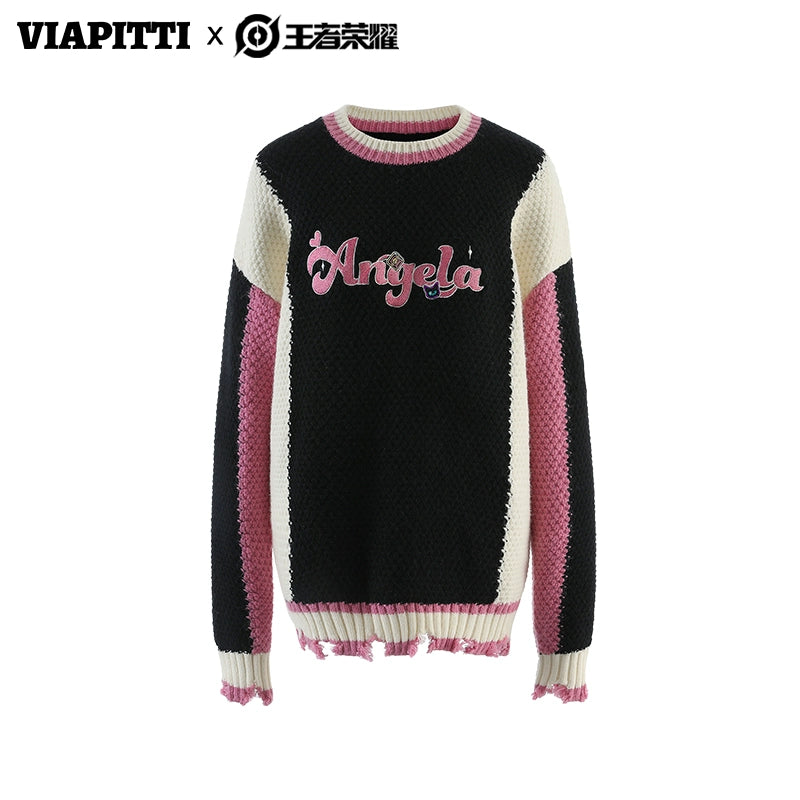 Contrast Color Embroidery Knit Sweater NA4786