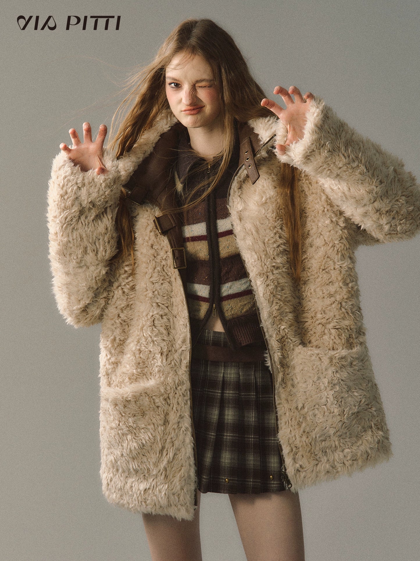 Stand Neck Reversible Furry & Suede Jacket NA4835