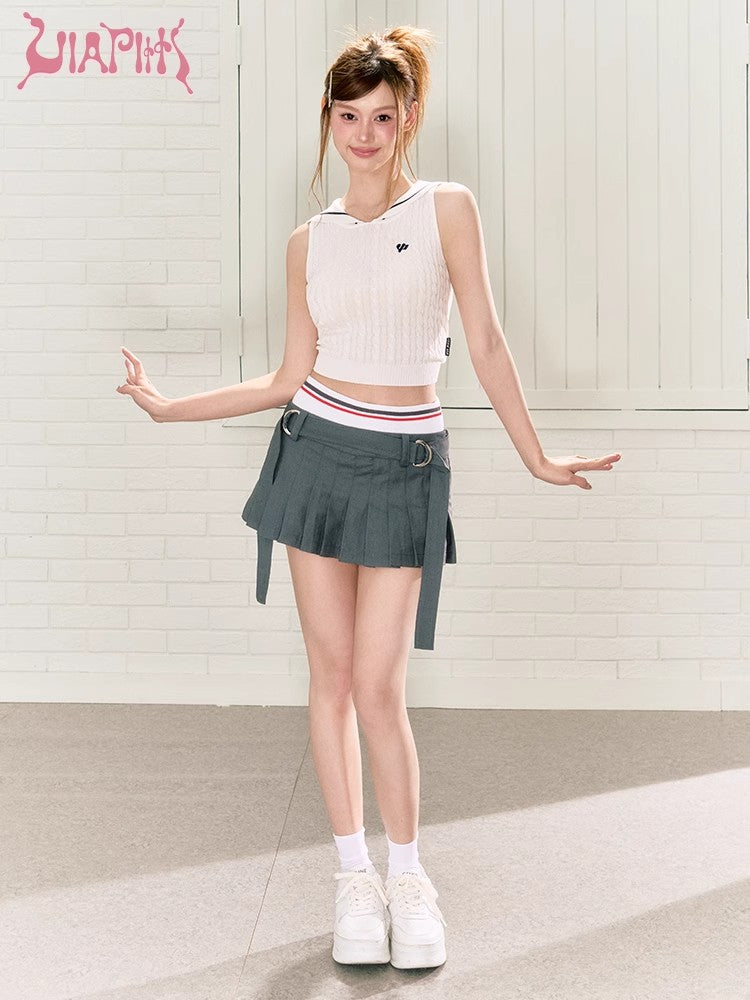 Detachable Two Piece Waist Patchwork Pleated Short Skirt NA4841