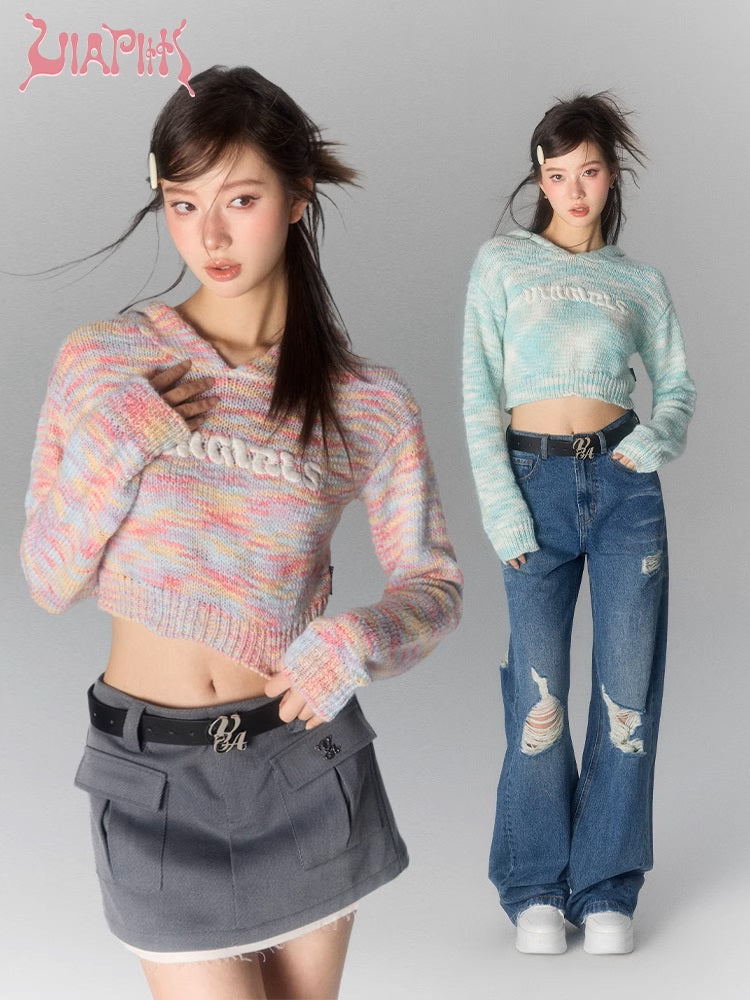 3D Embroidery Letter Hooded Knit Sweater NA4929