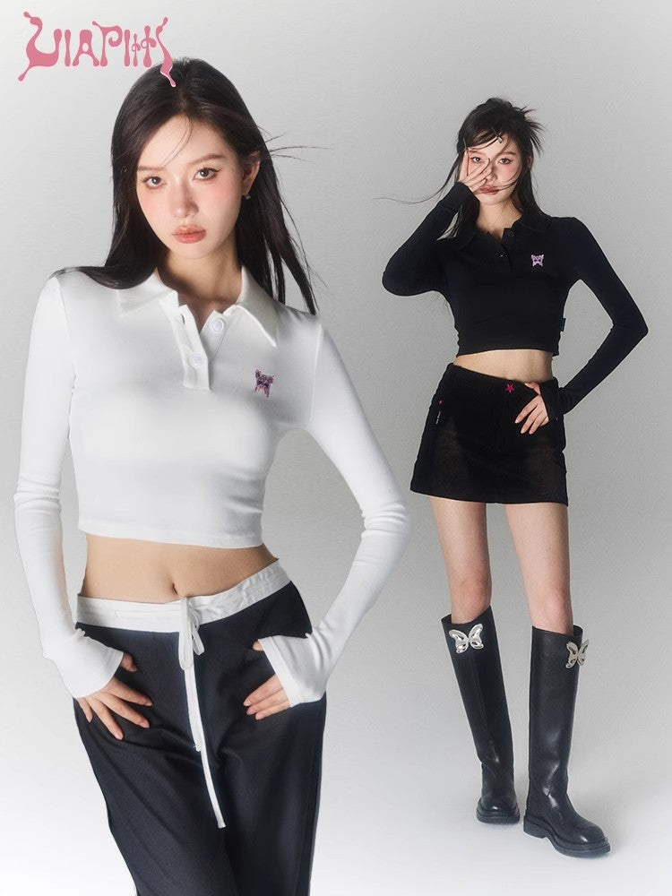 Embroidery Slim Fit Polo Collar Long Sleeve T-shirt NA4941