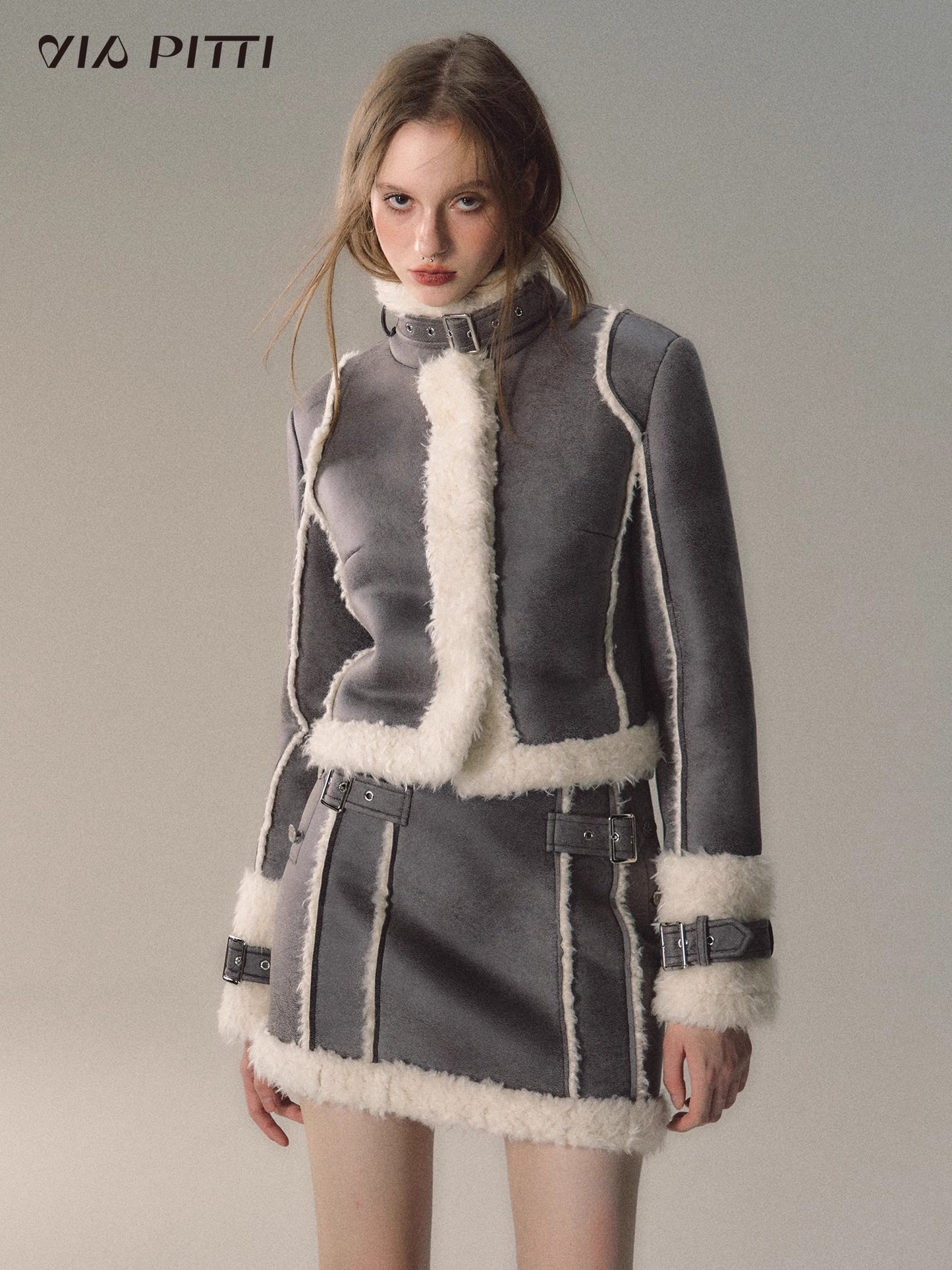 Short Warm Fluffy Jacket & Short Skirt Setup NA5024