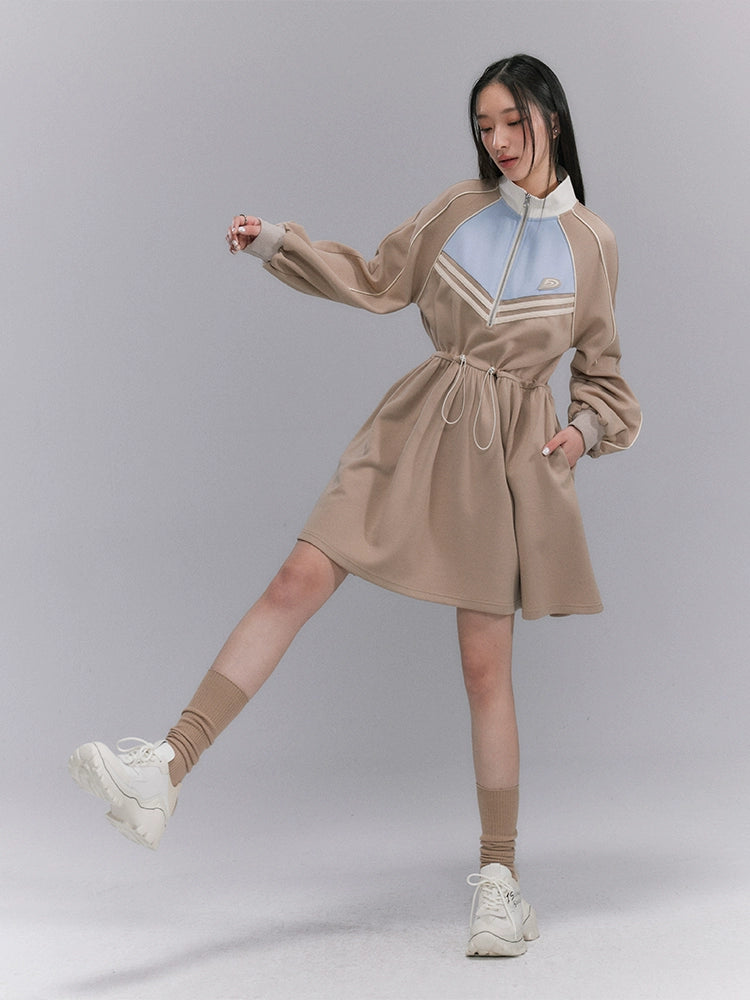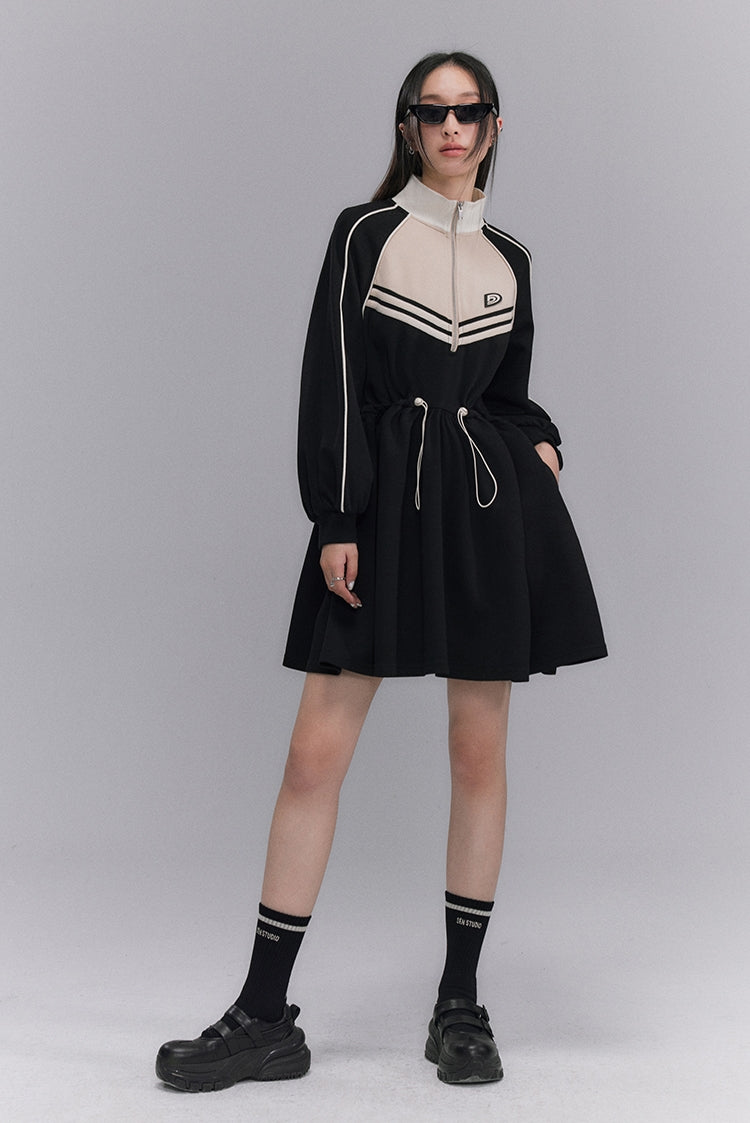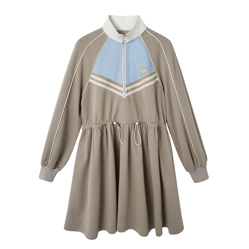 Embroidery Color Blocking Sporty Long Sleeve Jersey Dress NA5301