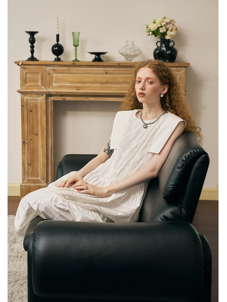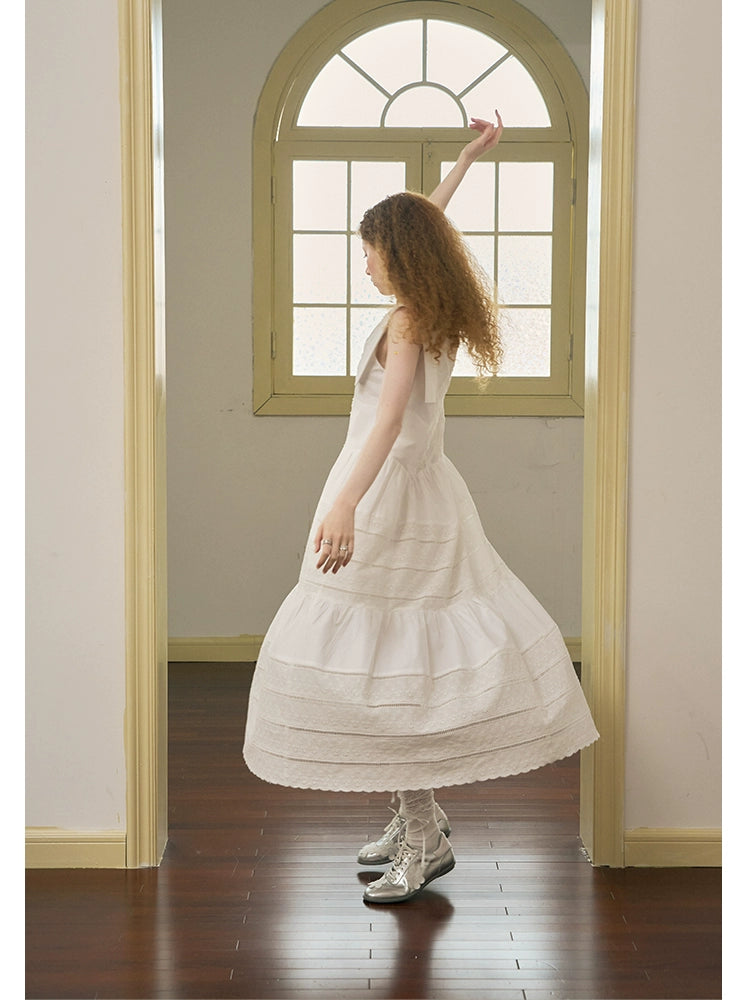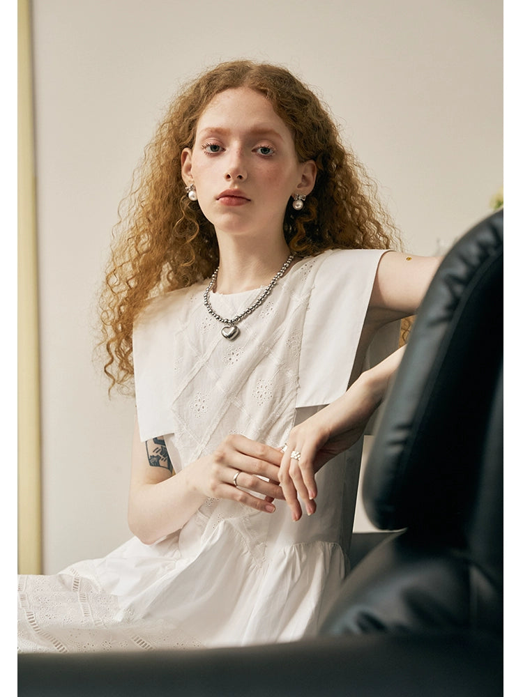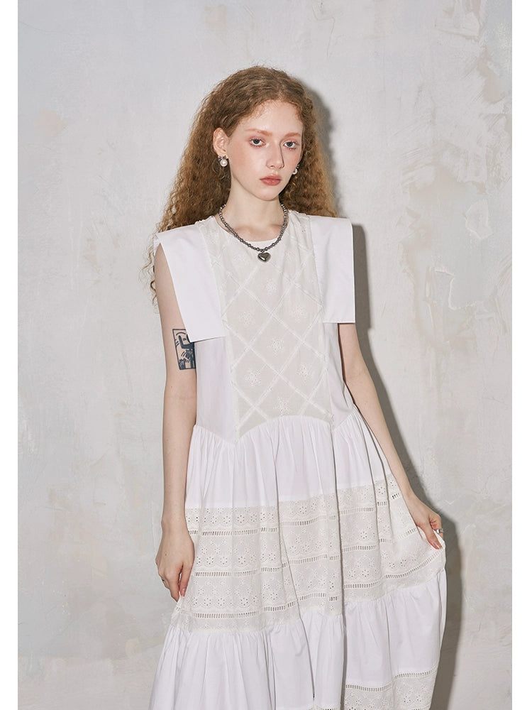 Embroidery Splicing Round Neck French Flying Sleeve Dress NA5307