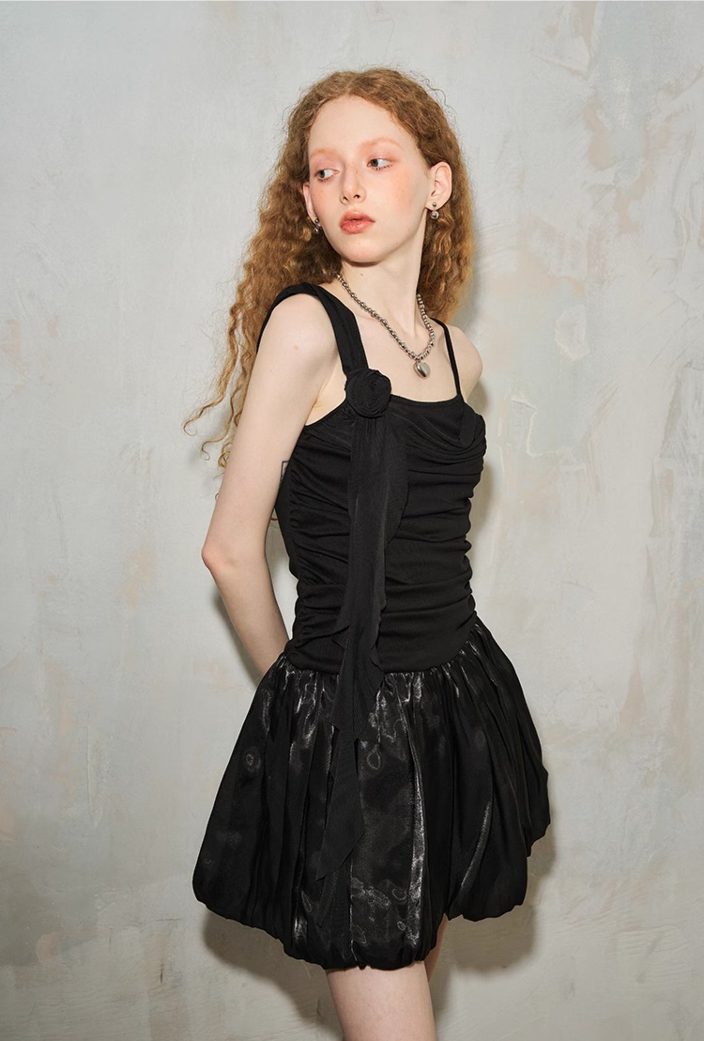 Rose Design A-line Fluffy Tassel Slim Fit Dress NA5381