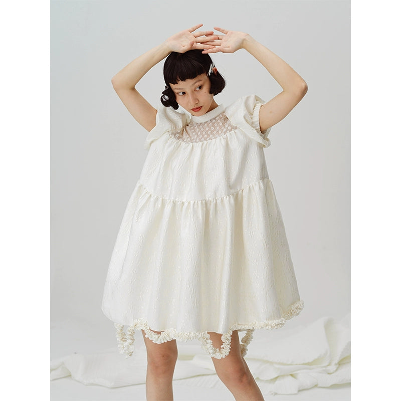 Bubble Sleeve Lace Splicing A-line Dress NA5403
