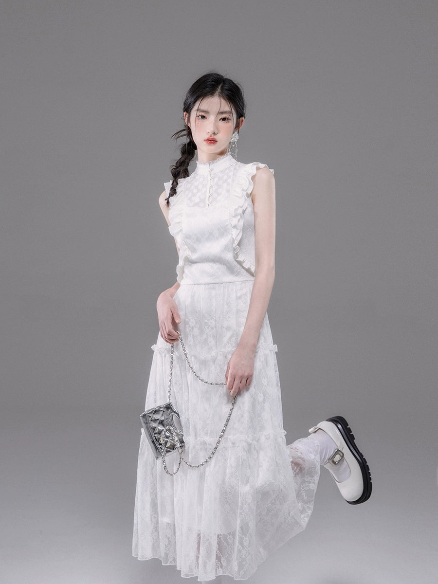 Lace Stand Neck Sleeveless Dress NA5523