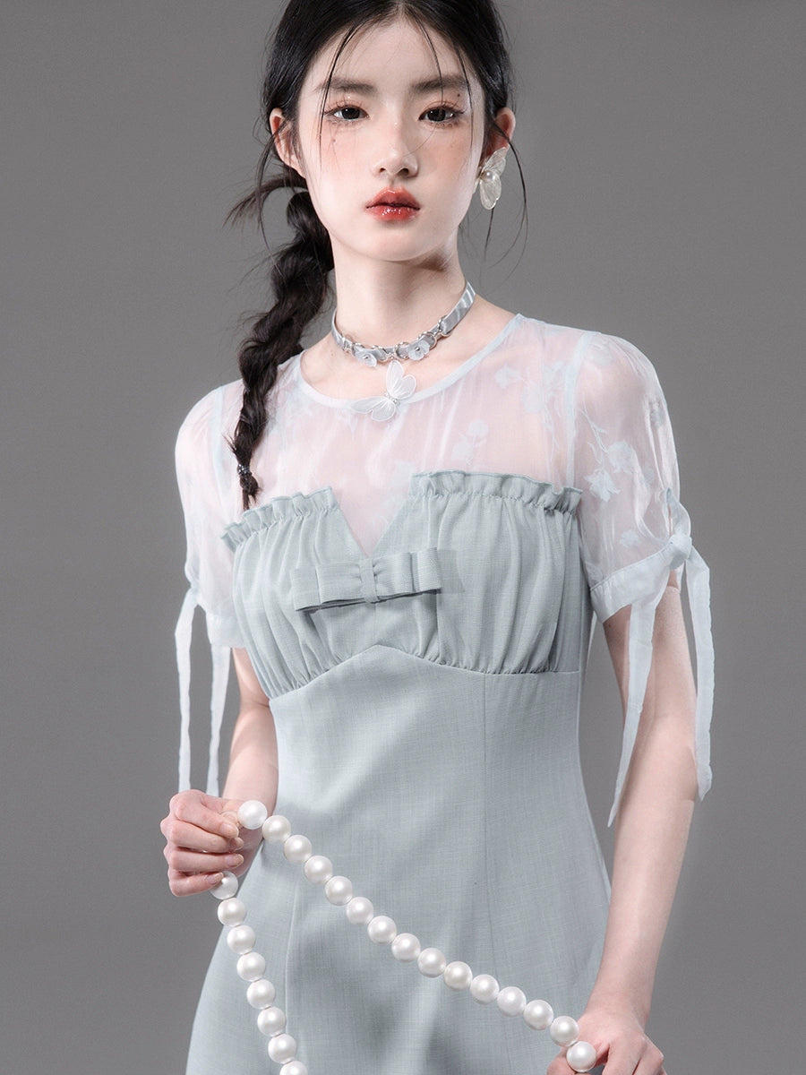 Short Sleeve Double Layer Flower Bud Dress NA5529