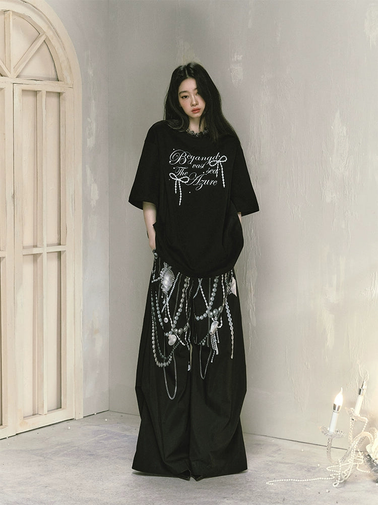 Graffiti Print Thin Wide Leg Pants NA5624