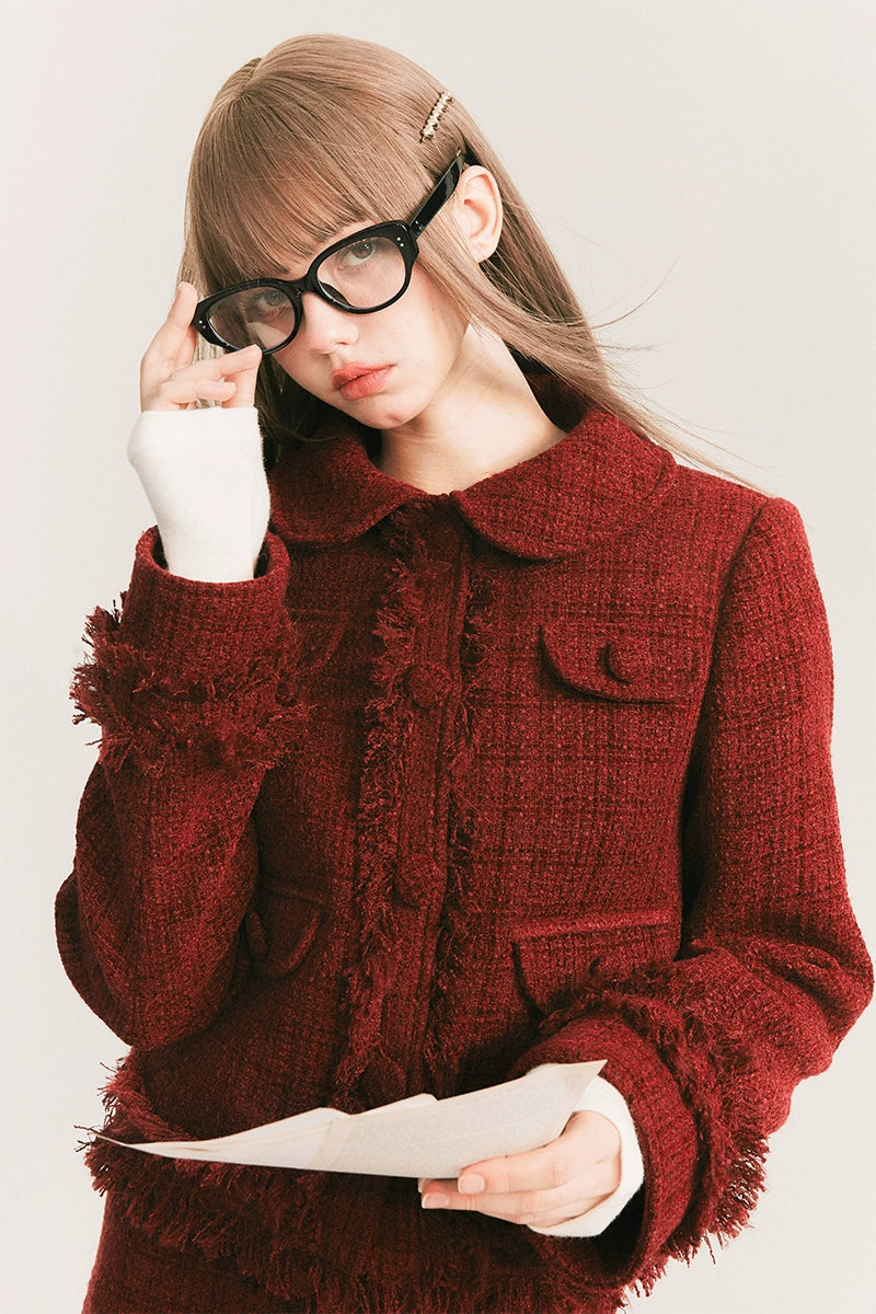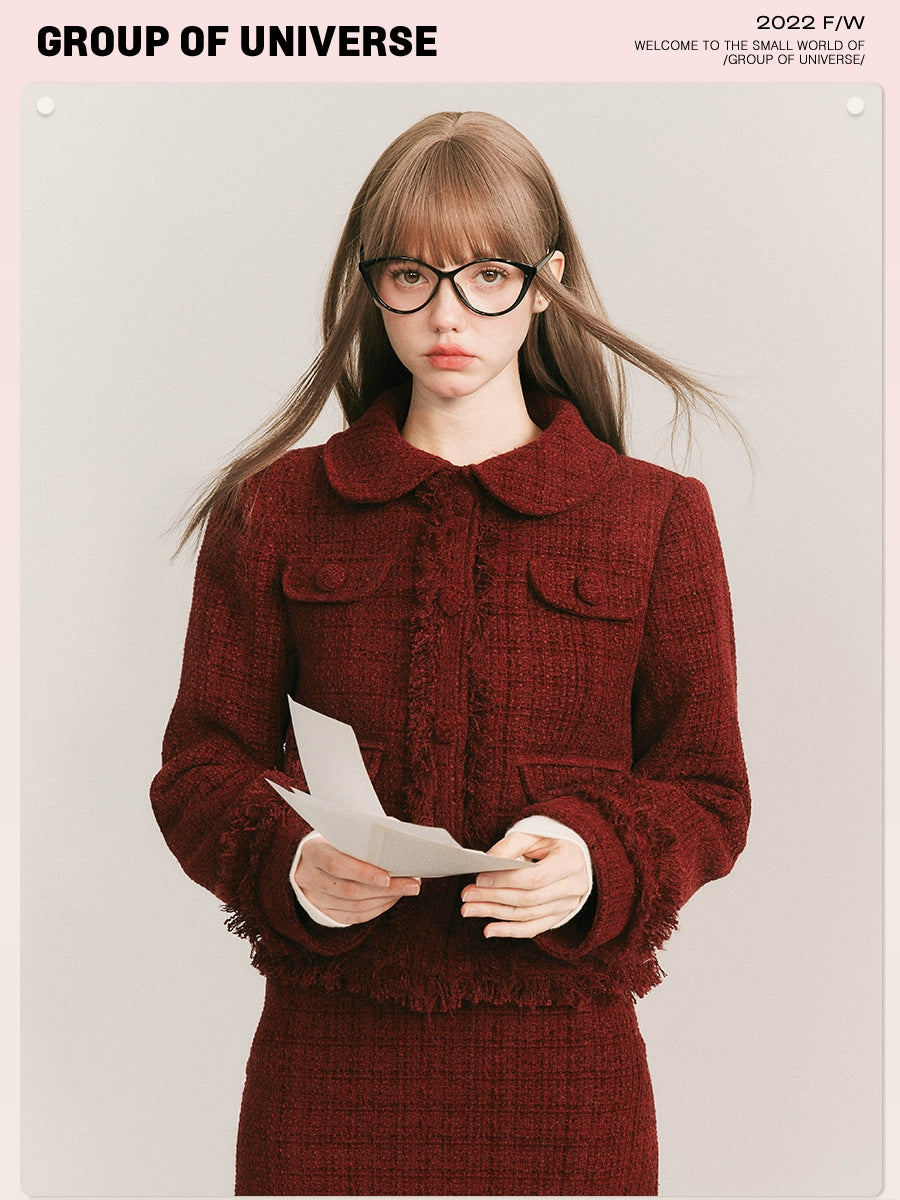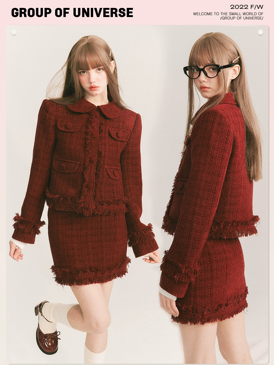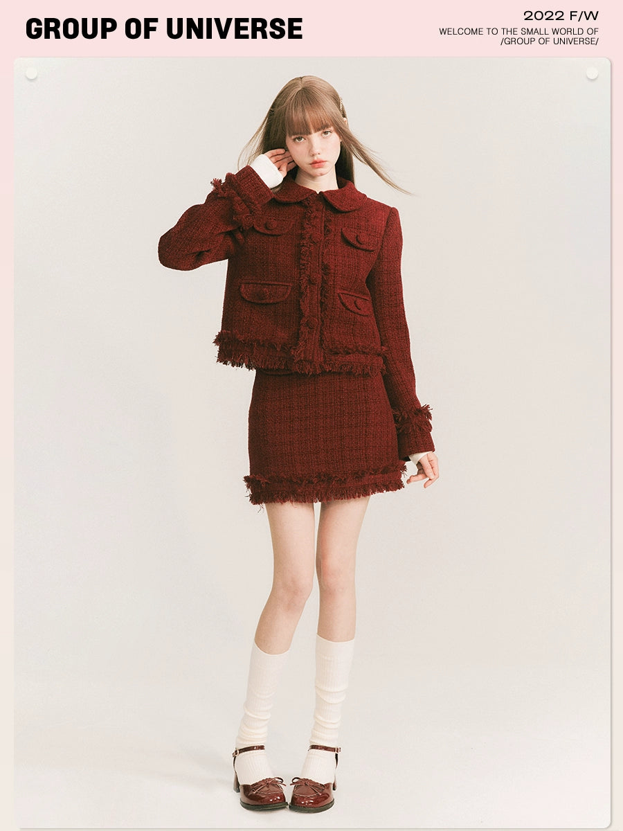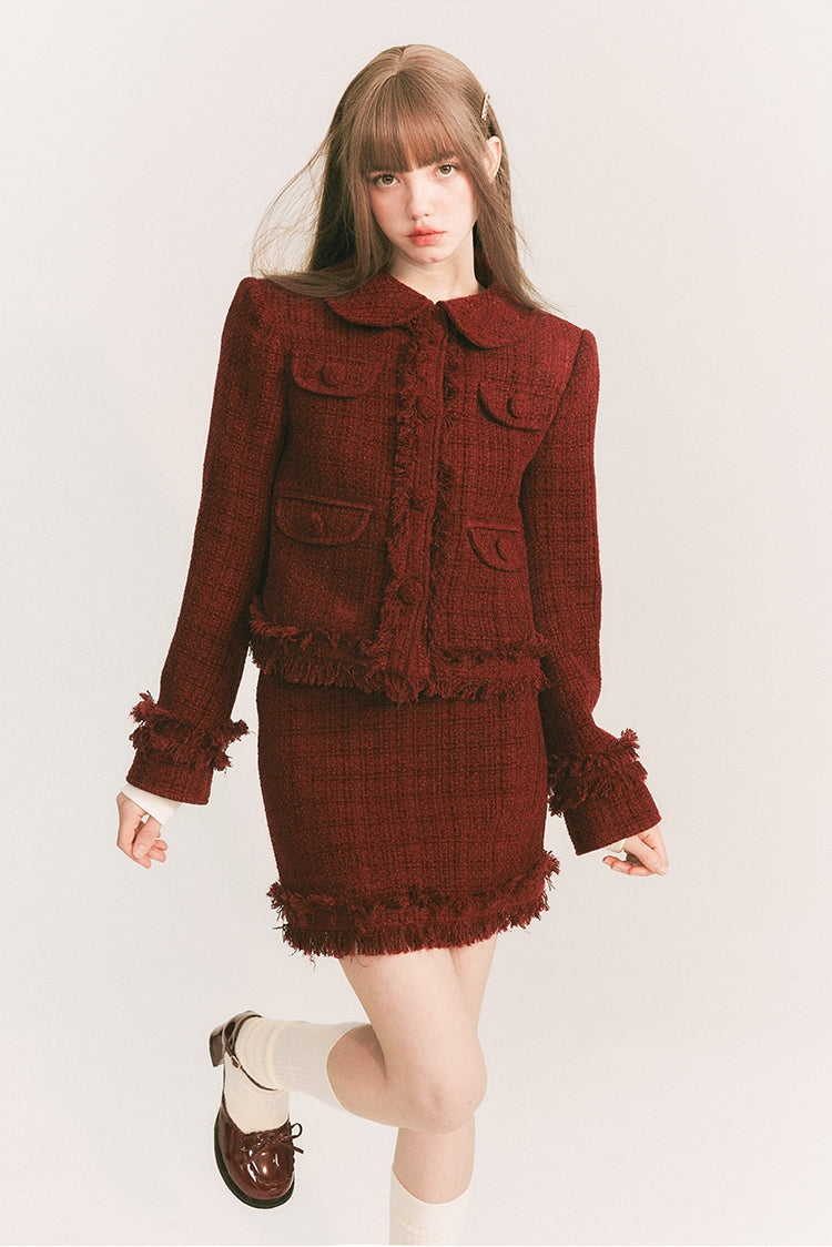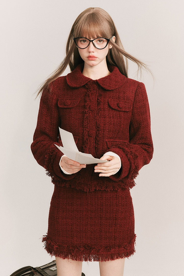 Round Collar Tweed Jacket & A-Line Tweed Skirt Setup NA5863