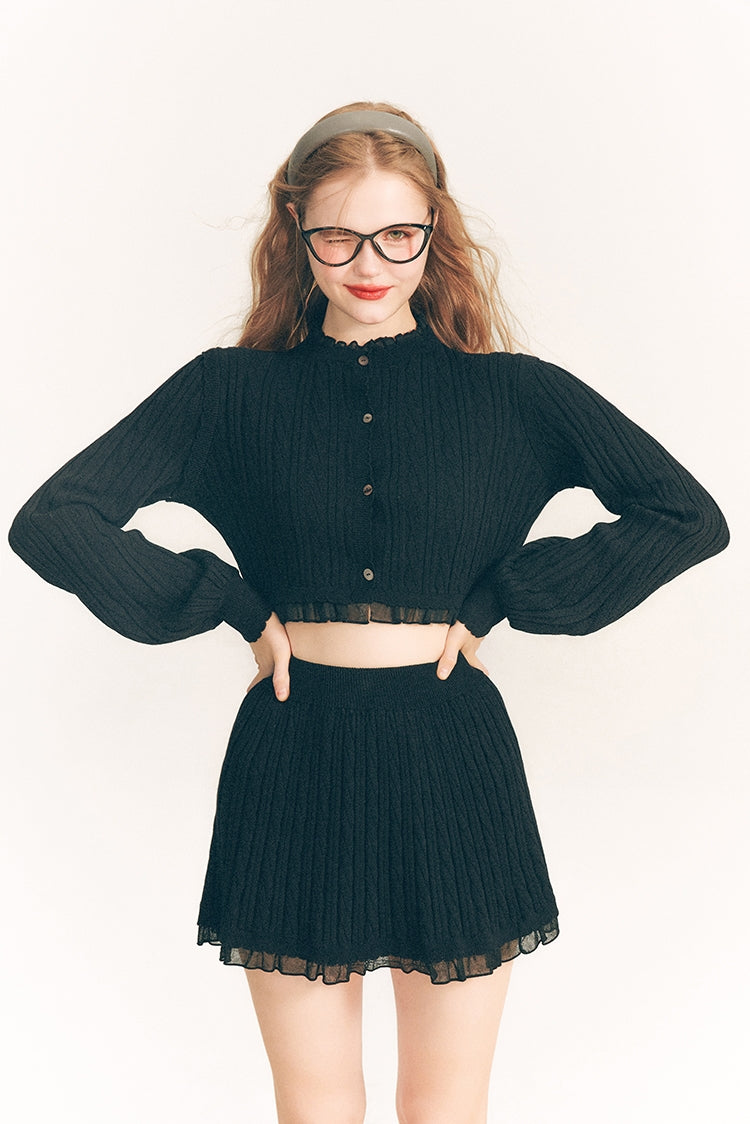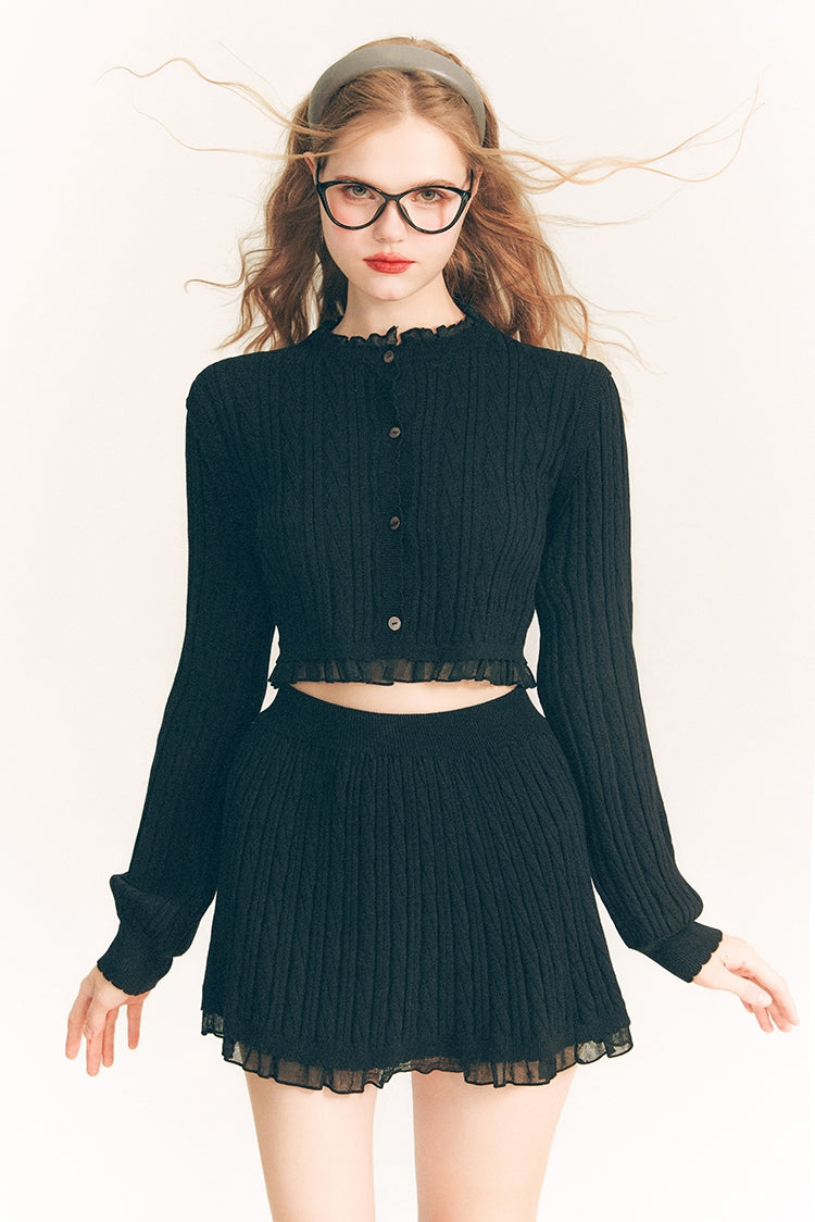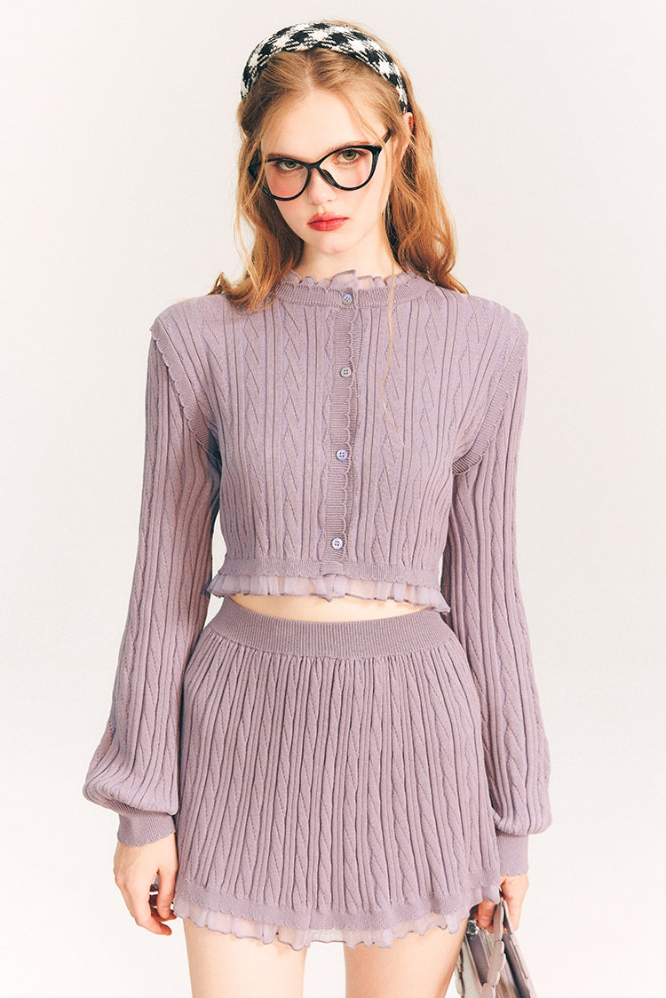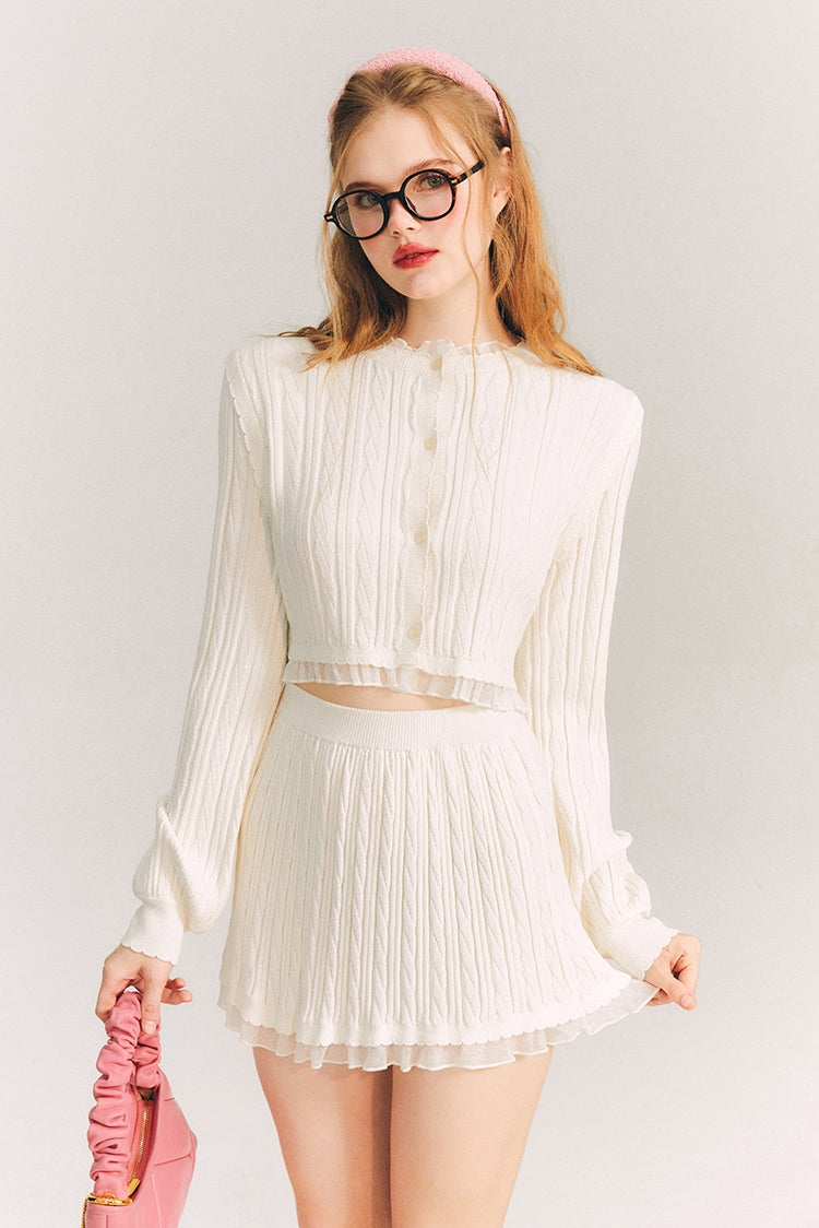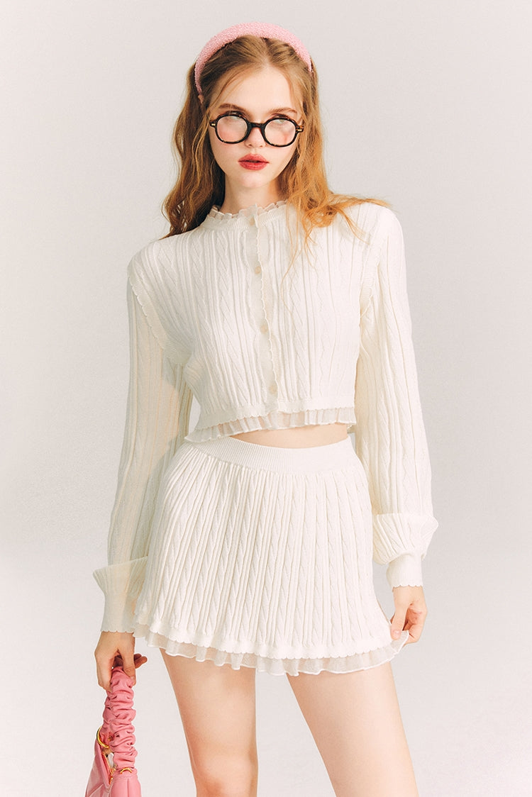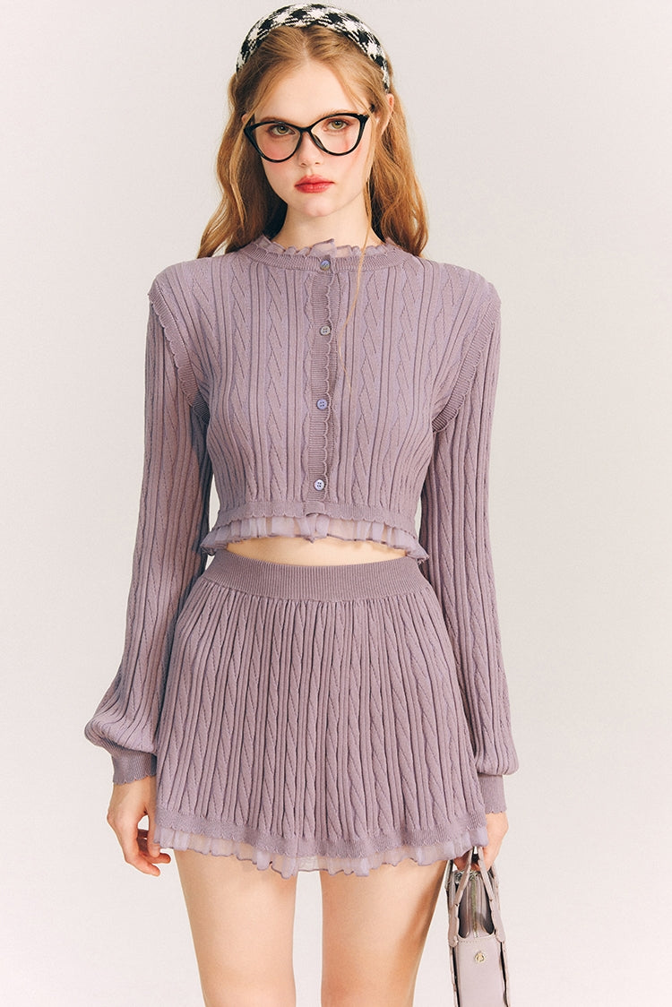 Tulip Button Knit Cardigan & Knit Short Skirt Setup NA5885