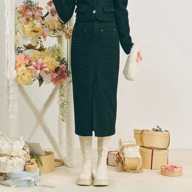 Oversize Corduroy Jacket & Ankle-length Skirt Setup NA5902