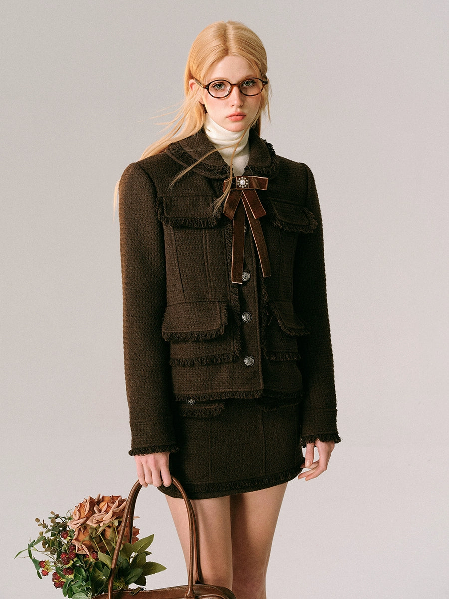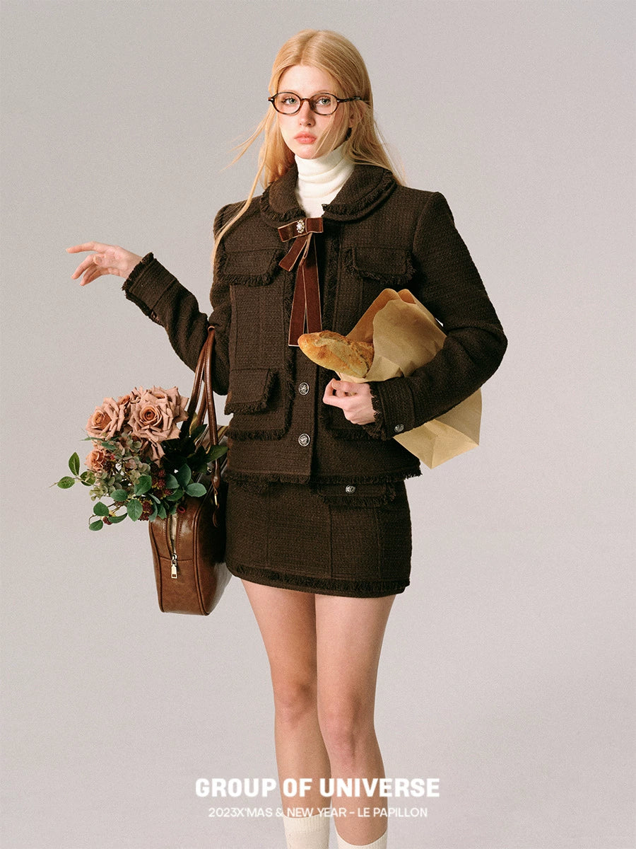 Bow Design Wool Blend Jacket & Short Skirt Setup NA5916