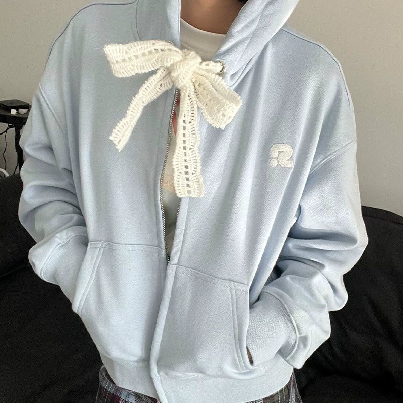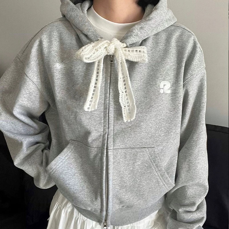 Lace String Zipper Hoodie NA6063