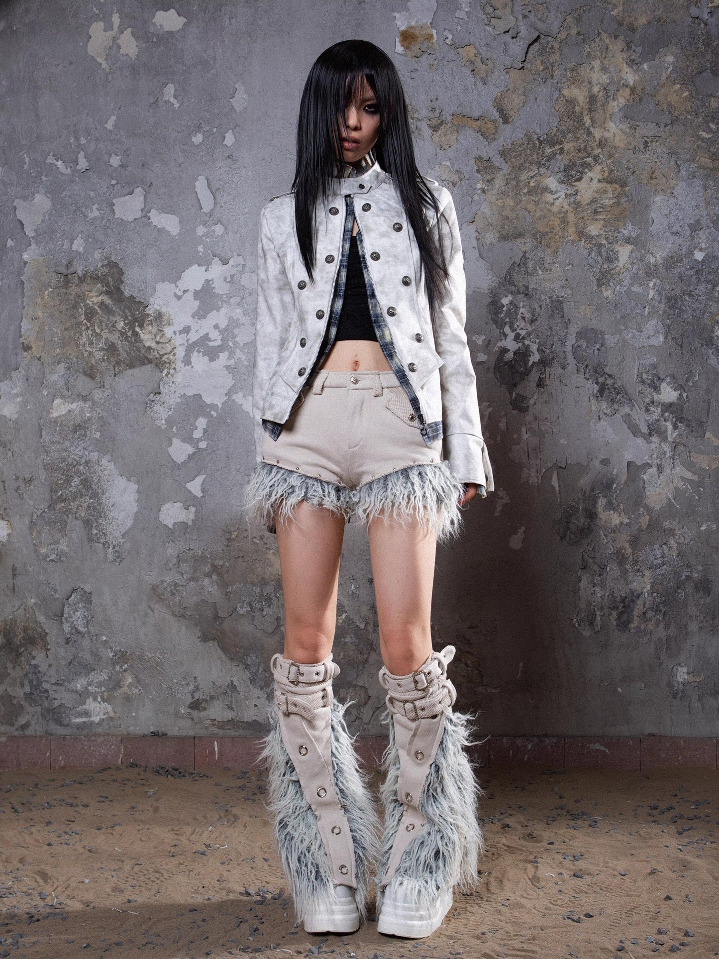Patchwork Heavy-Duty Punk Short Pants & Leg Cover NA6124