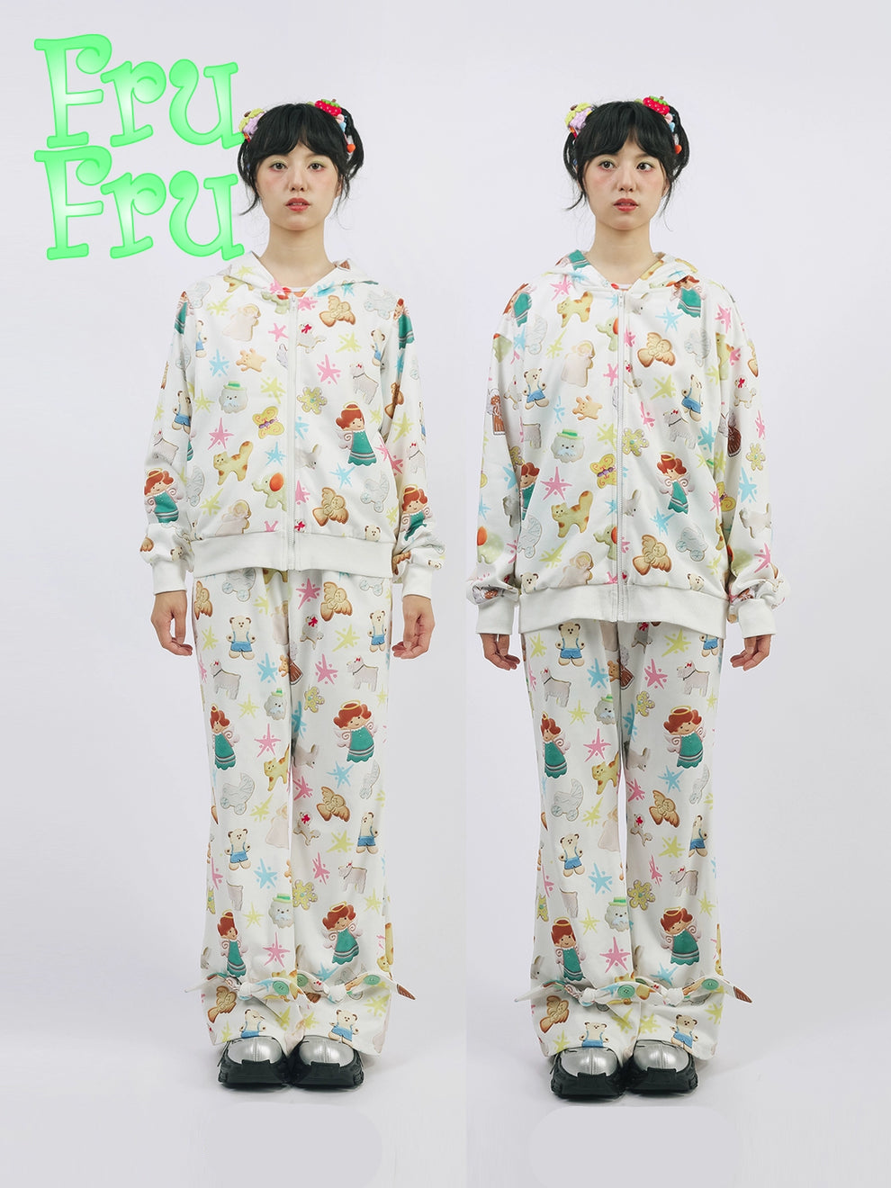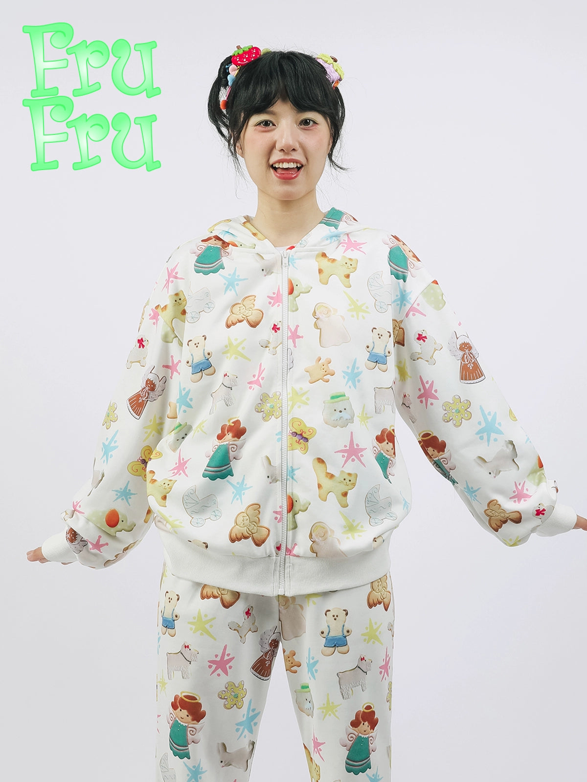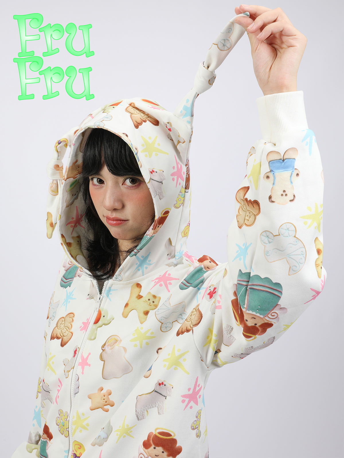 Cookie Print Rabbit Ear Zipper Hoodie NA6570