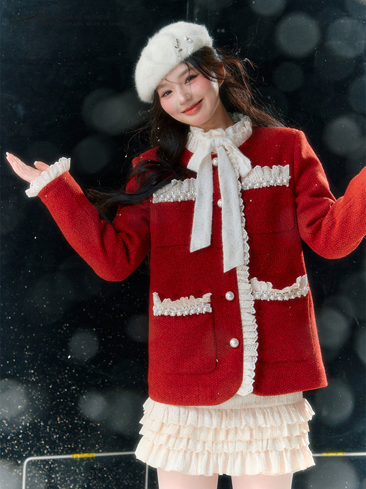 Pearl Lace Jacket & Short Skirt Setup NA7576