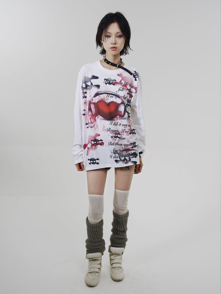 Heart Skull Print Long Sleeve T-Shirt NA7609