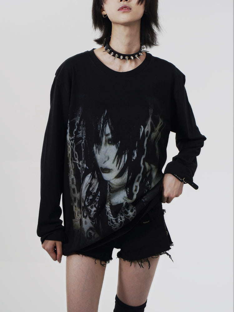 Glam Rock Print Lightweight Long Sleeve T-Shirt NA7614