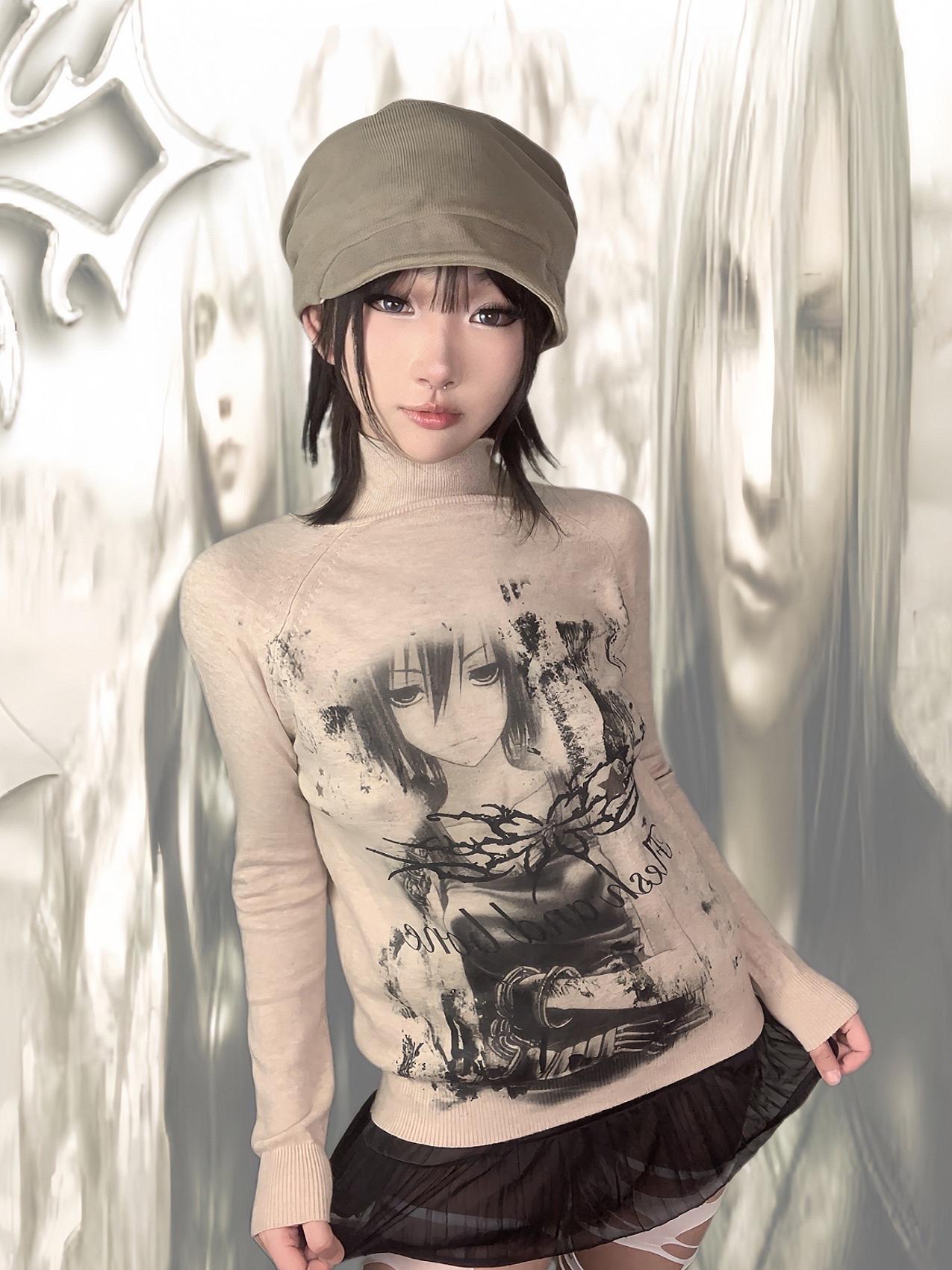 Anime-Style High-Neck Lightweight Knit Sweater NA7619