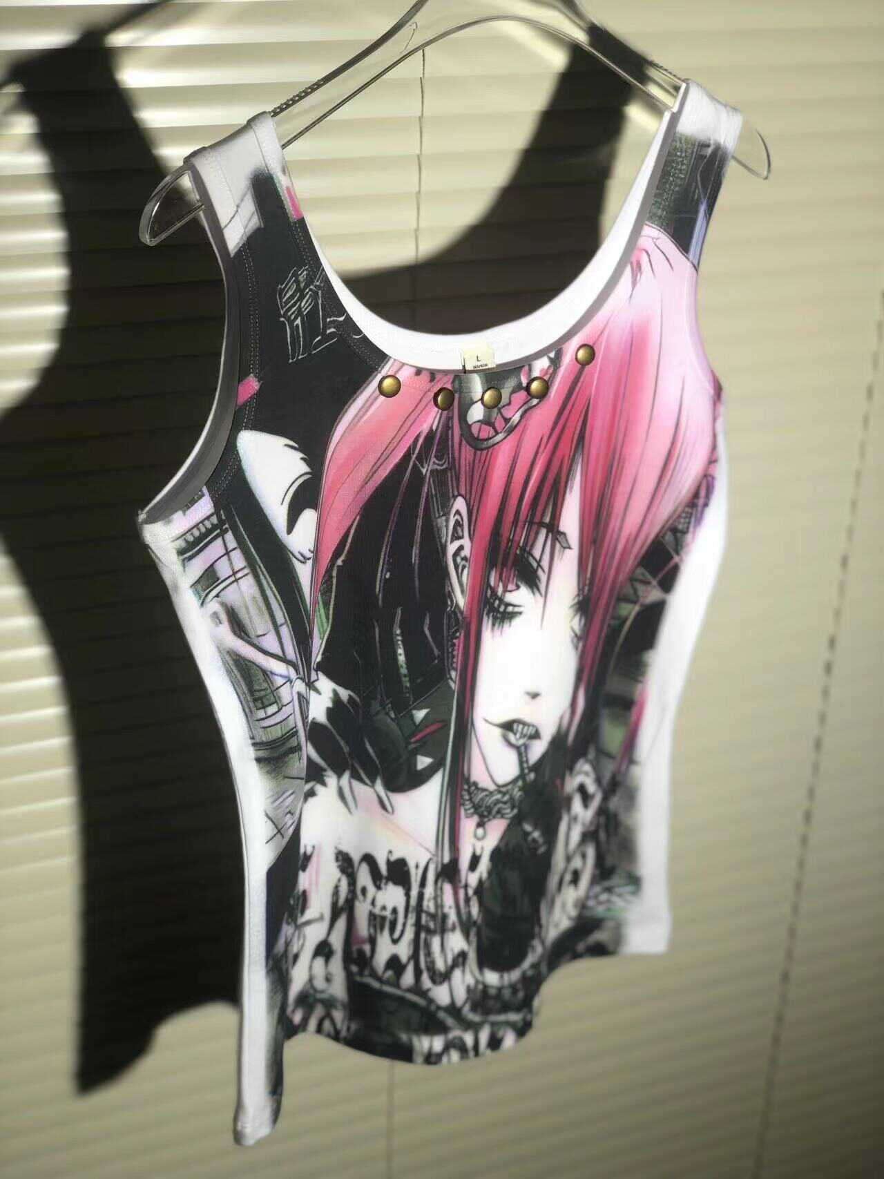 Punk Style 2D Girl Print Rivet Remake Tank Top NA7620