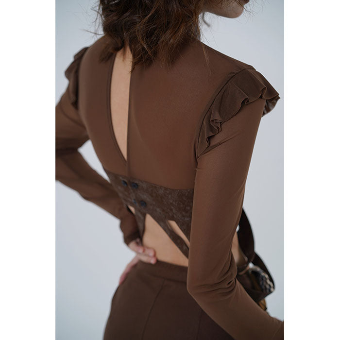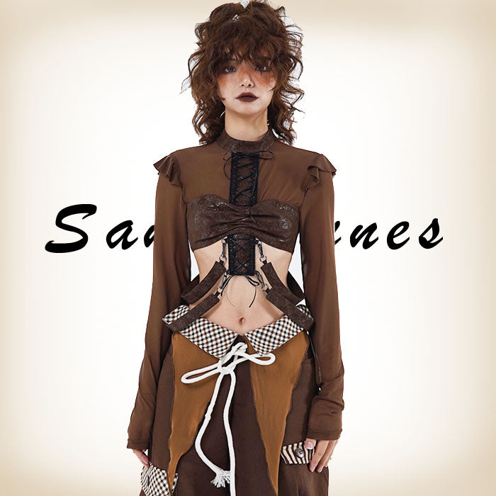 Sheer Mesh Ruffle Cropped Blouse NA7698