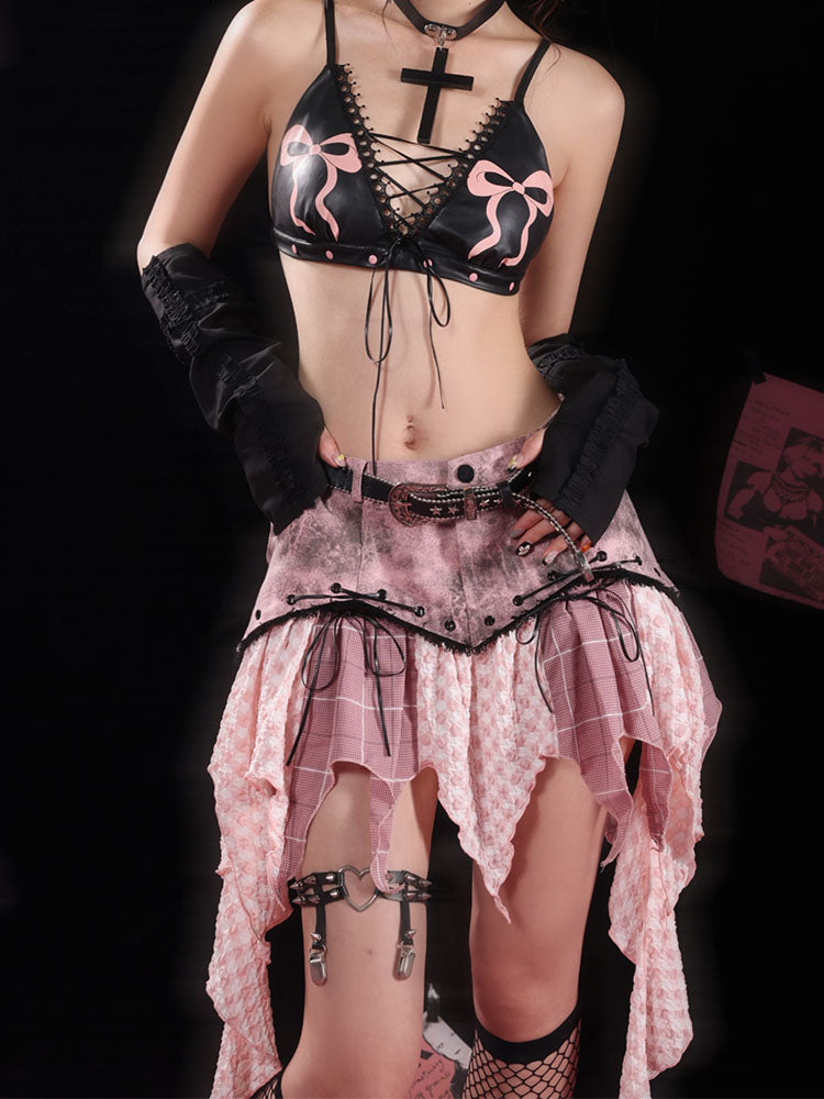 Irregular Damage Ruffle Denim Skirt NA7742