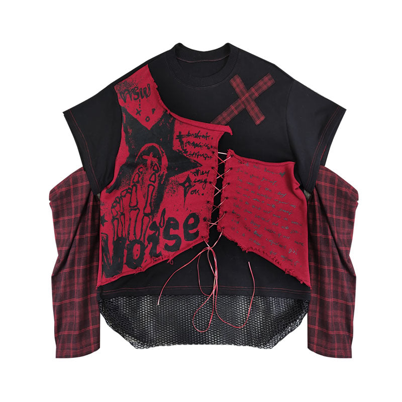 Print Plaid Patchwork Pullover Sweatshirt NA7765