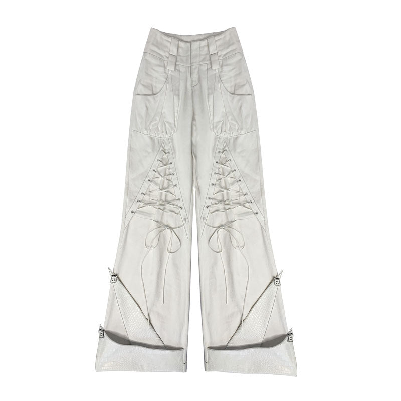 Tie-Strap Double-Waist Wide Leg Denim Jeans & Belt NA7775