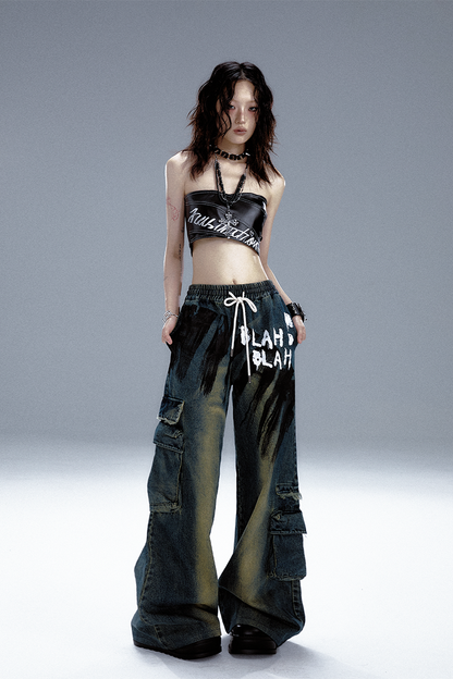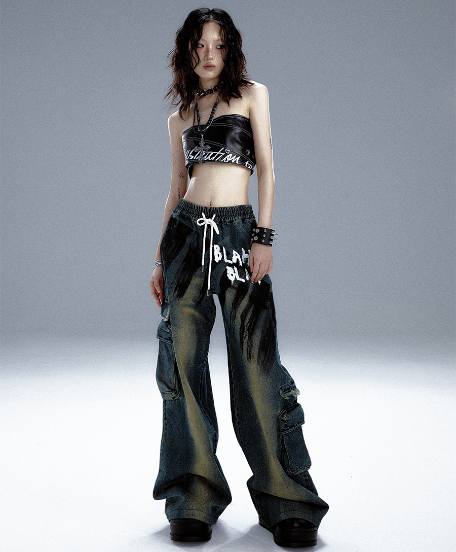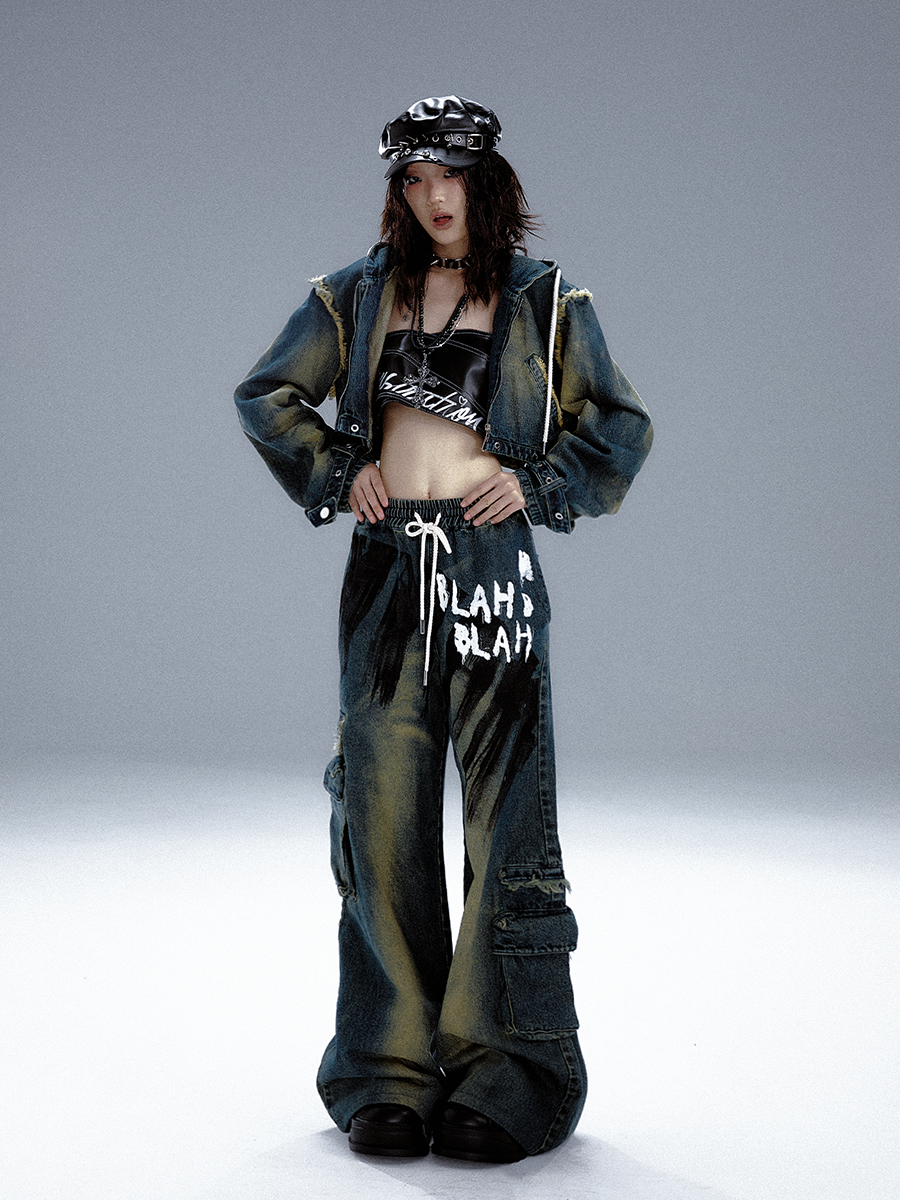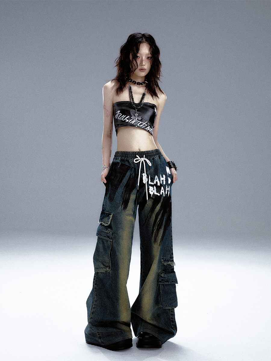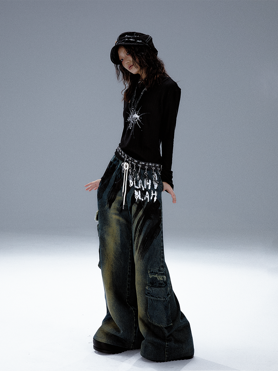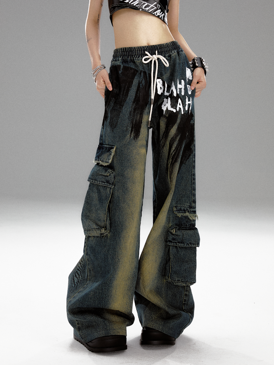 Washed Graffiti Wide-Leg Straight Dnim Jeans NA8151