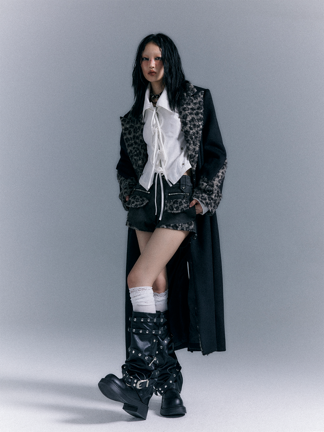 Washed Studs Leopard Patchwork PU Leather Shorts NA8155