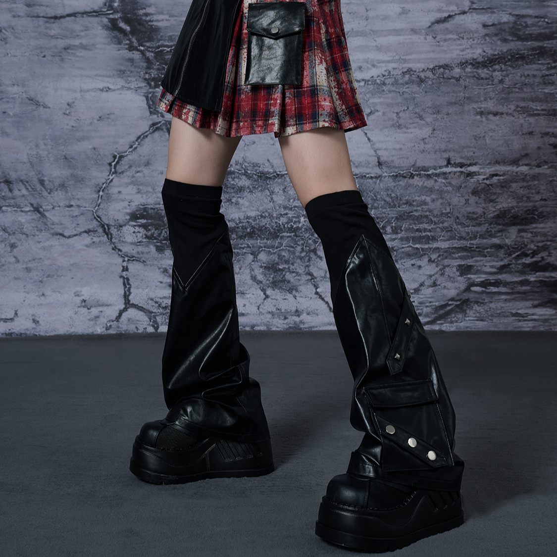 Ribbed PU Leather Patchwork Leg Covers NA8192