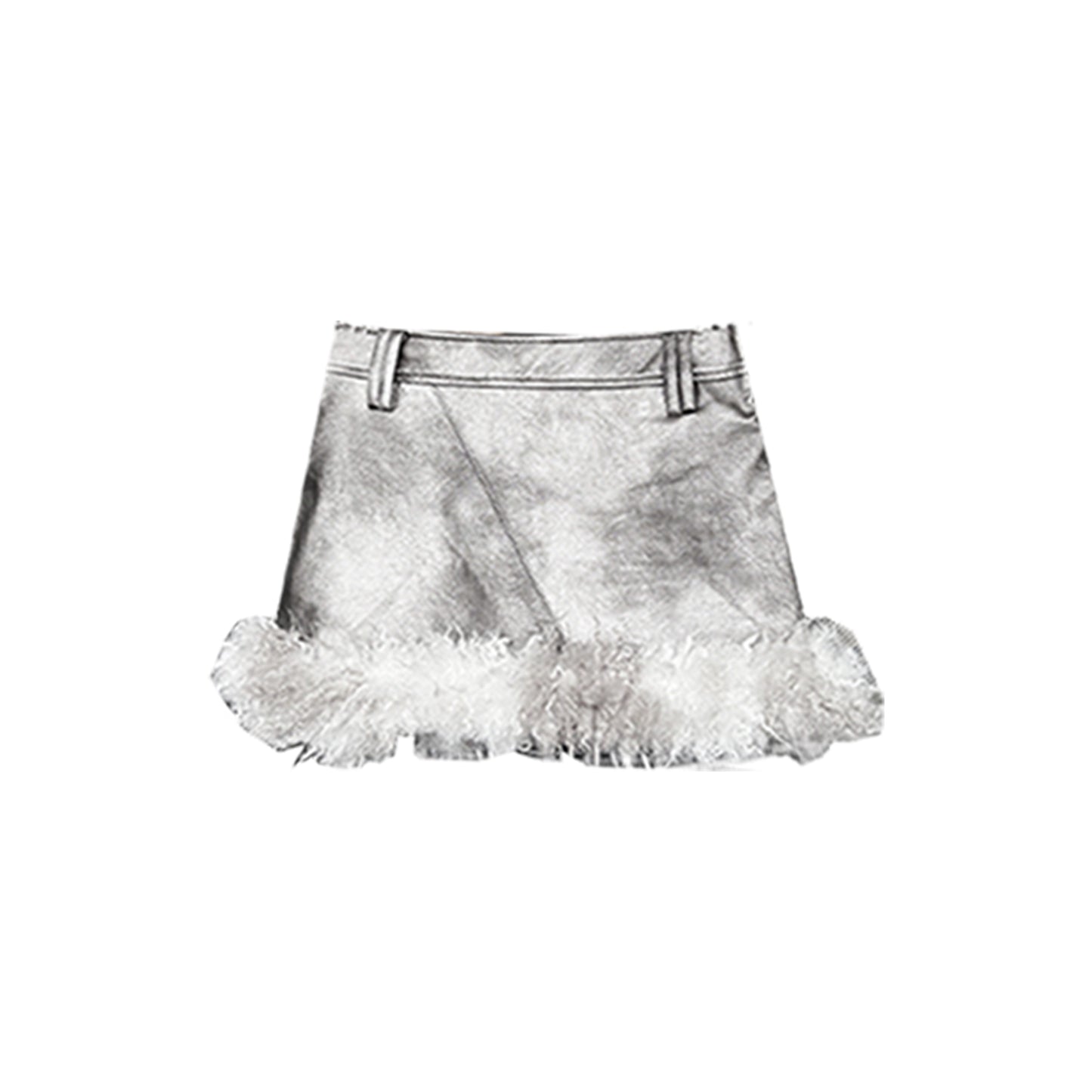 Silver PU Puffer Jacket & A-Line PU Skirt Setup NA8200