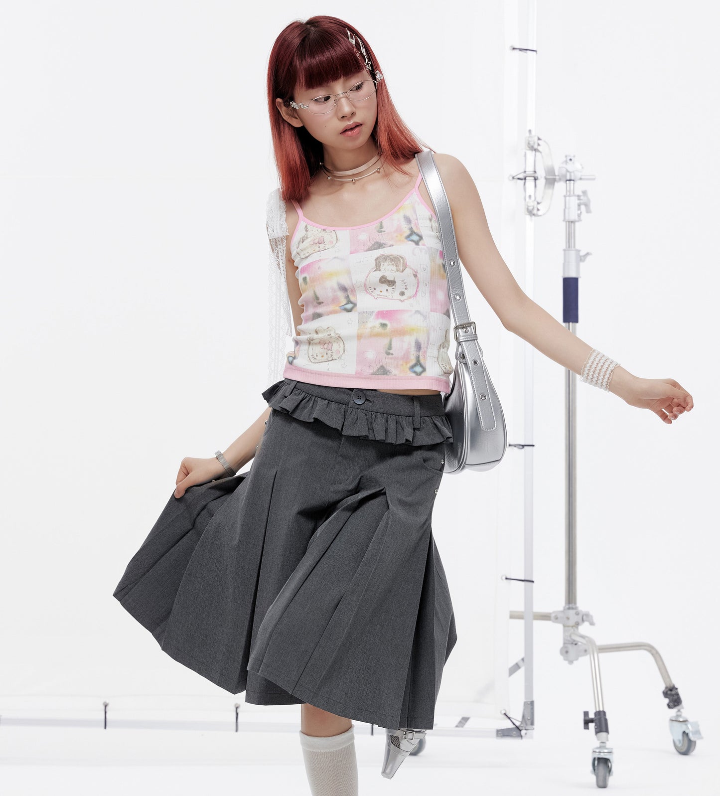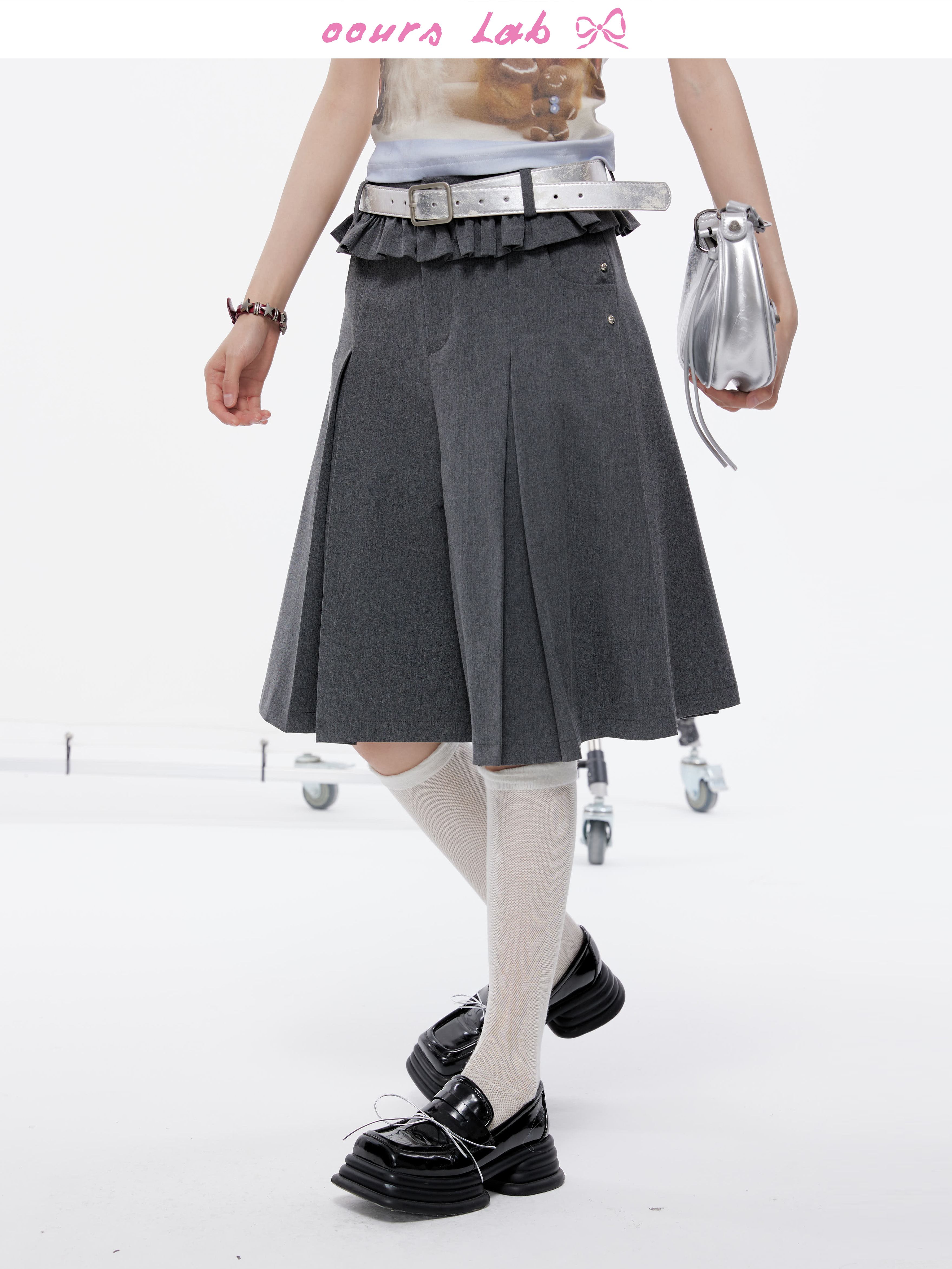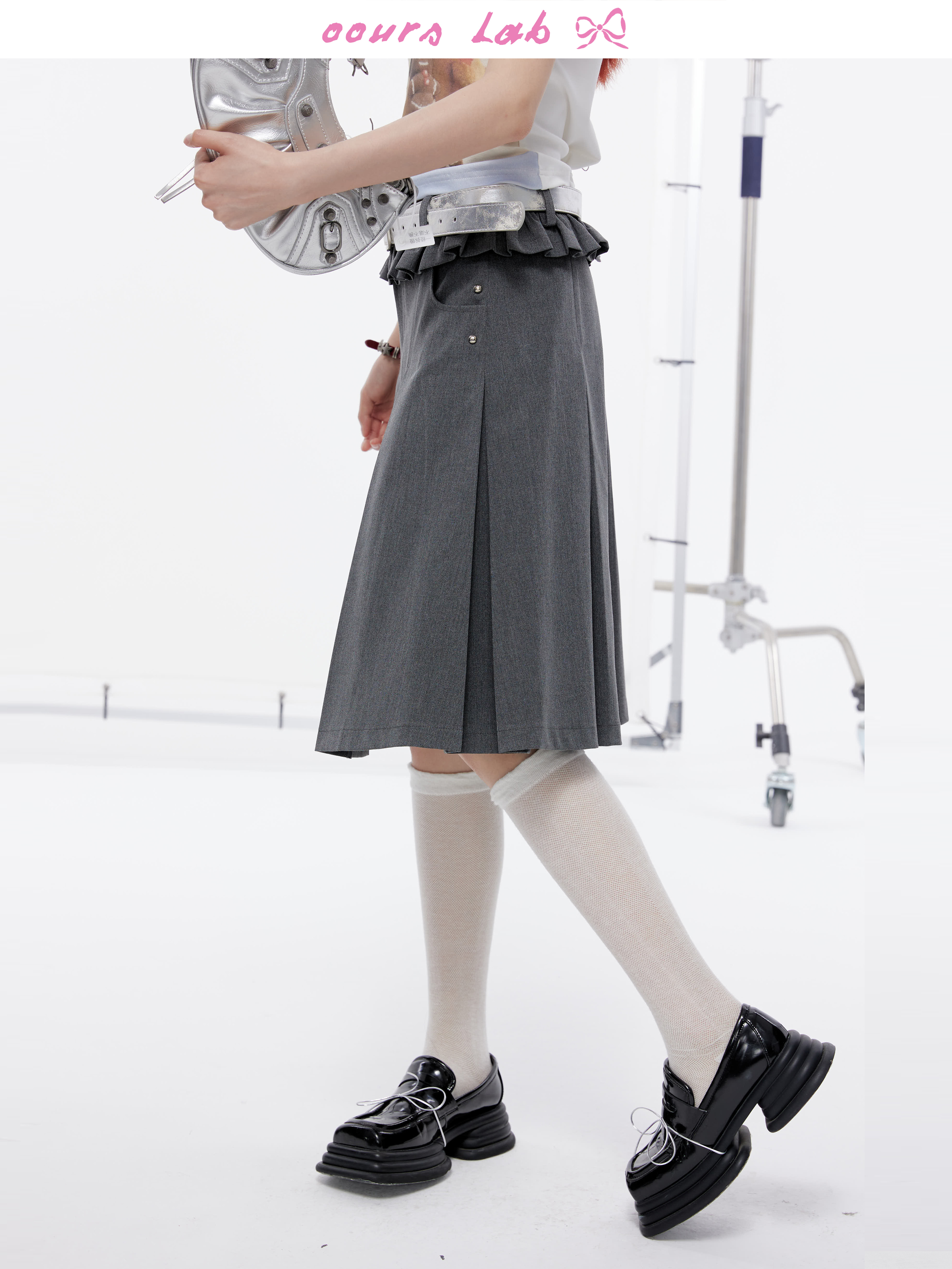 Lace Waist Fake Layered A-Line Split Skirt NA8207