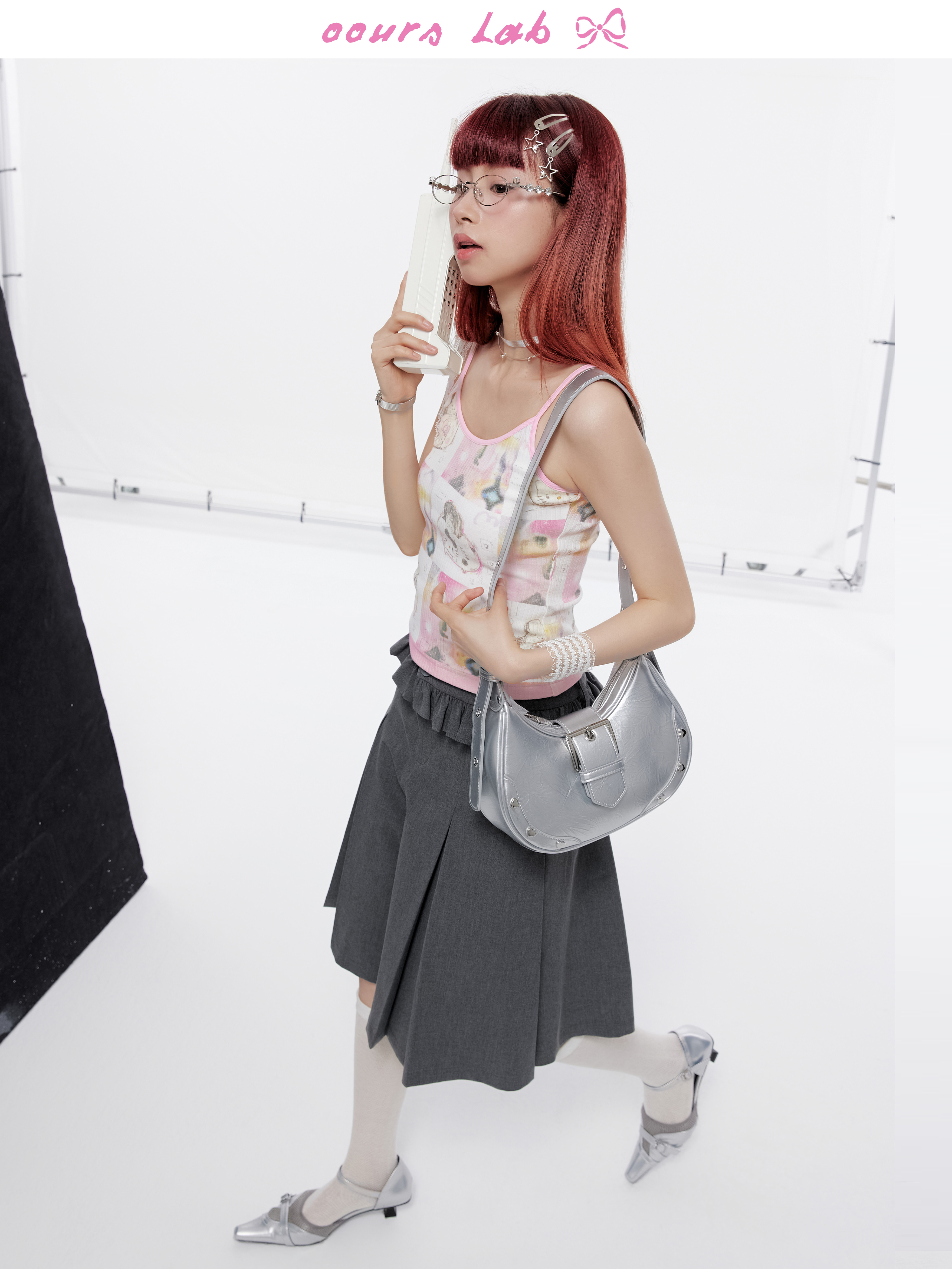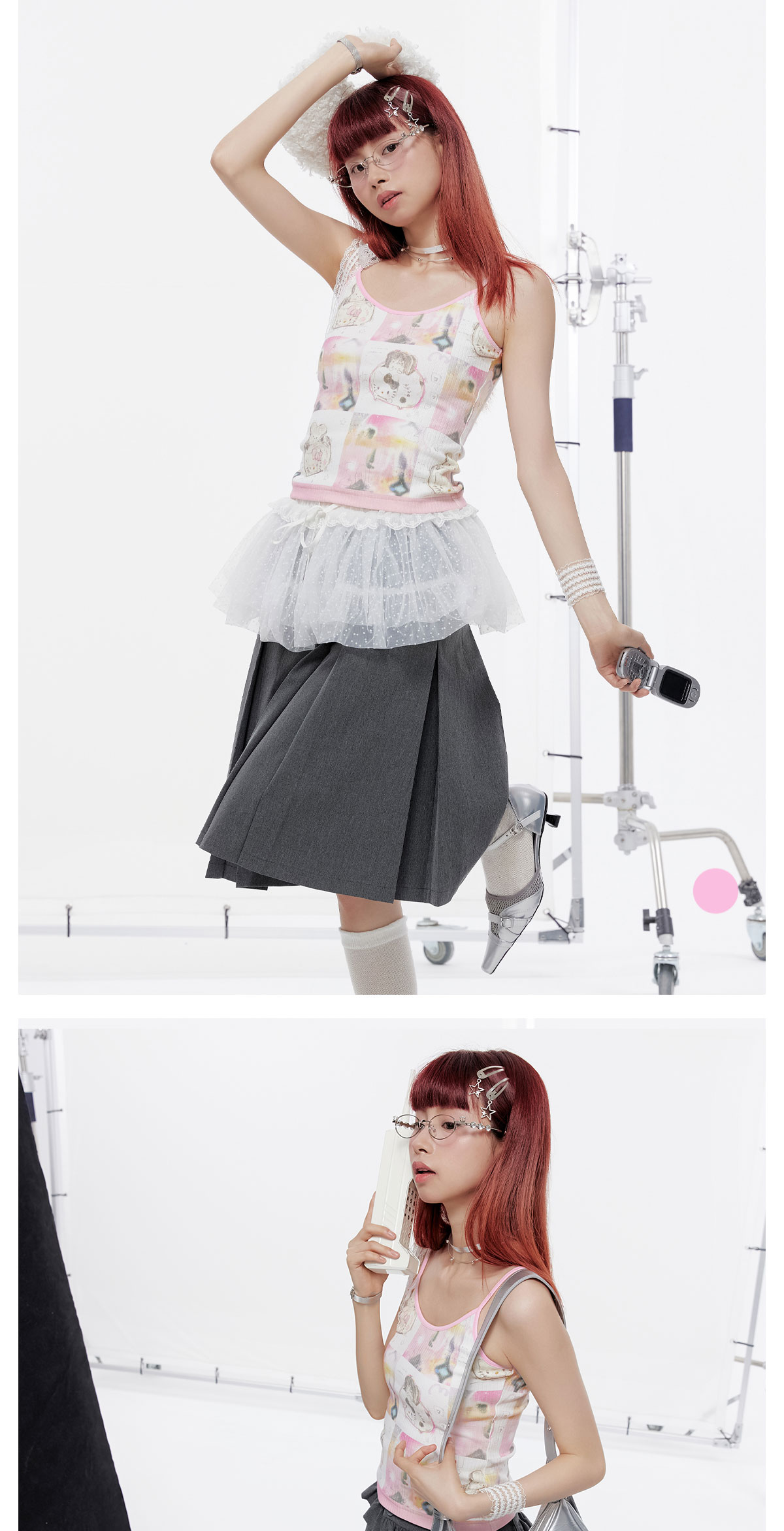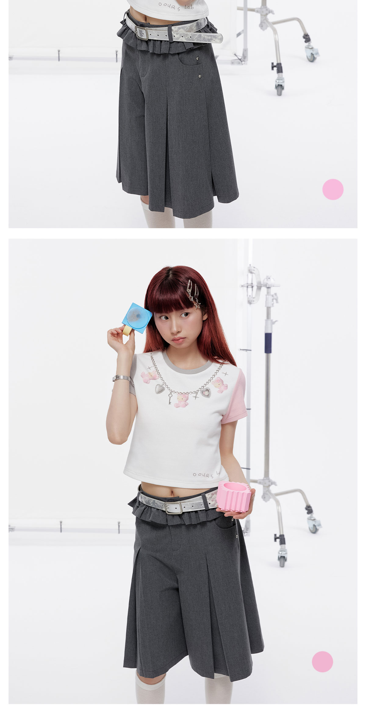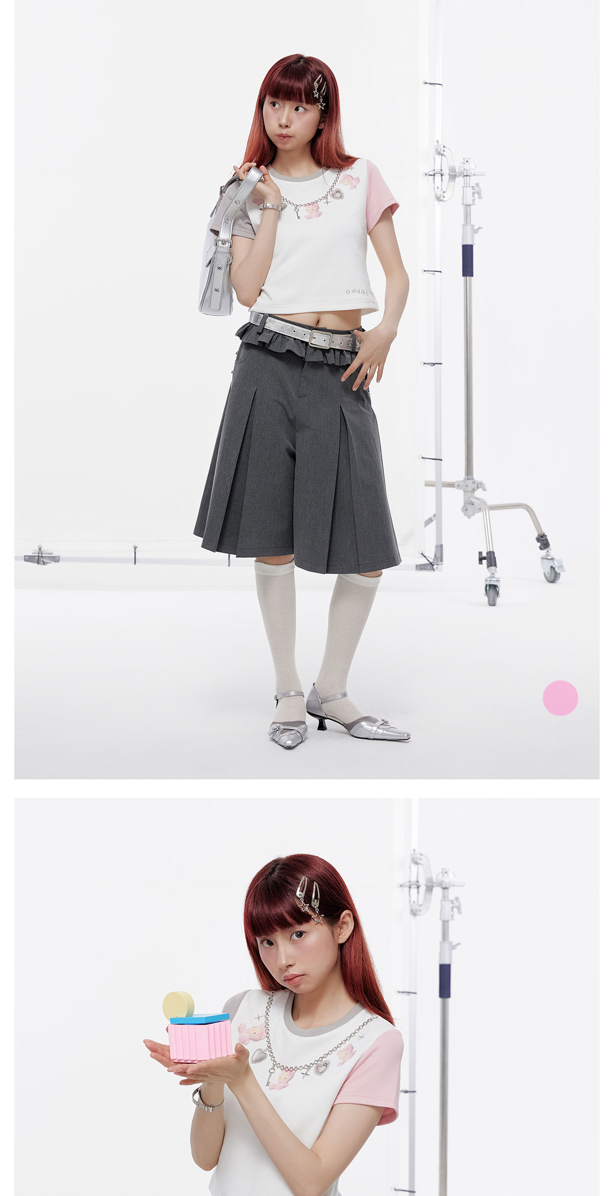 Lace Waist Fake Layered A-Line Split Skirt NA8207