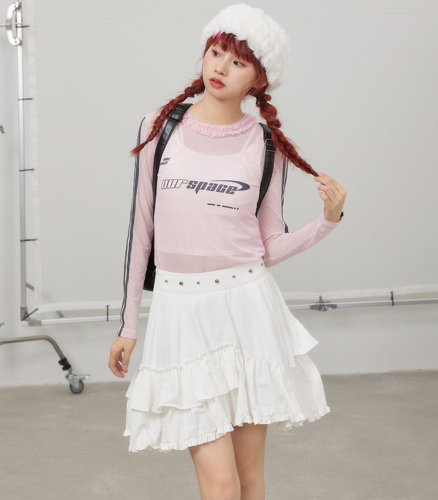 Ballet Style Asymmetrical Studs Tiered A-Line Skirt NA8214