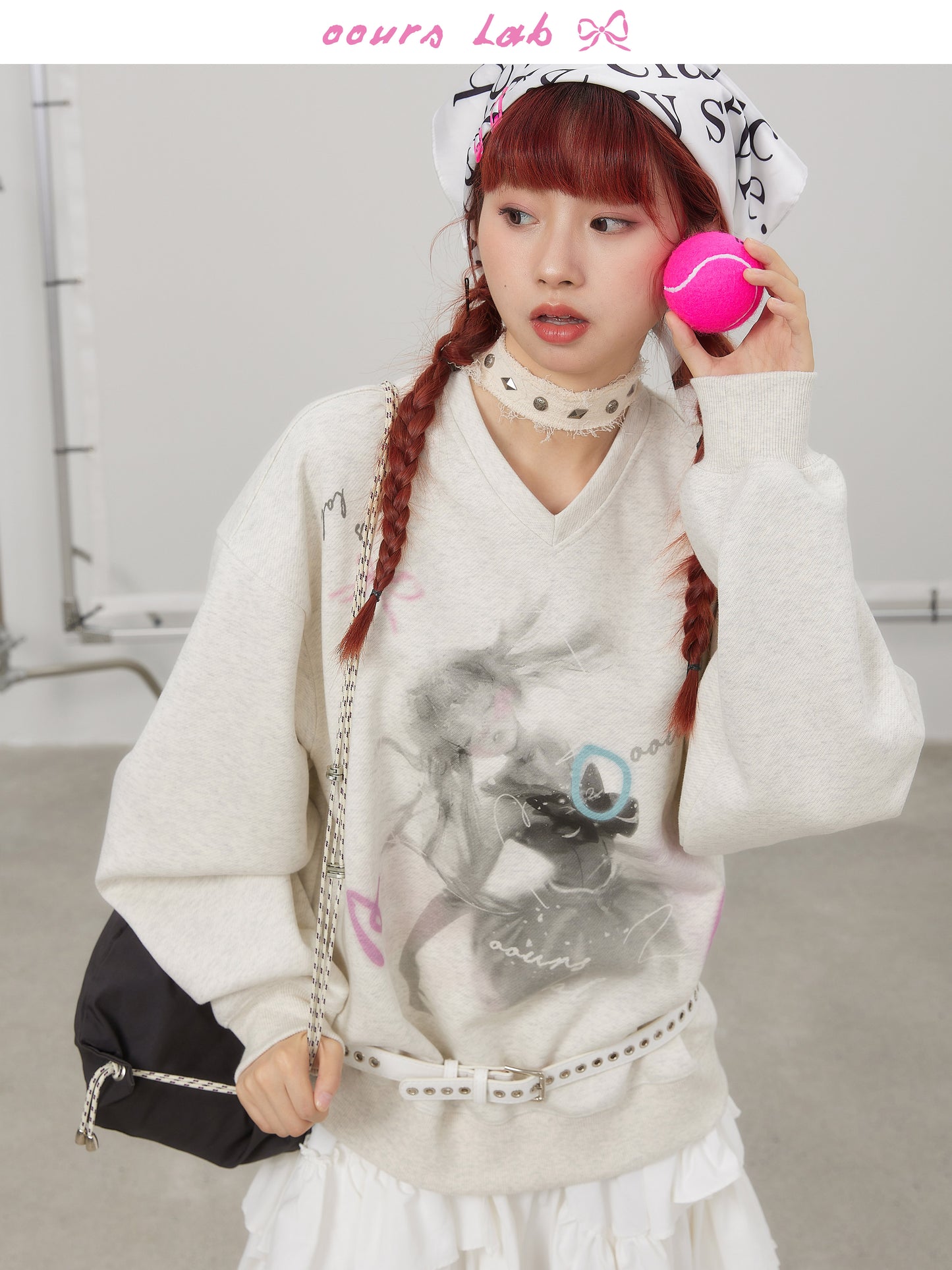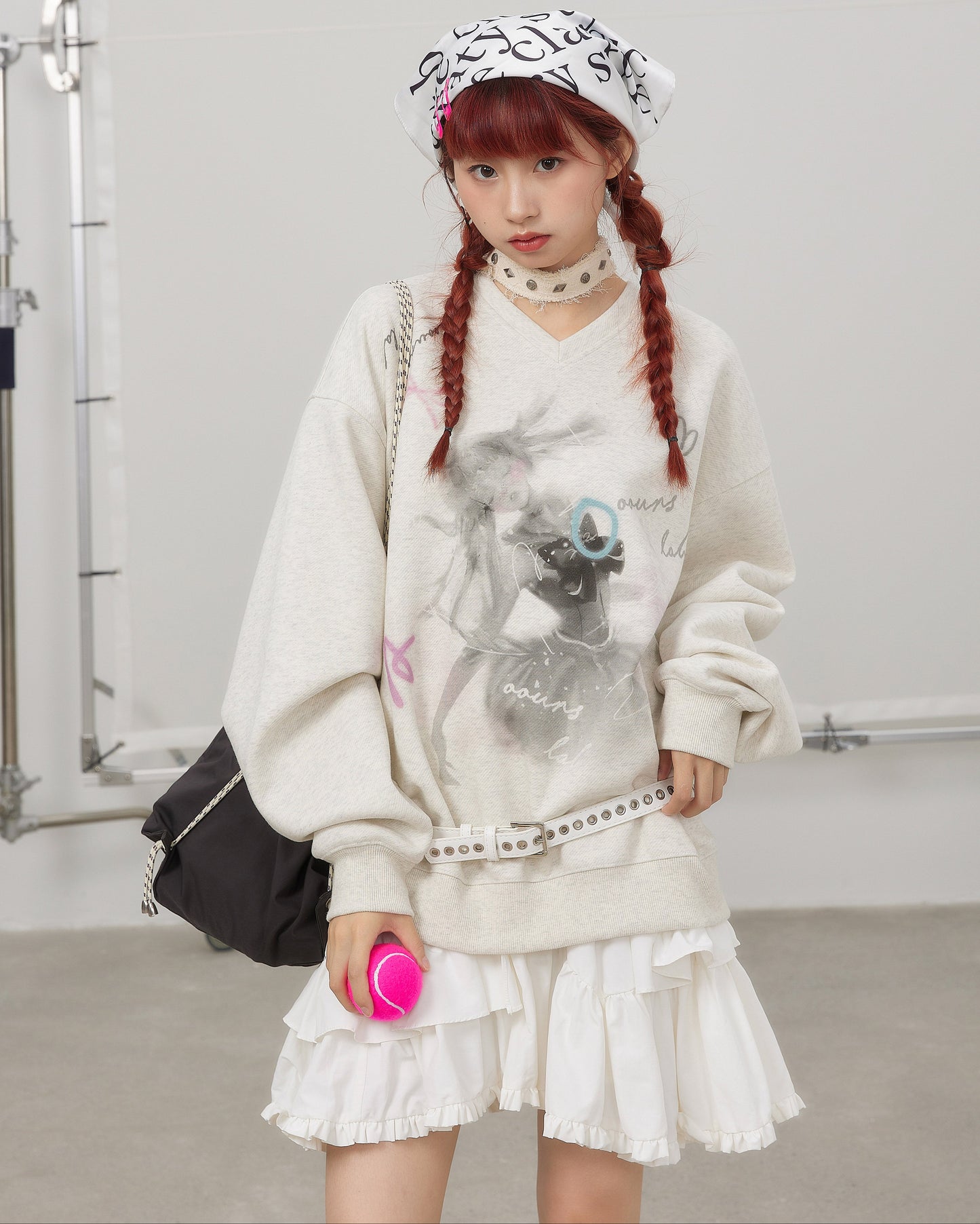 Pullover Oversize Hand-Drawn Graffiti Comic Girl Sweatshirt NA8219