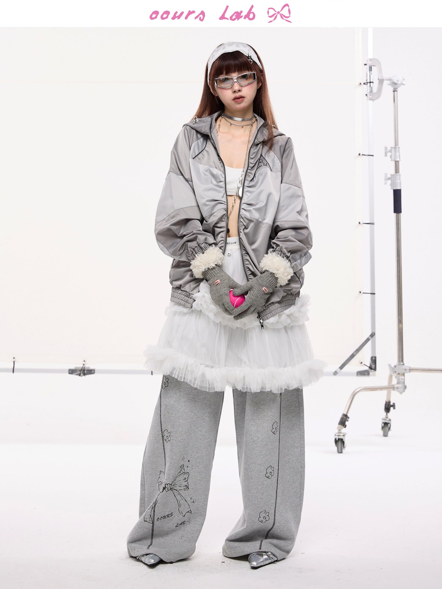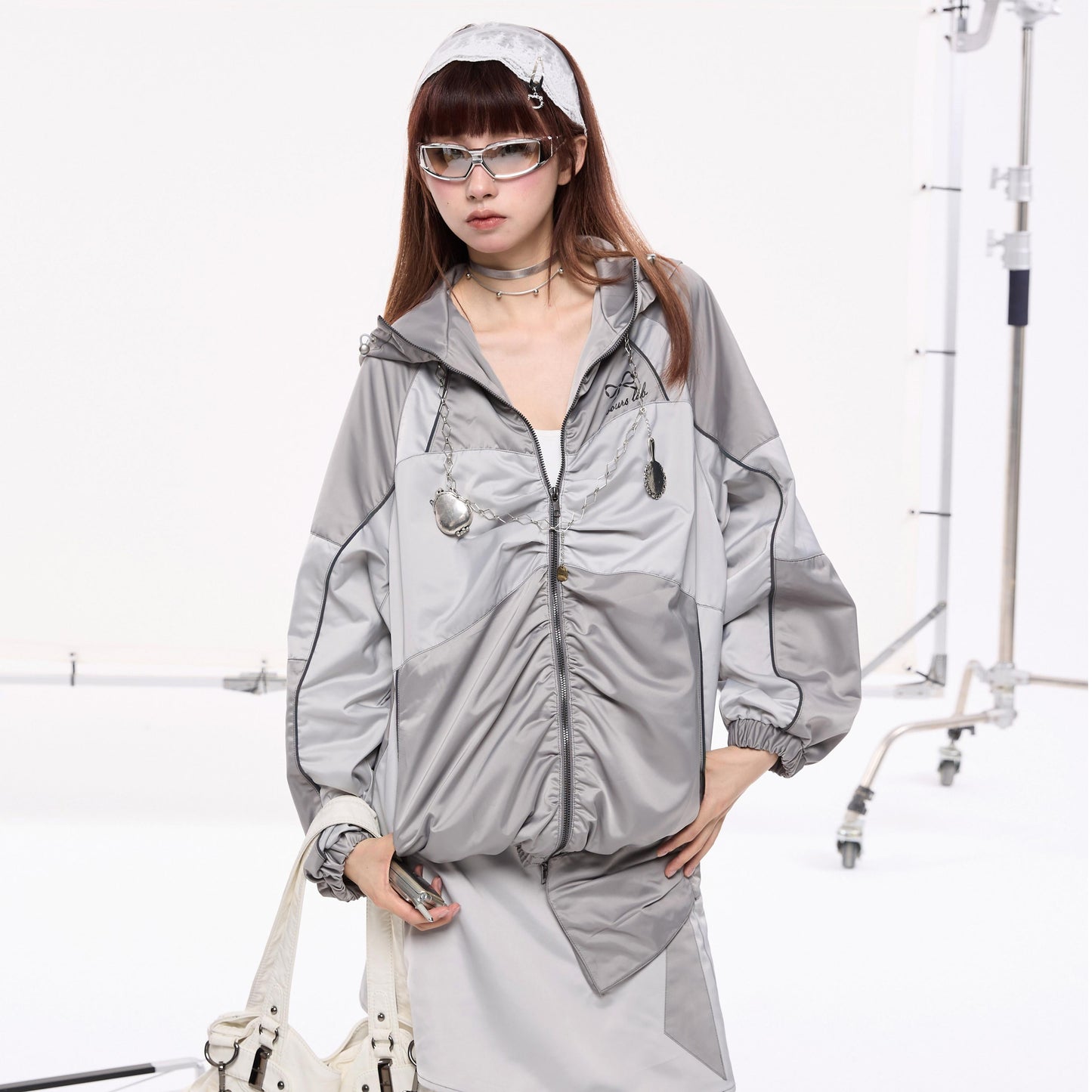 Bow Patchwork Oversize Techwear Zipper Jacket NA8239