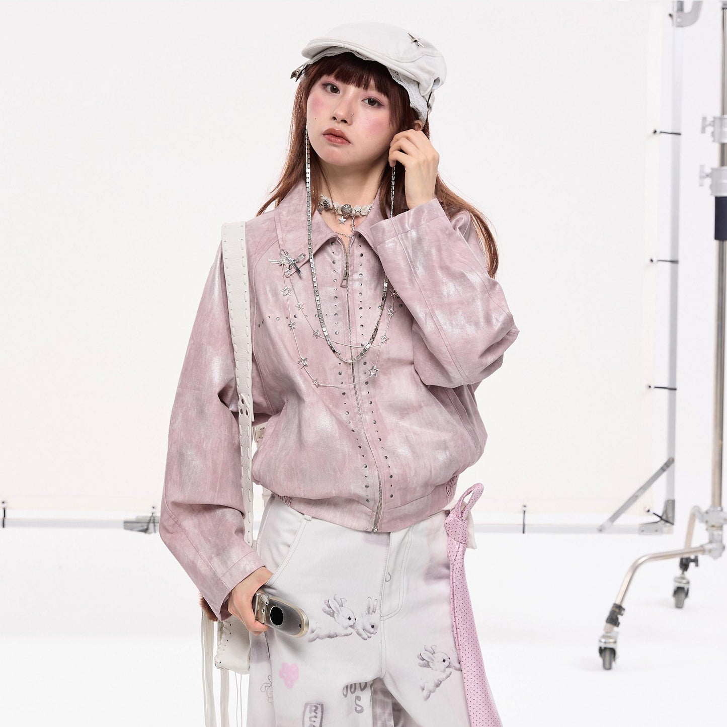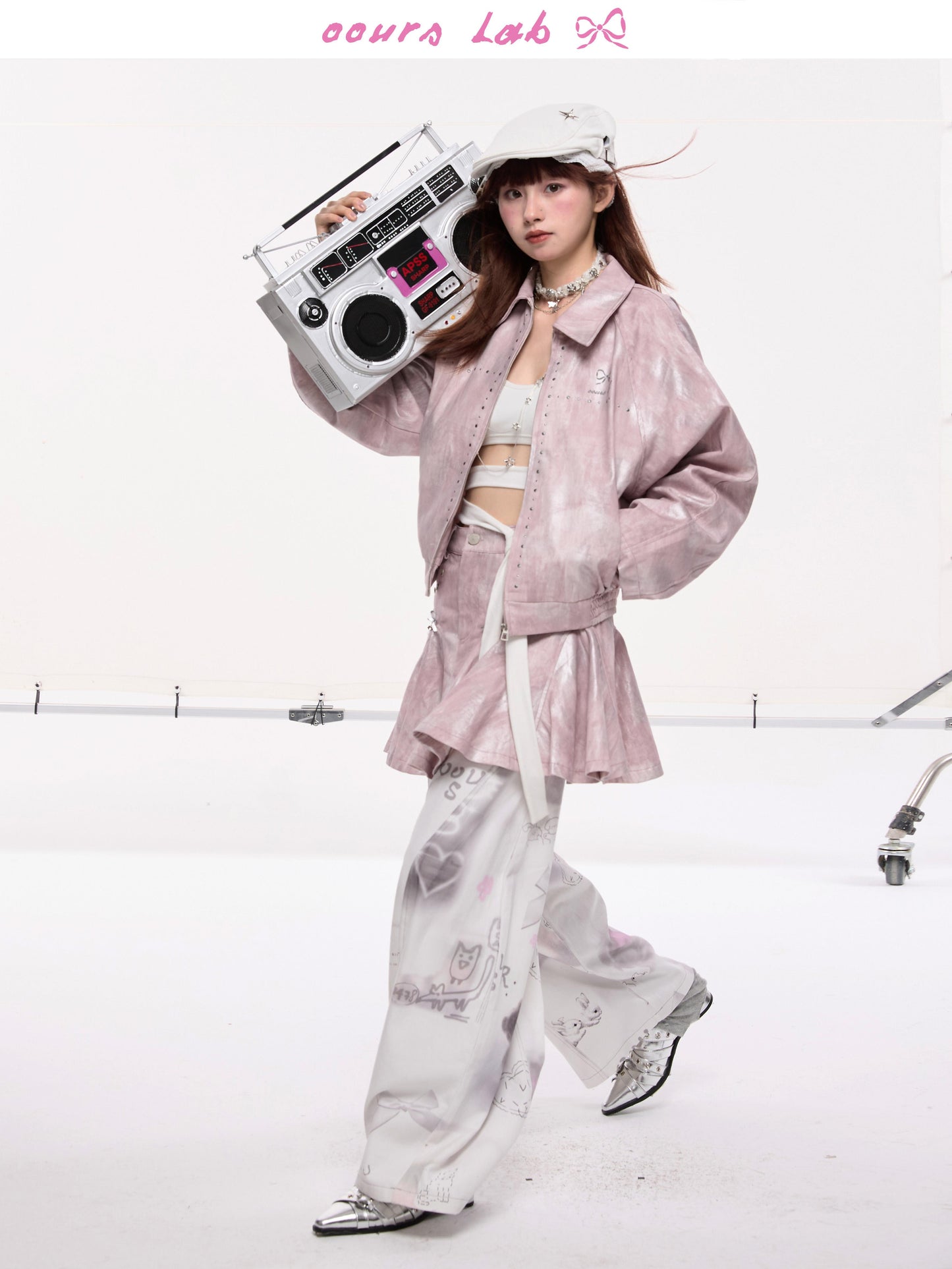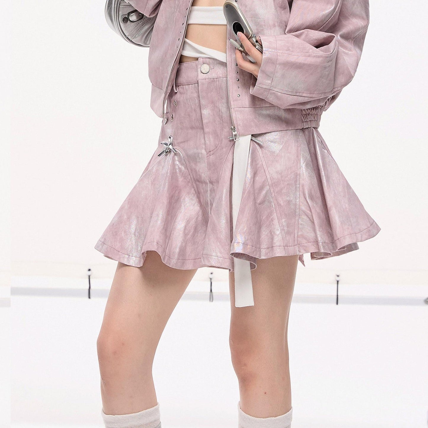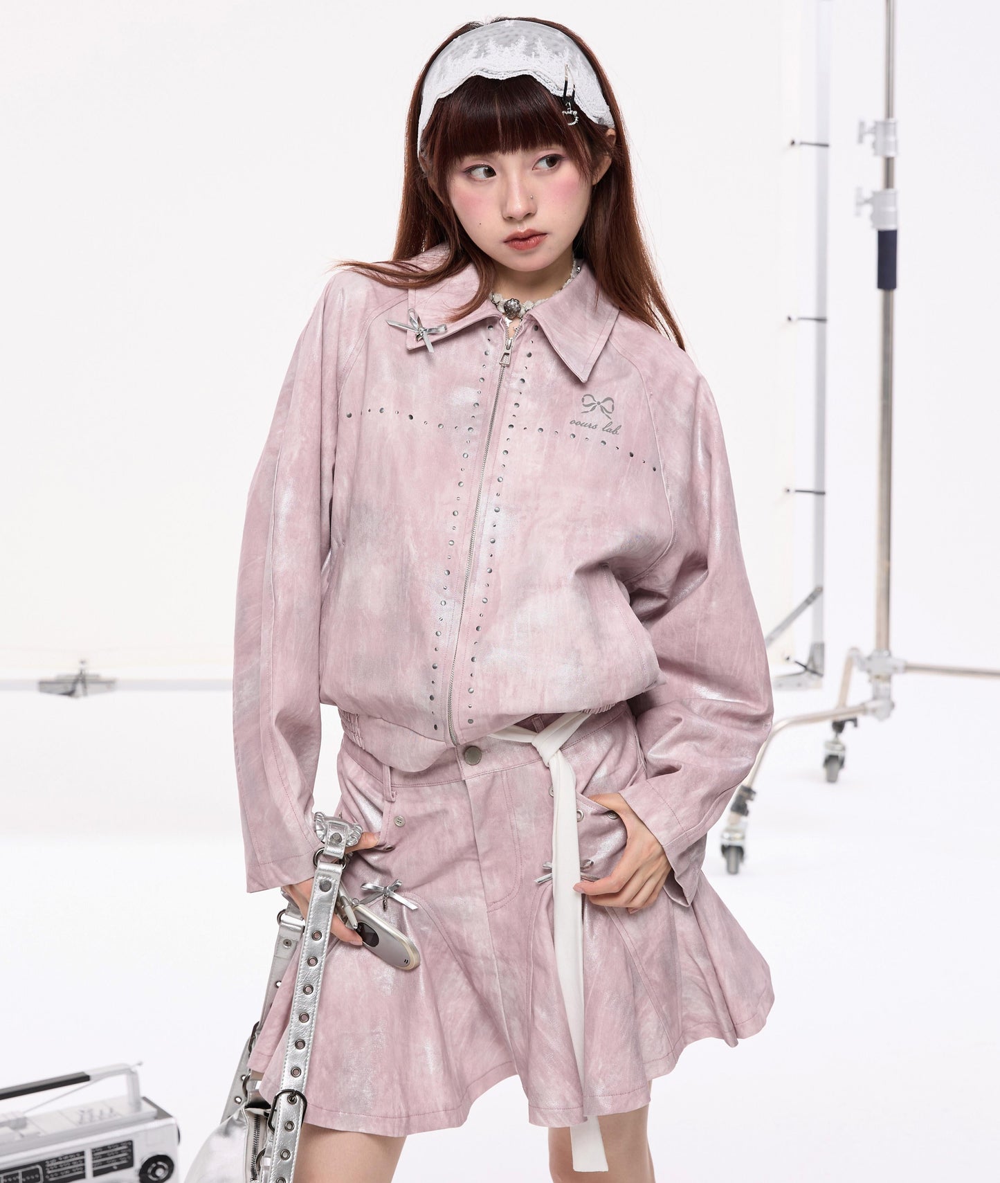 Tie-Dye Silver-Coated Oversize Jacket & Pleats Short Skirt Setup NA8240