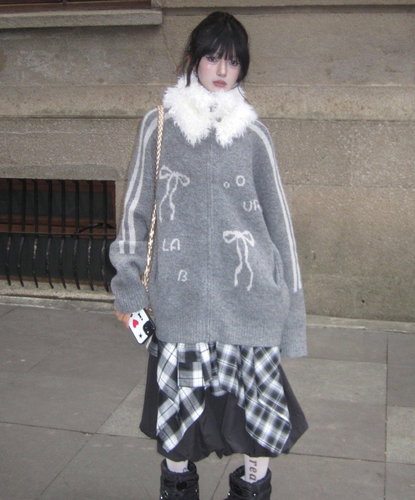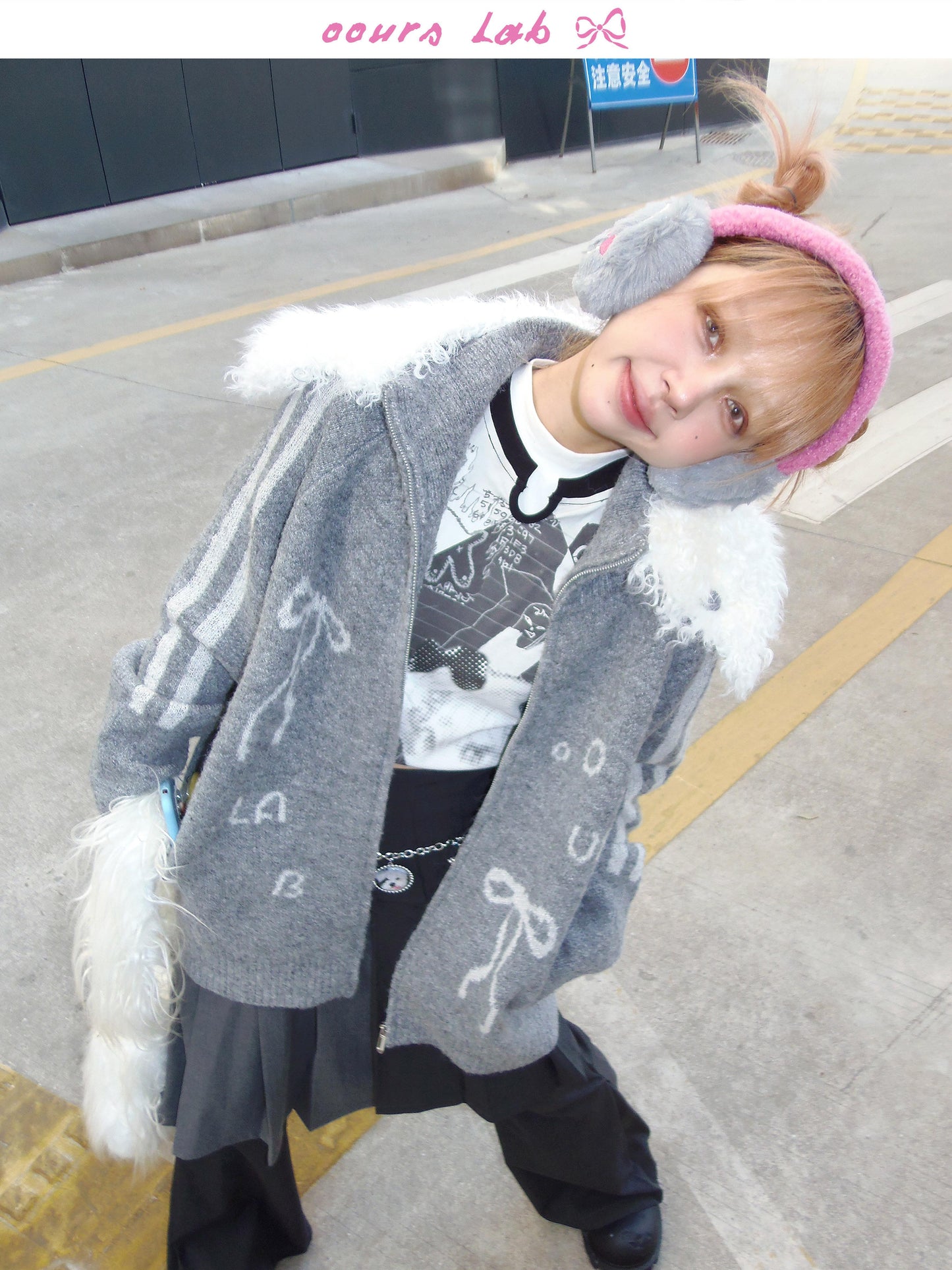 Bow Jacquard Zipper Knit Cardigan NA8244
