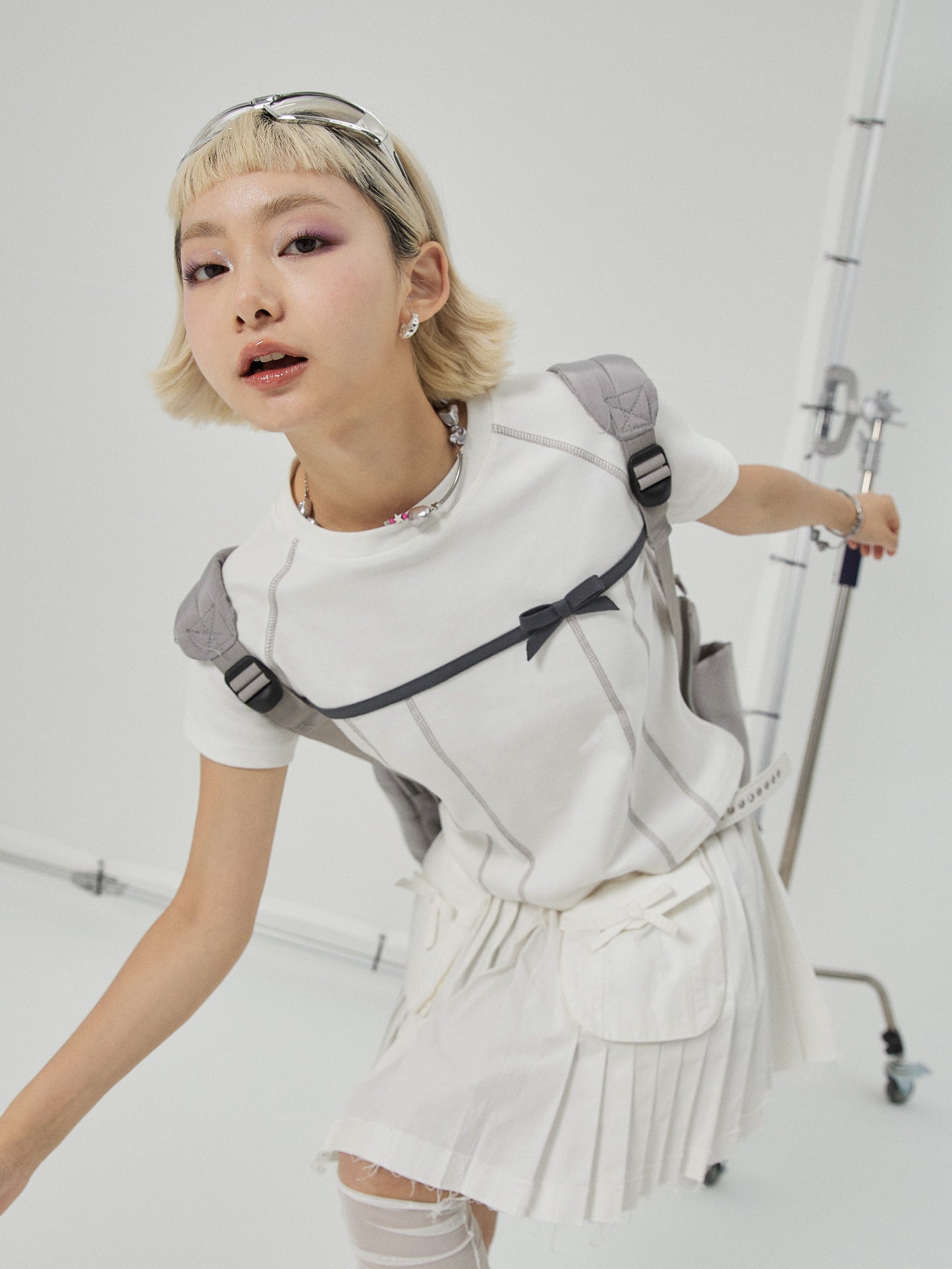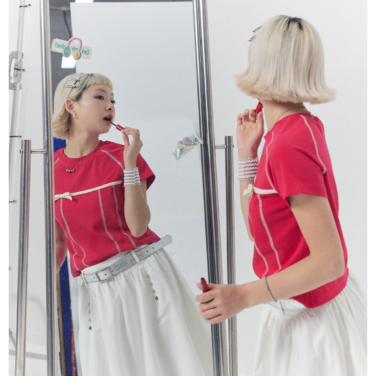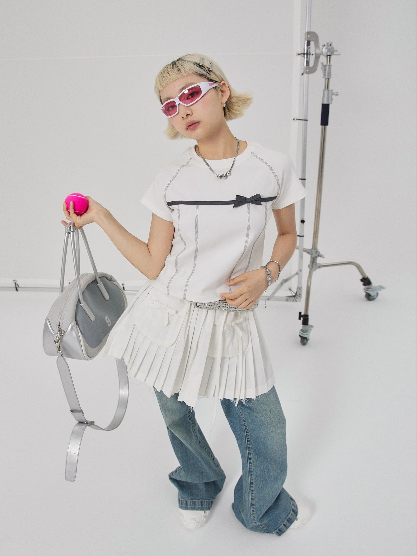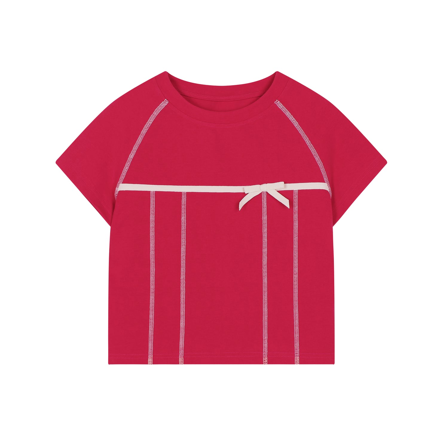 Sporty 3D Bow Raglan Short Sleeve T-Shirt NA8247